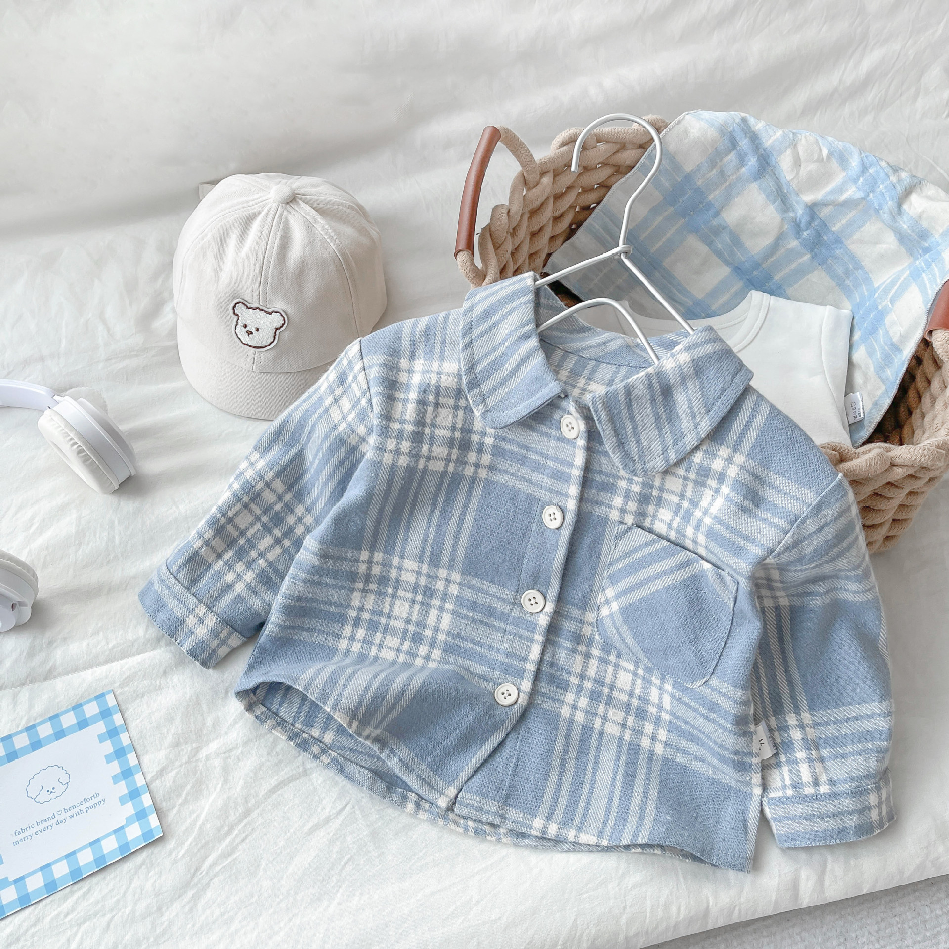 소년의 봄과 가을 2024 새로운 격자 무늬 셔츠 유아용 서양식 캐주얼 코튼 탑 어린이 잘 생긴 셔츠스토어 가기