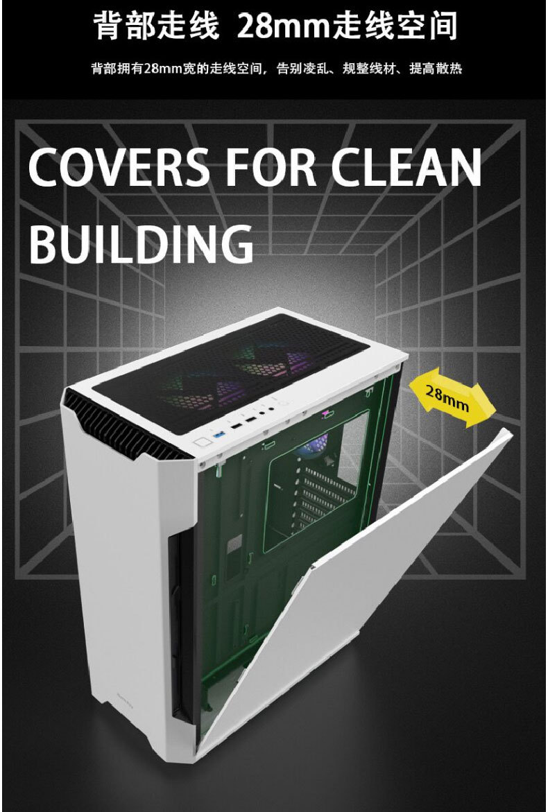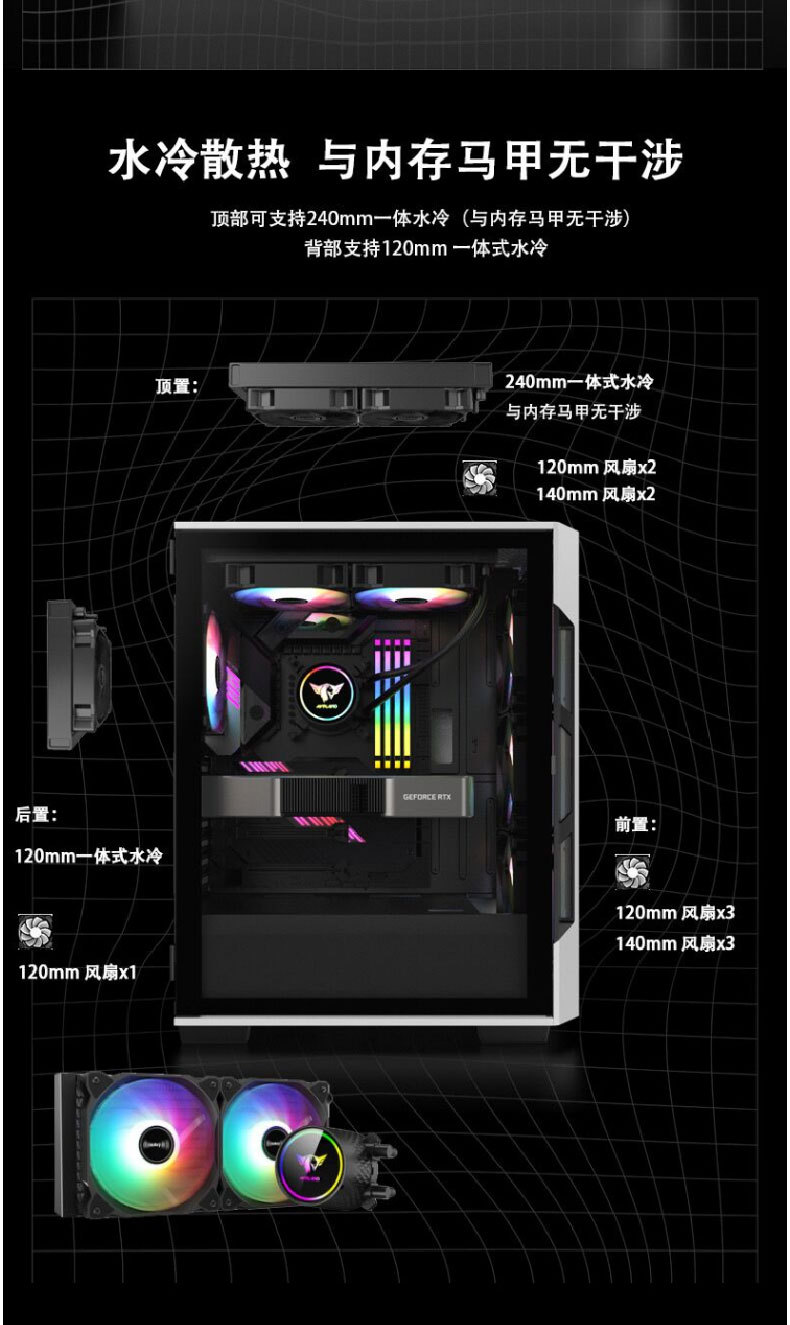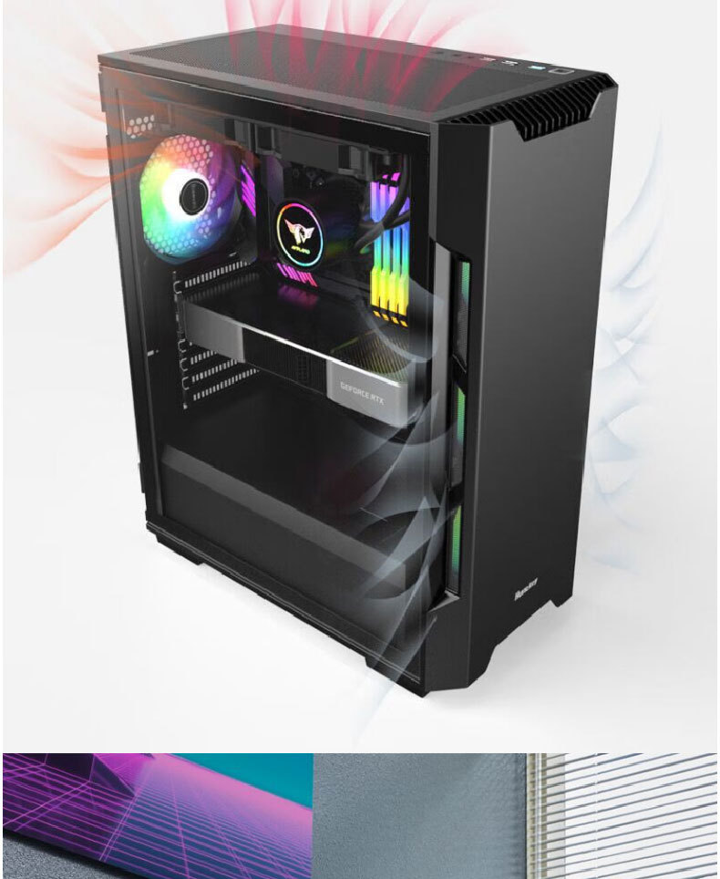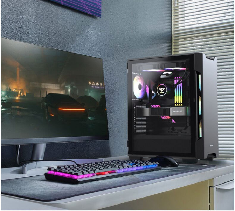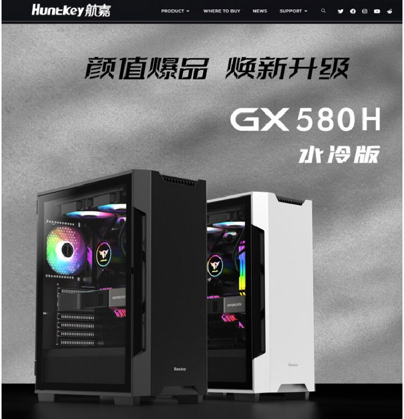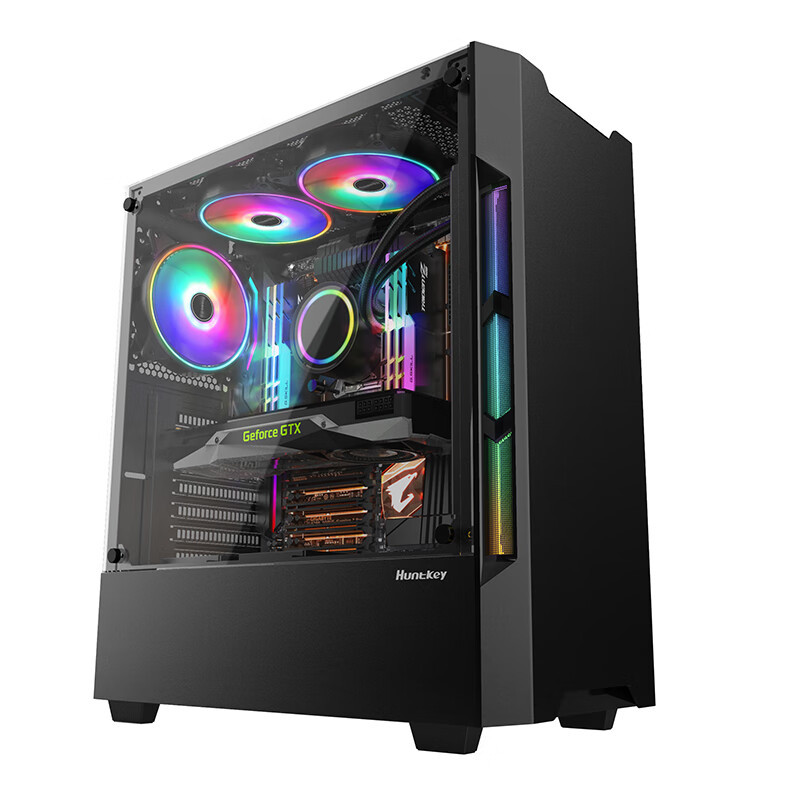 HuntkeyGX580H 데스크탑 섀시 ATX 중간 타워 수냉식 강화 유리 측면 게임 방진스토어 가기