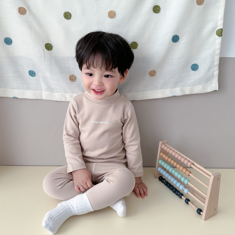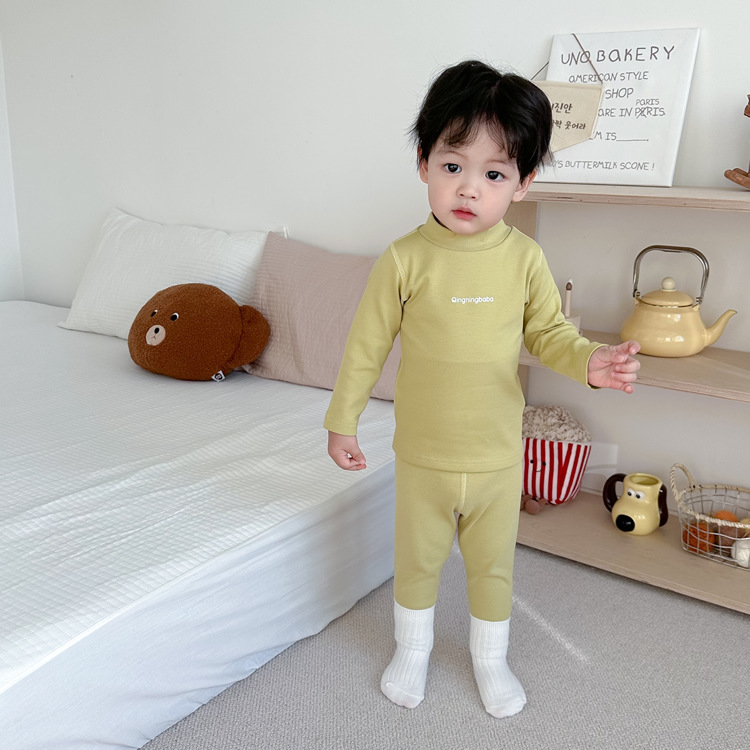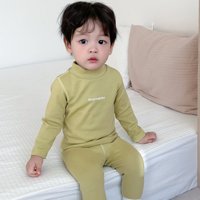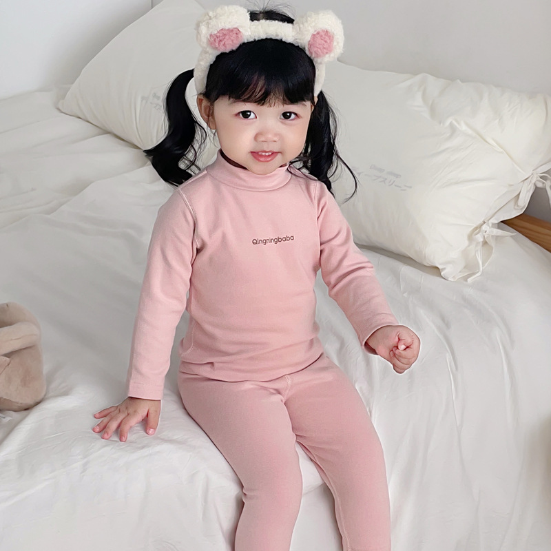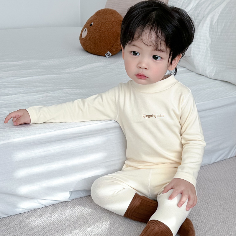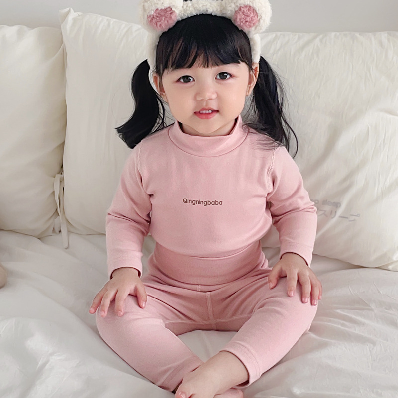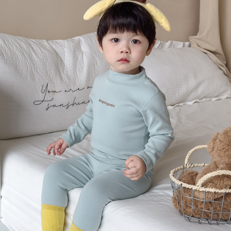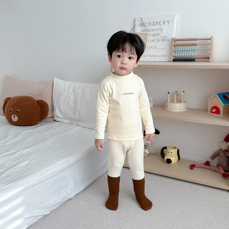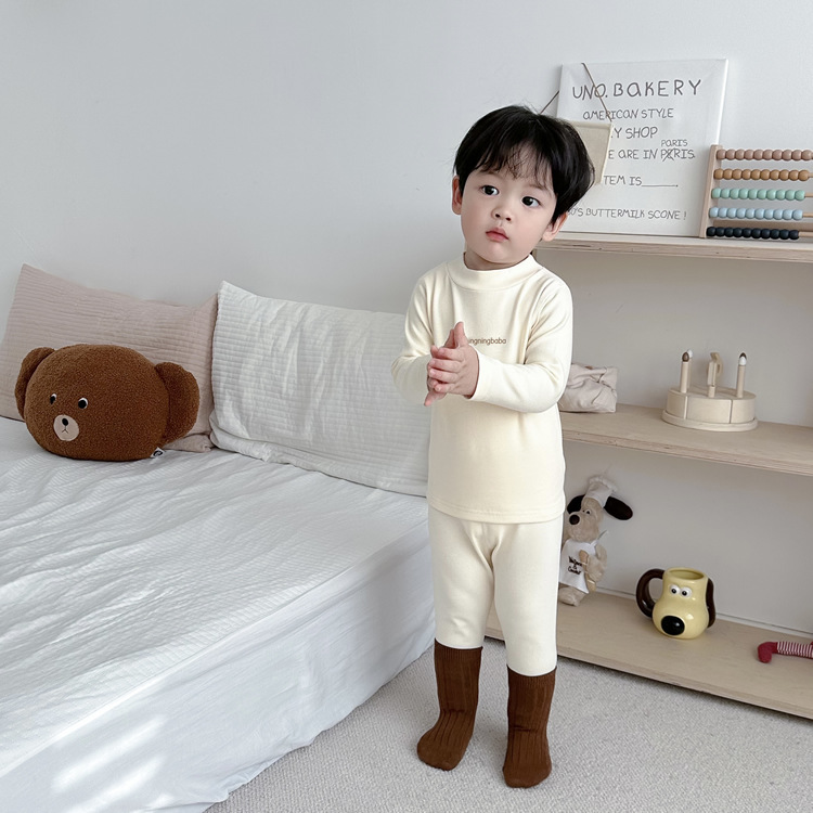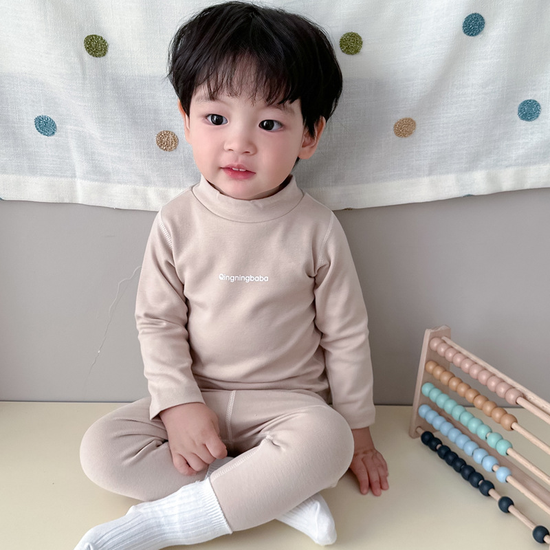 소년 소녀를위한 새로운 어린이 중고 칼라 베이스 셔츠 겨울 속옷 순면 가을 옷 가을 바지 따뜻한 가정 옷 세트스토어 가기