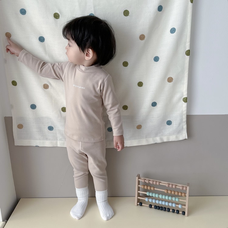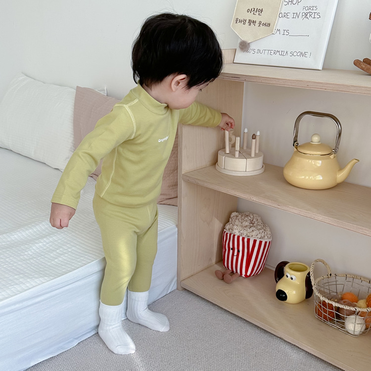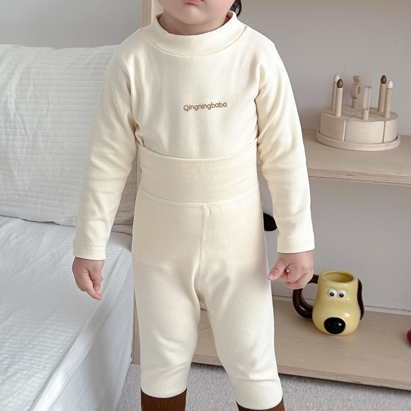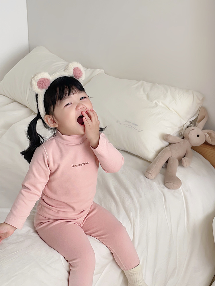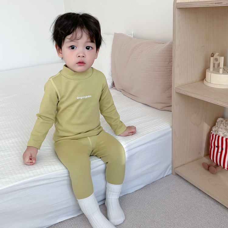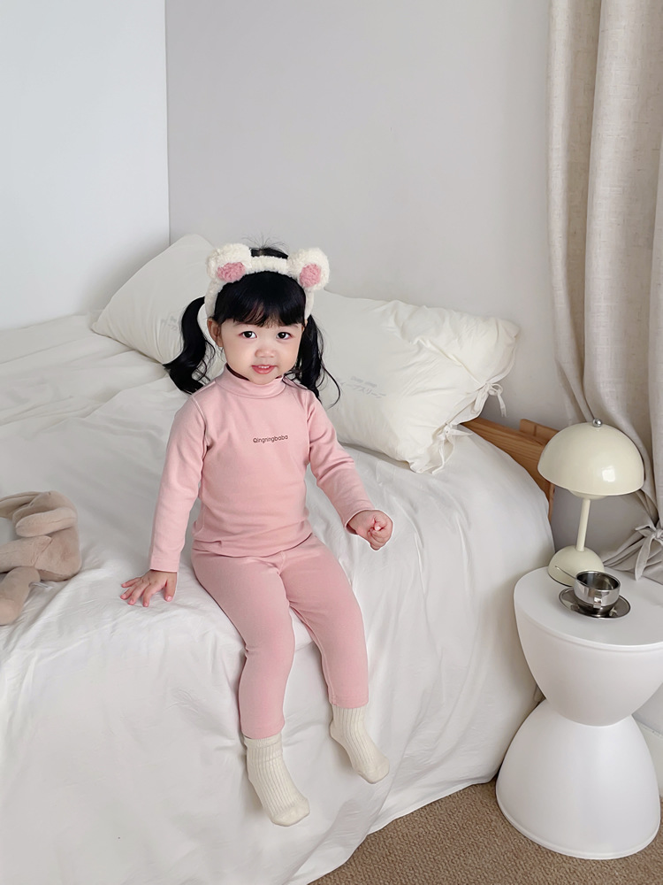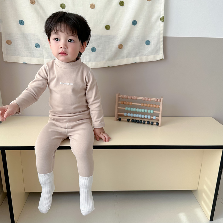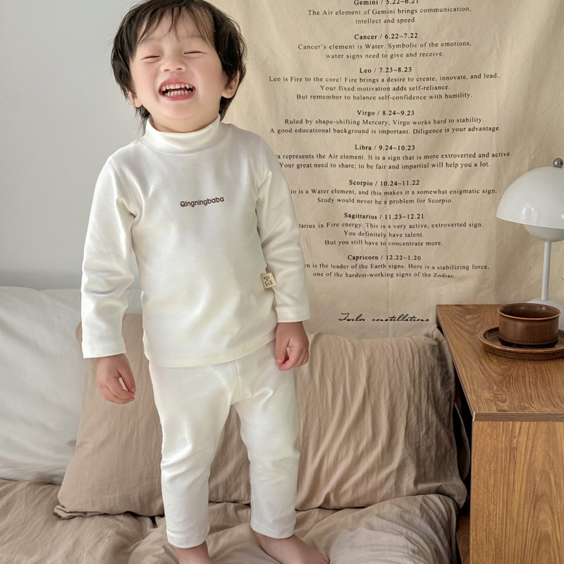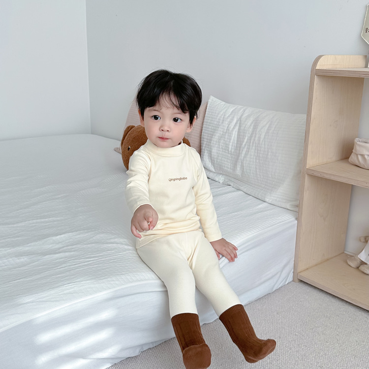 소년 소녀를위한 새로운 어린이 중고 칼라 베이스 셔츠 겨울 속옷 순면 가을 옷 가을 바지 따뜻한 가정 옷 세트스토어 가기