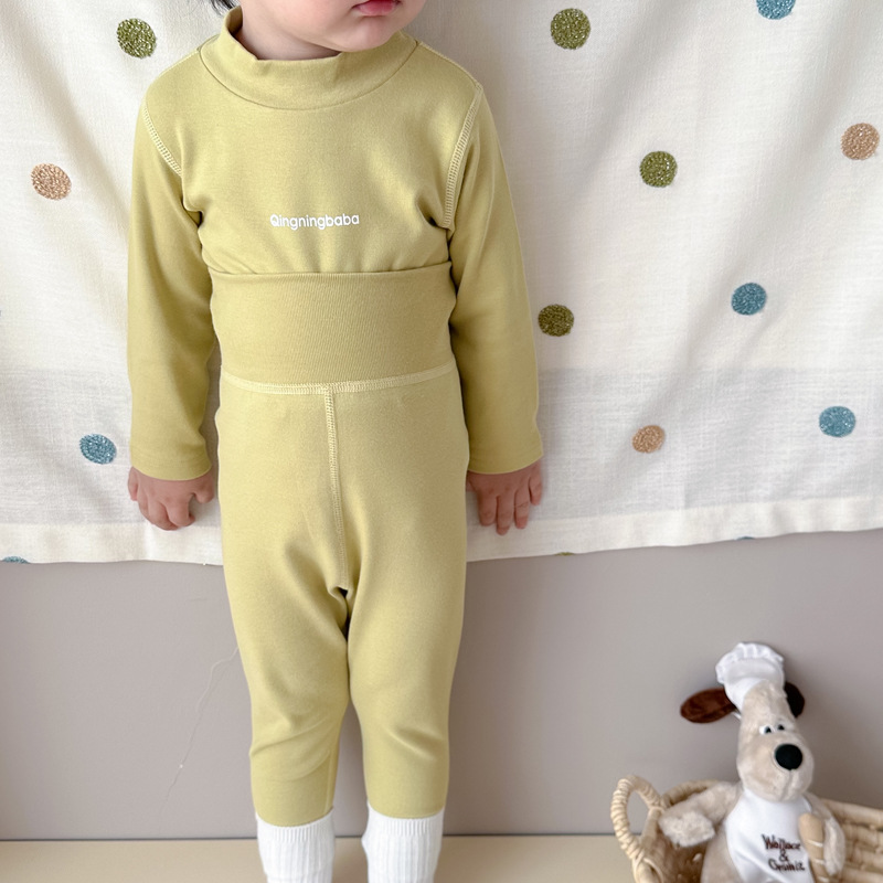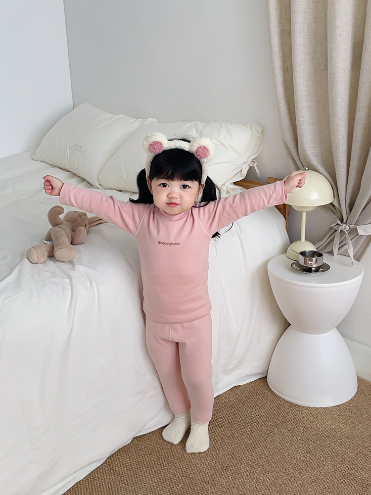 소년 소녀를위한 새로운 어린이 중고 칼라 베이스 셔츠 겨울 속옷 순면 가을 옷 가을 바지 따뜻한 가정 옷 세트