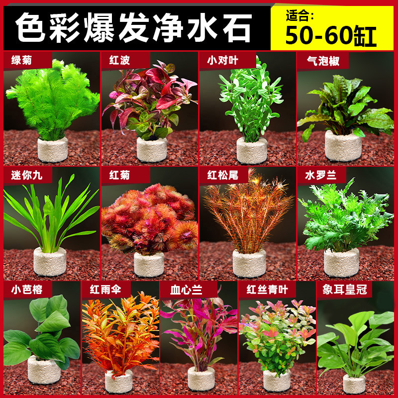 화산석 수초, 수조 조경 장식품, 수경 식물과 물고기 공동양식, 음성진짜풀, 수질정화