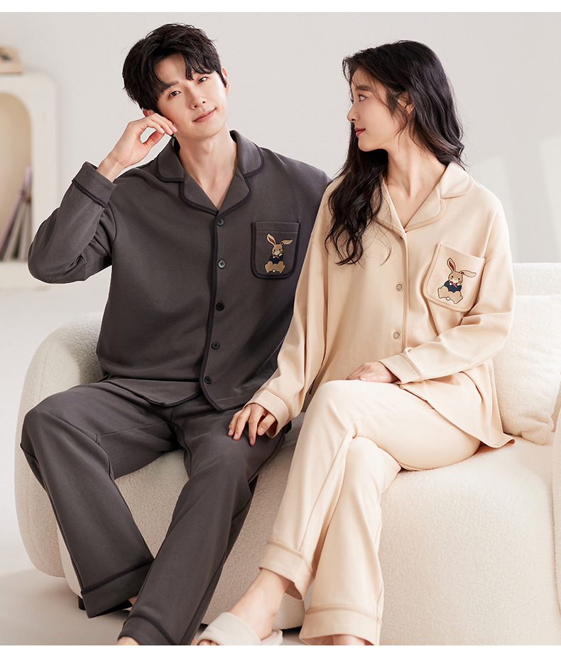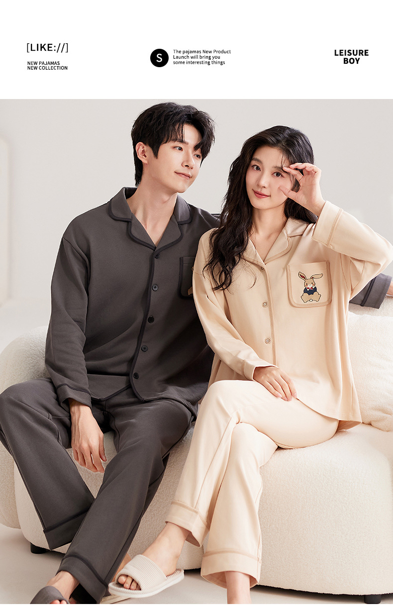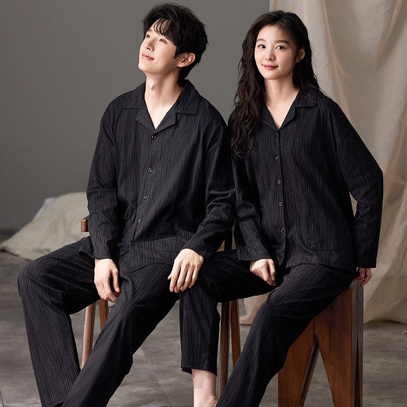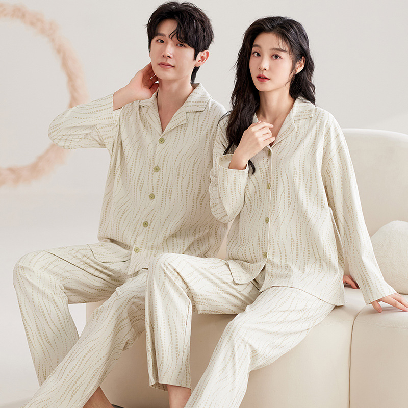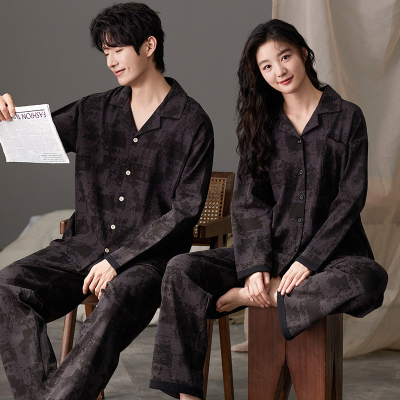 한국 스타일 면 느낌 커플 잠옷 가을 긴팔 긴바지 가디건 세트 외출복 가능 루즈핏 캐주얼 남녀 홈웨어스토어 가기