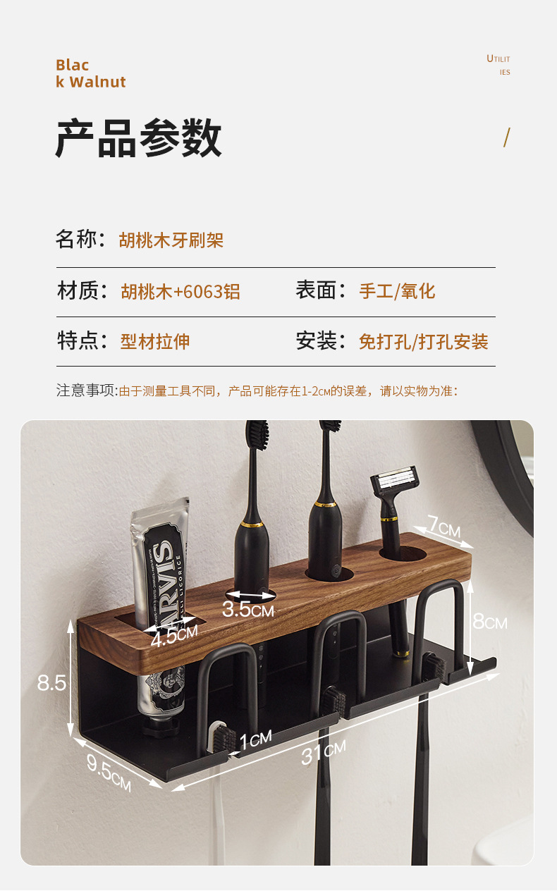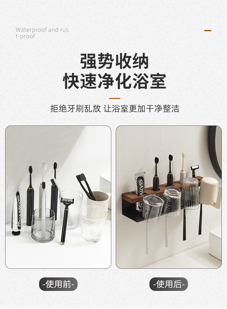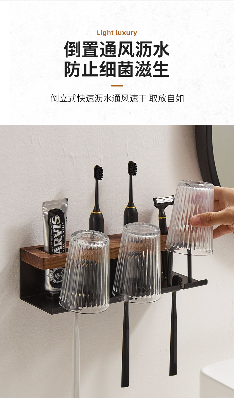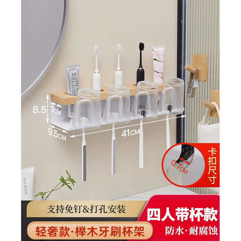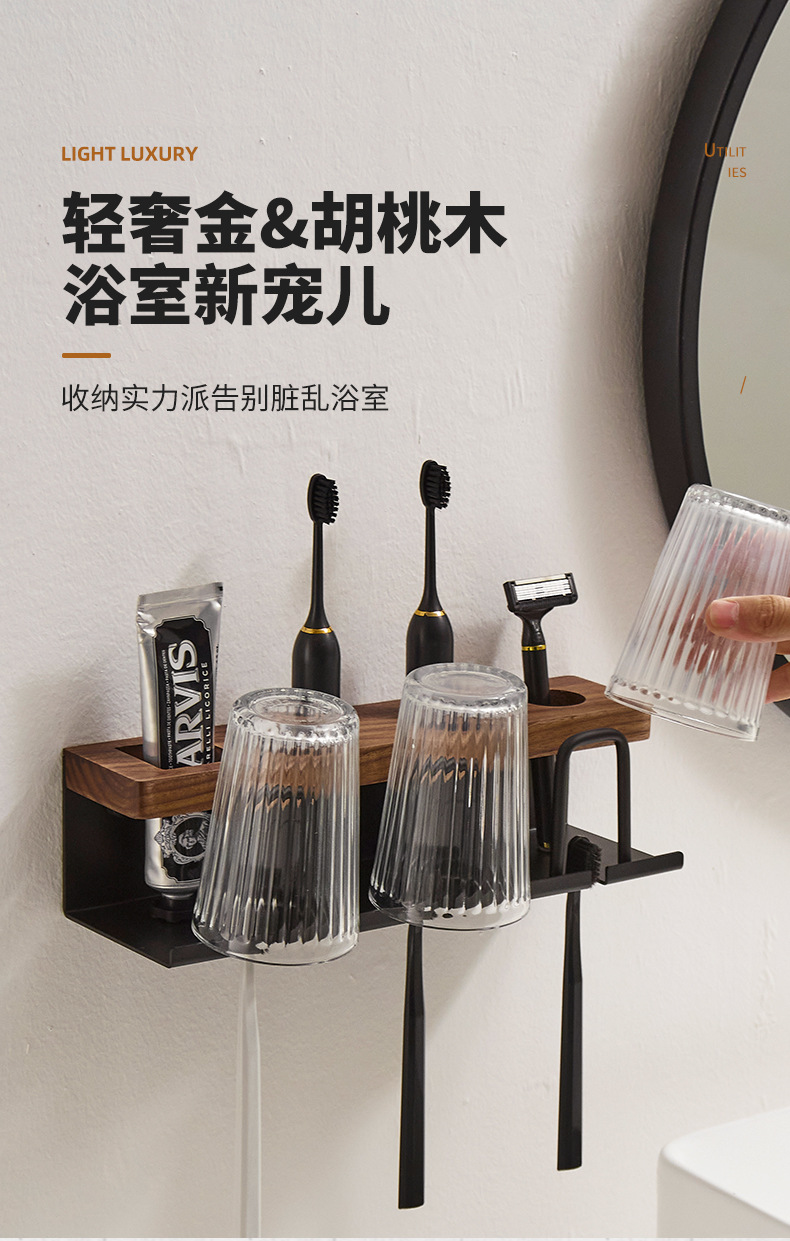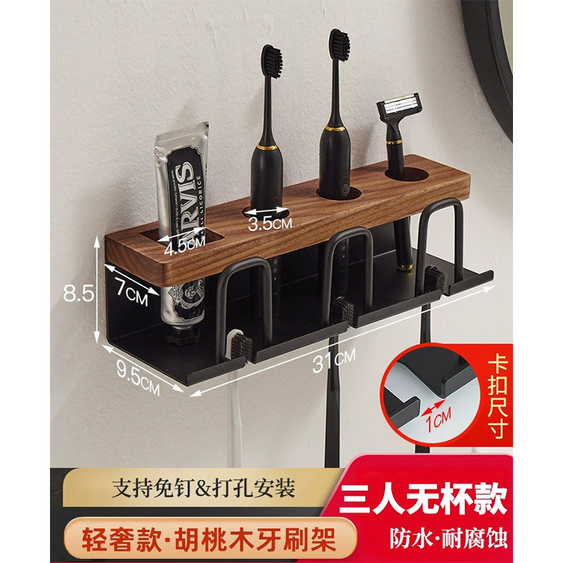 호두 칫솔 랙 스토리지 랙 펀치 프리 화장실 욕실 솔리드 우드 마우스 워시 컵 전기 칫솔 랙