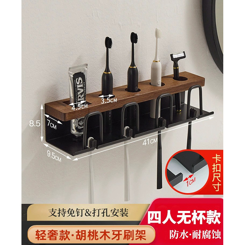 호두 칫솔 랙 스토리지 랙 펀치 프리 화장실 욕실 솔리드 우드 마우스 워시 컵 전기 칫솔 랙스토어 가기