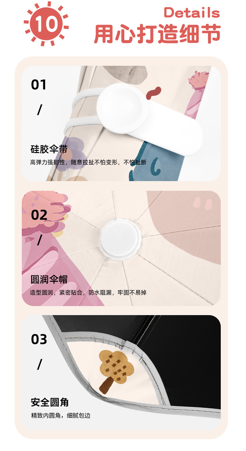 학교 학생을위한 특수 우산 남성 안전 둥근 태양 보호 어린이 여성의 반동 방지 자동 접는 이중 목적 써니 우산