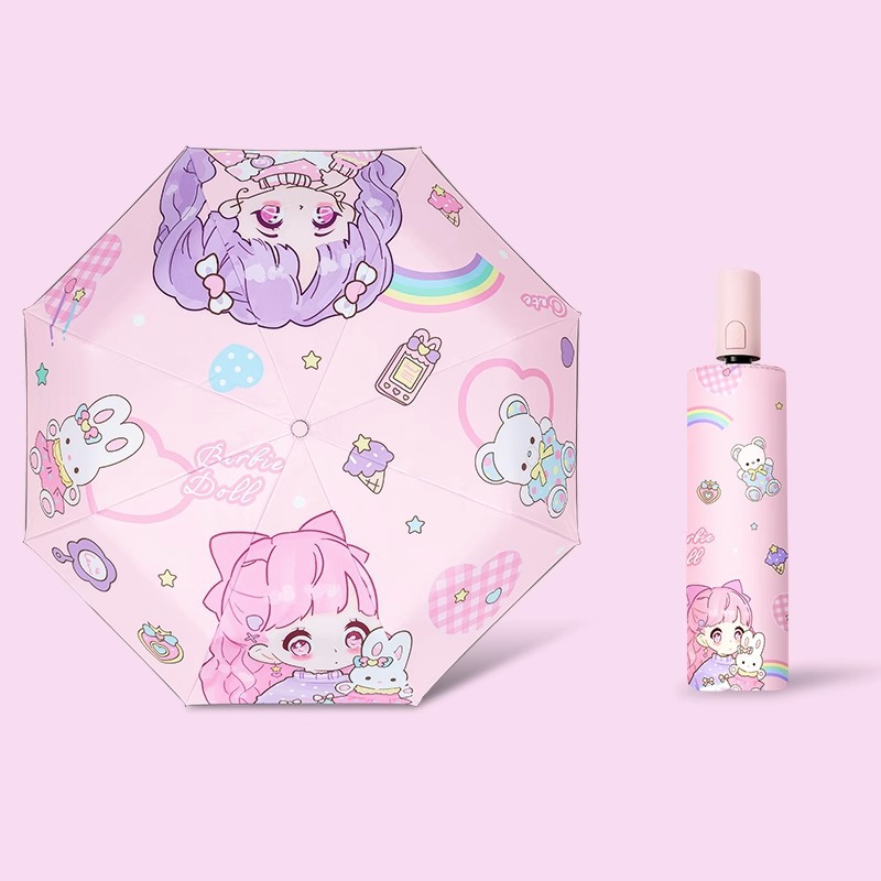 학교 학생을위한 특수 우산 남성 안전 둥근 태양 보호 어린이 여성의 반동 방지 자동 접는 이중 목적 써니 우산스토어 가기