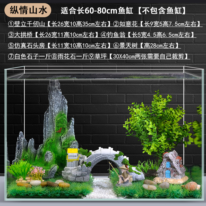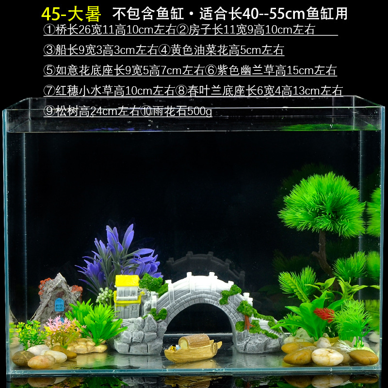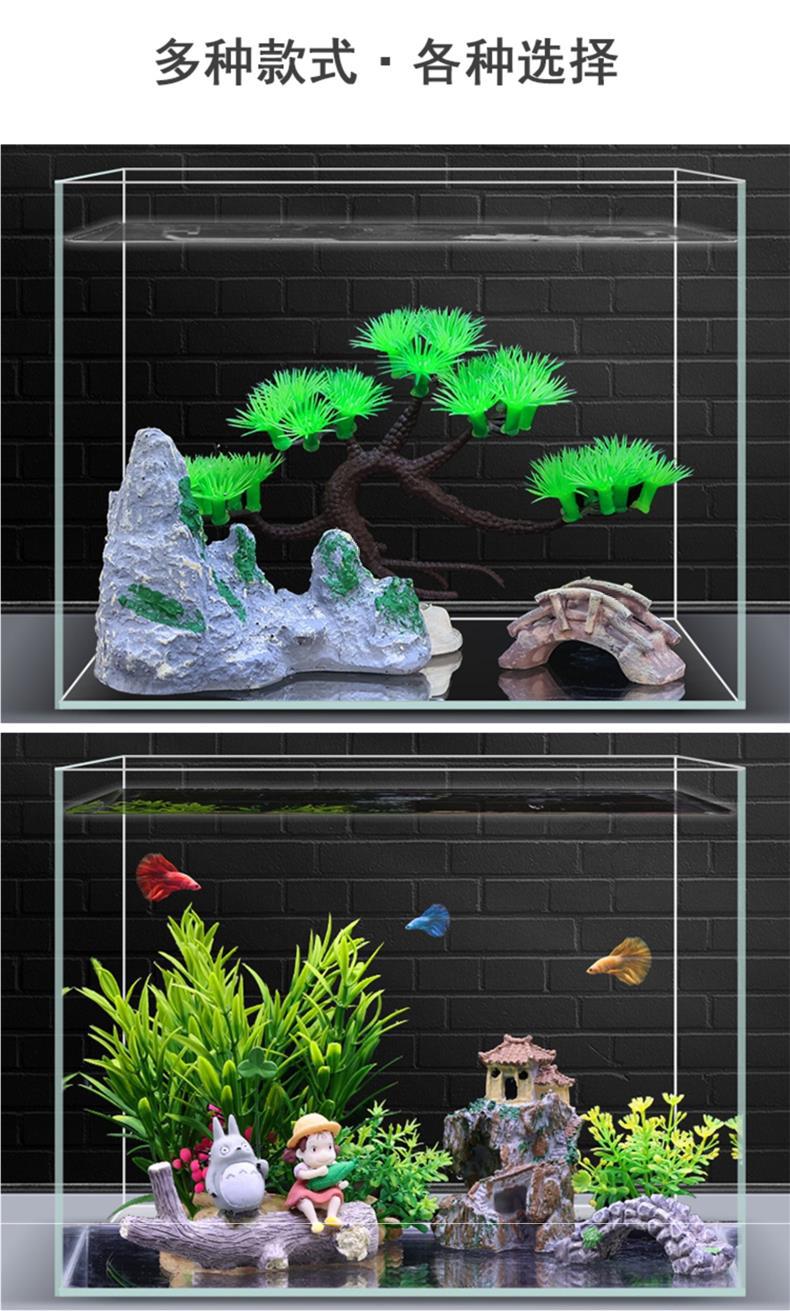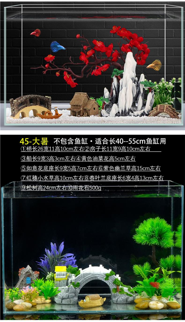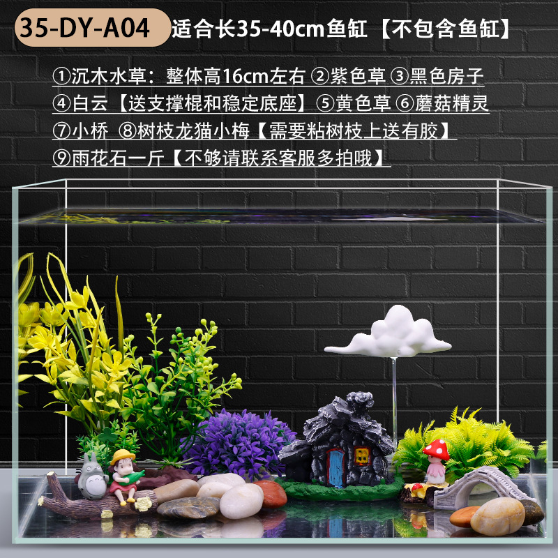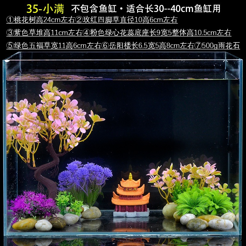 수조 조경 장식 패키지, 수생 식물 작은 장식품, 가짜 바위, 모래 바닥, 모래 수족관 장식 식물 세트, 전체 세트