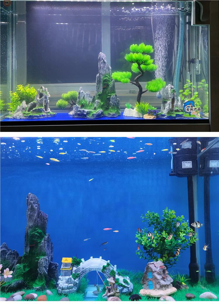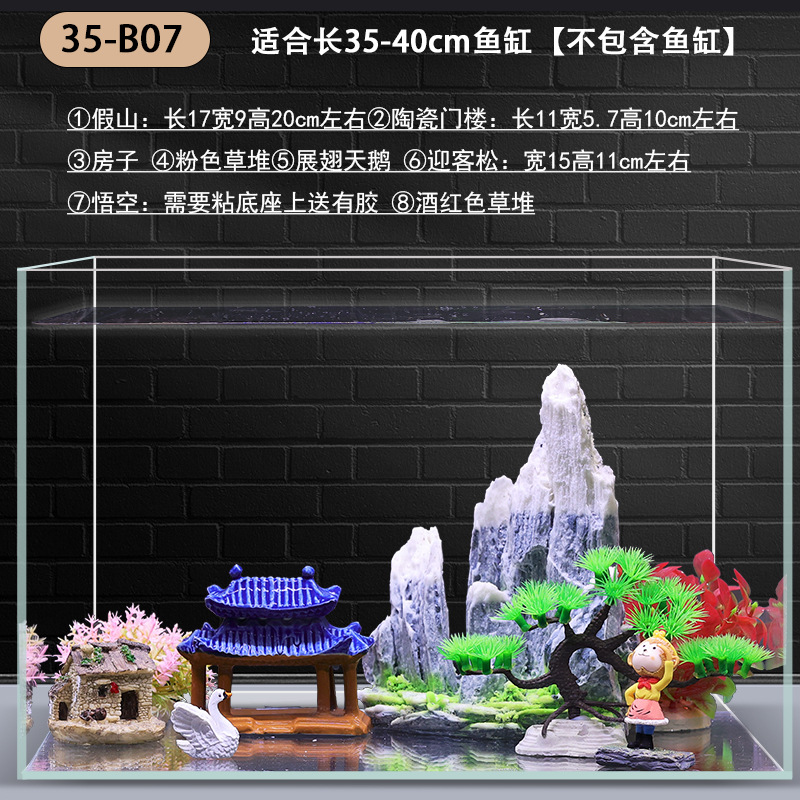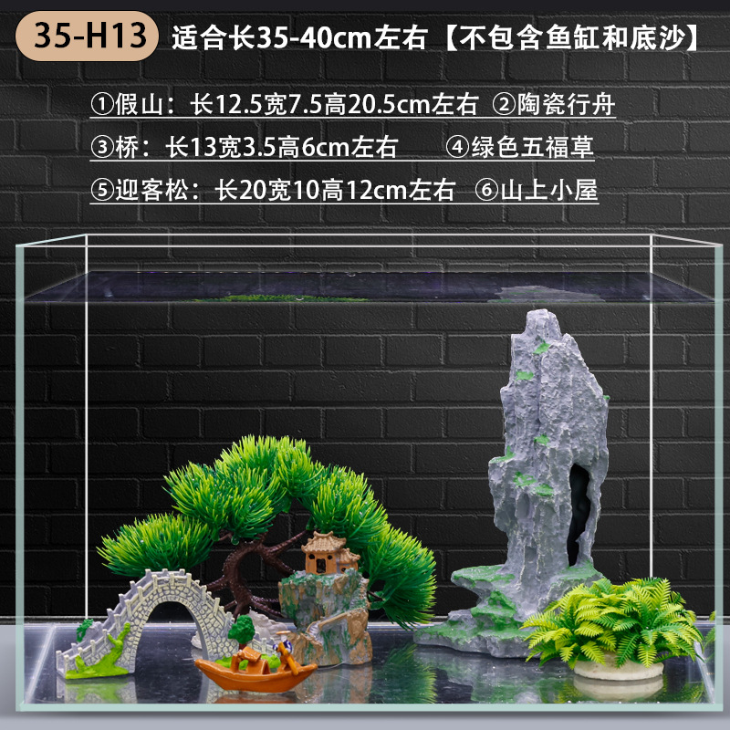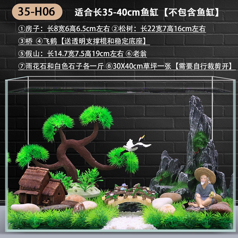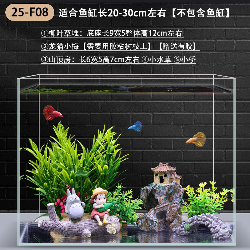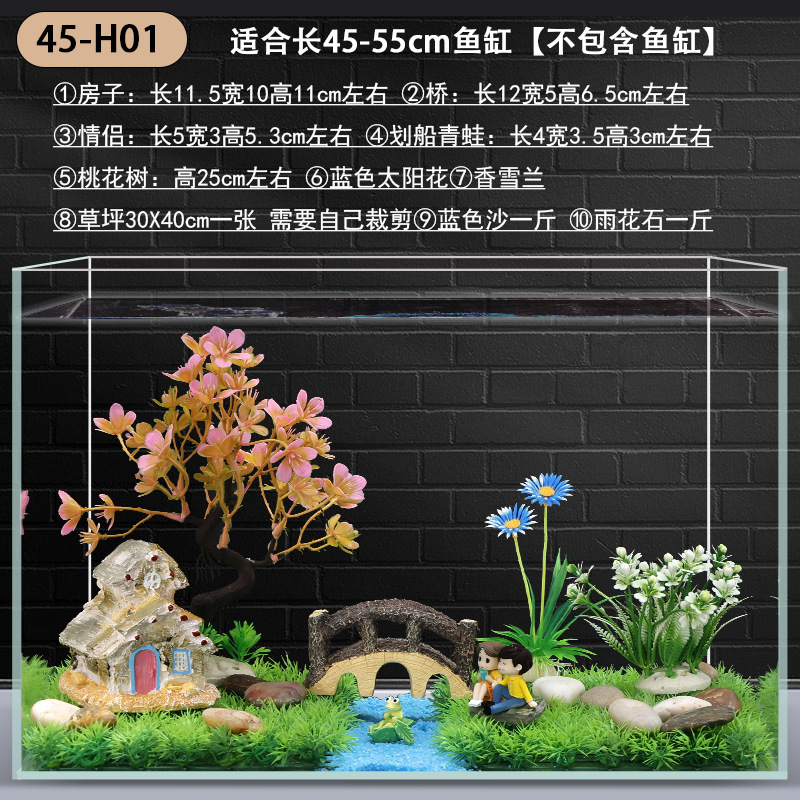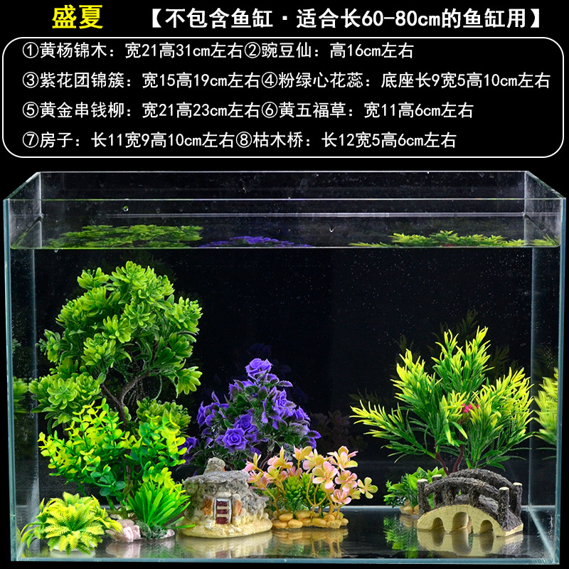 수조 조경 장식 패키지, 수생 식물 작은 장식품, 가짜 바위, 모래 바닥, 모래 수족관 장식 식물 세트, 전체 세트