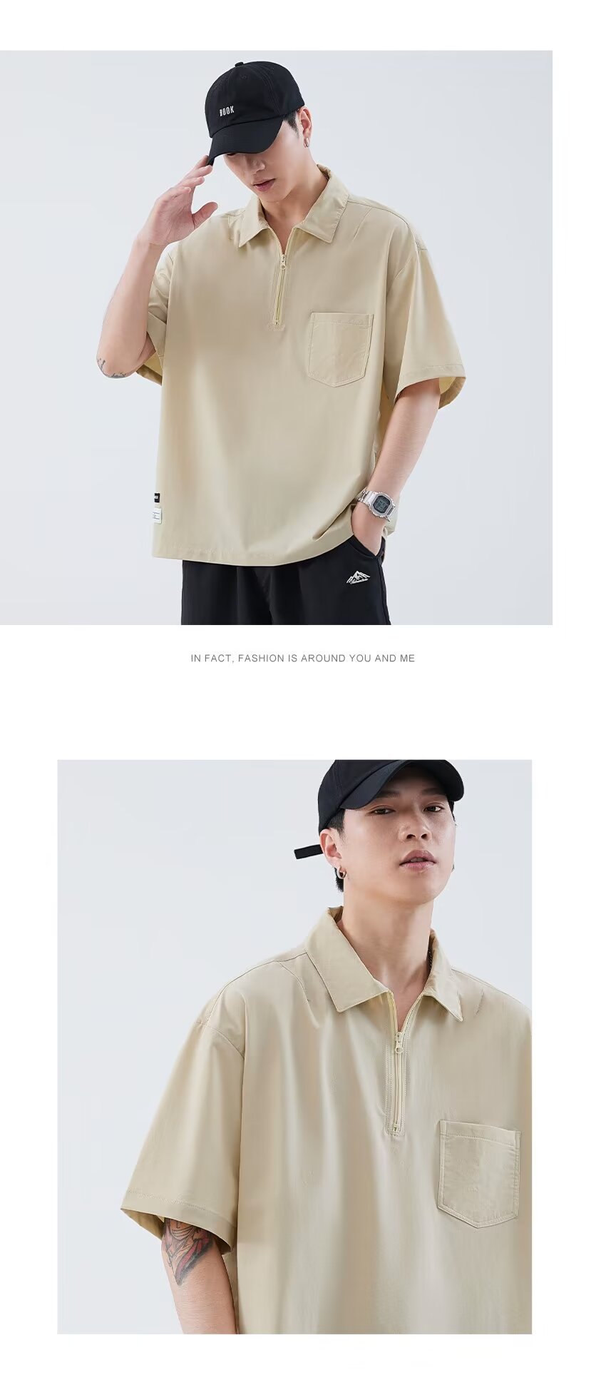 옷깃 반팔 폴로 셔츠 남자의 유행 브랜드 여름 티셔츠 한국 스타일 슬림 핏 유행 2023 새로운 올 매치 티셔츠 탑스토어 가기