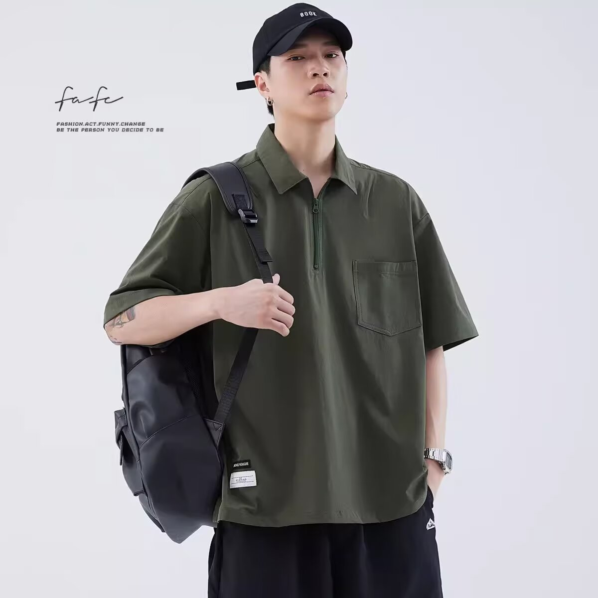 옷깃 반팔 폴로 셔츠 남자의 유행 브랜드 여름 티셔츠 한국 스타일 슬림 핏 유행 2023 새로운 올 매치 티셔츠 탑