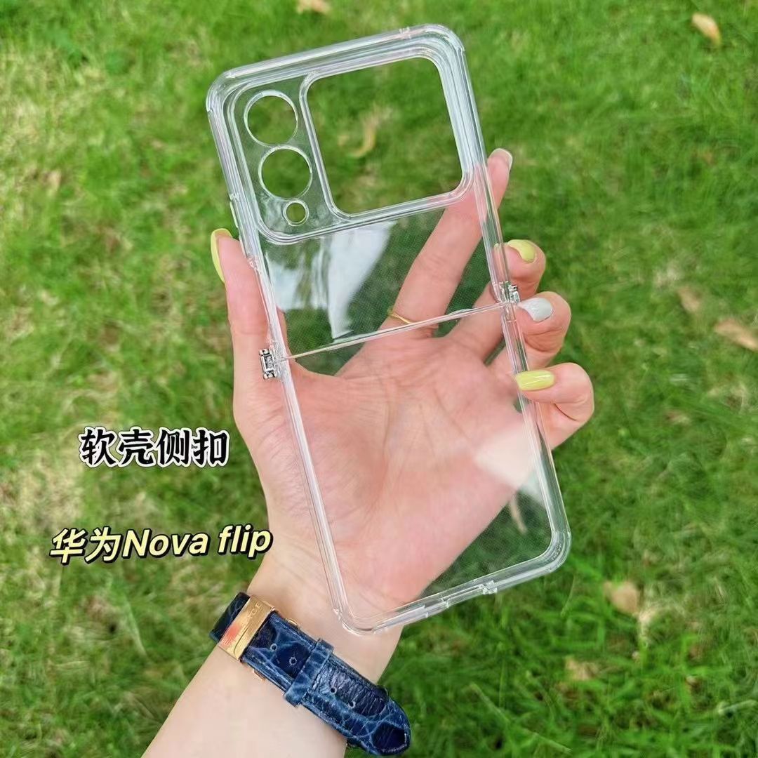 화웨이 노바 플립 폰 케이스 접히는 내부 드롭 방지 TPU 소재 소프트 케이스 사이드 매달린 버클 하드웨어 버클스토어 가기