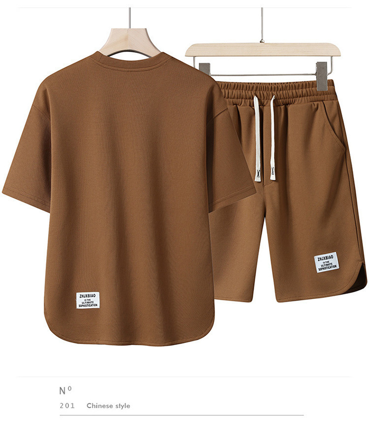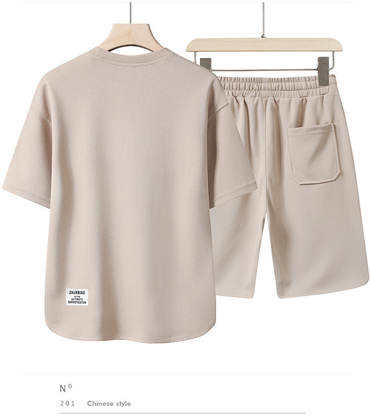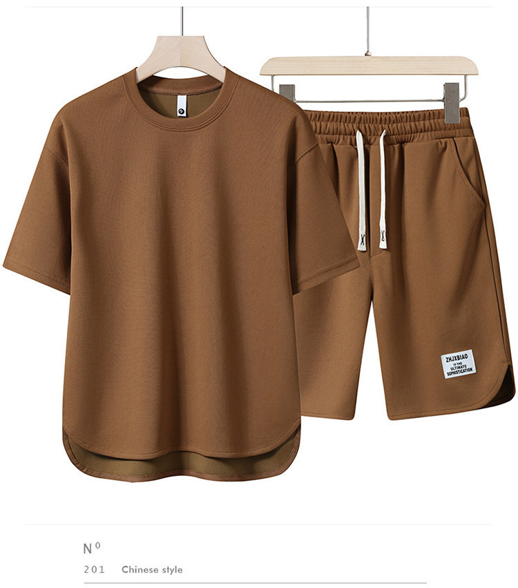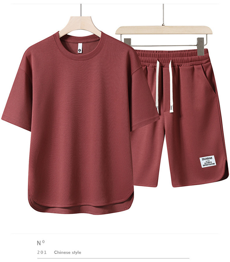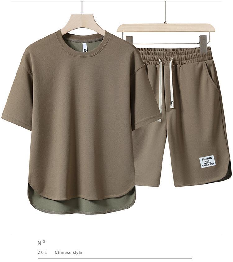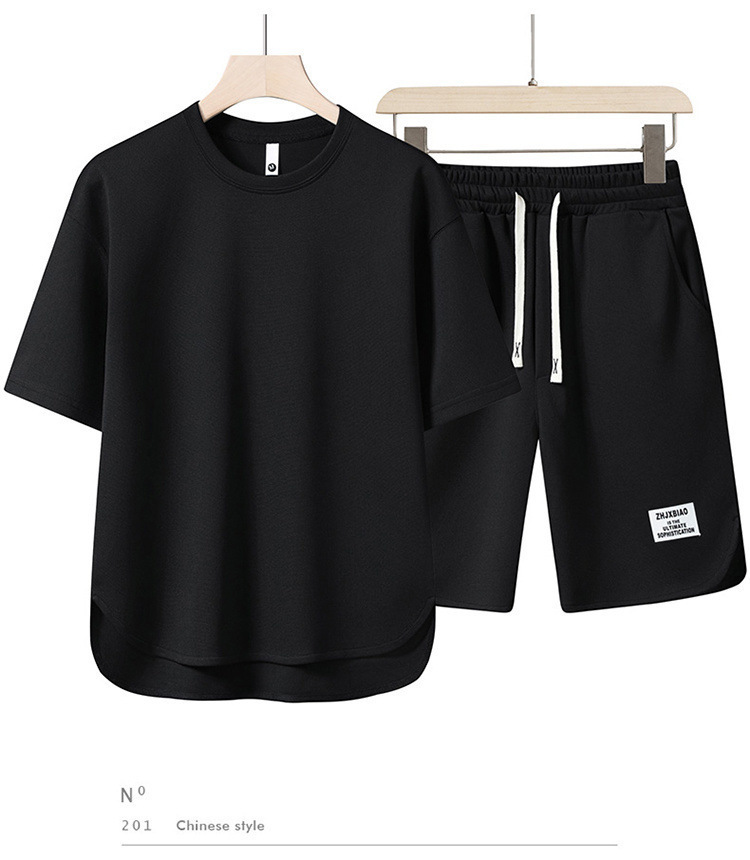 남성 정장 2023 뉴 여름 트렌드 반팔 티셔츠 남성 의류 속건성 솔리드 컬러 스포츠 반팔 반바지스토어 가기