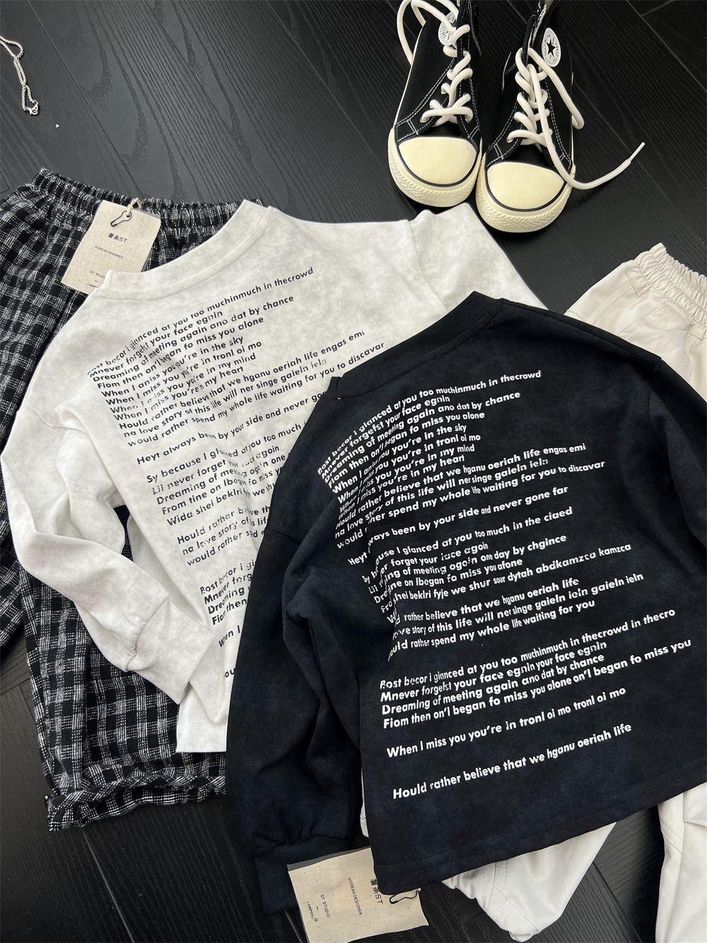 더러운 바람 아이들의 가을 미국 거리 바틱 편지 긴팔 티셔츠 소년 잘 생긴 폐기물 넥타이 염색 외복 탑스토어 가기