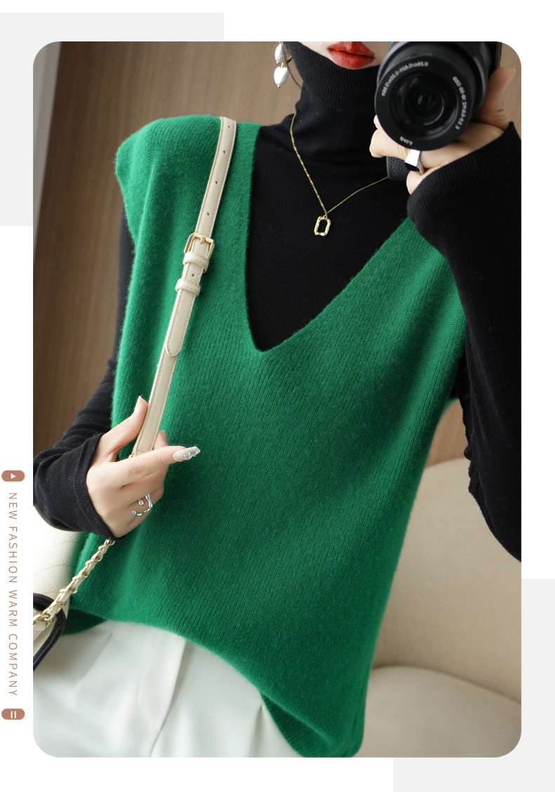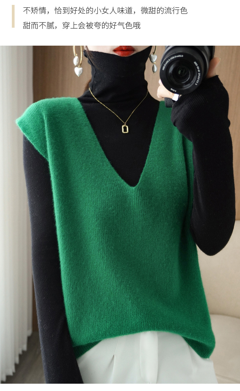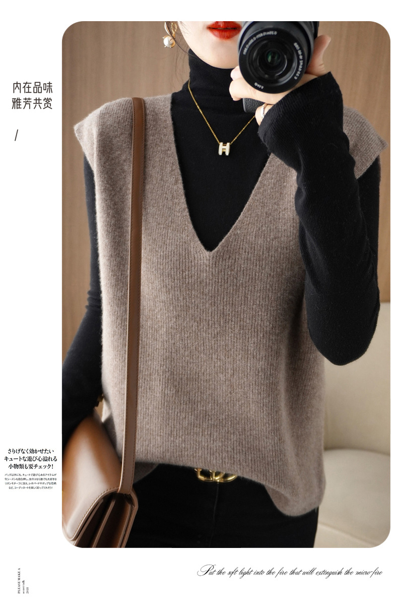 세련된 프랑스 스타일 쌓인 V 넥 니트 조끼 여자 봄과 가을 올 매치 민소매 스웨터 조끼 외부 웨이스트 코트 조끼스토어 가기