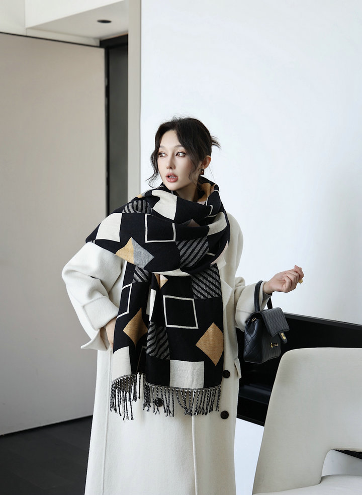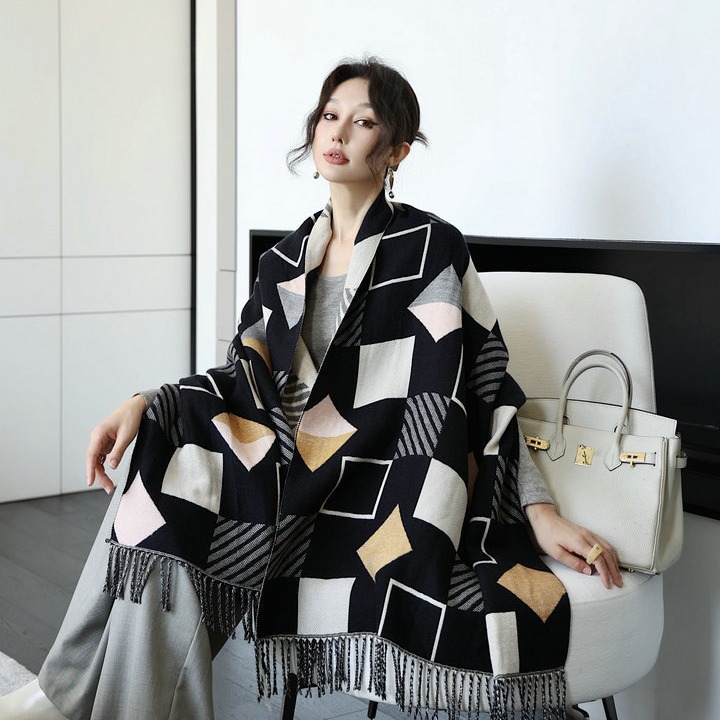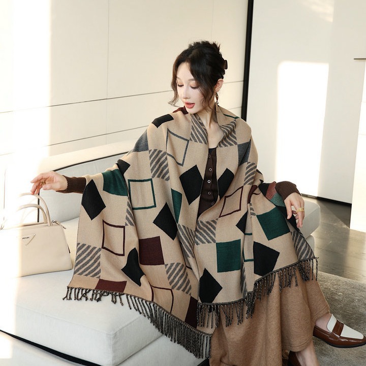 가을과 겨울 새로운 캐시미어 격자 무늬 스카프 여성의 두꺼운 따뜻한 여행 외부 케이프 롱 술 케이프스토어 가기