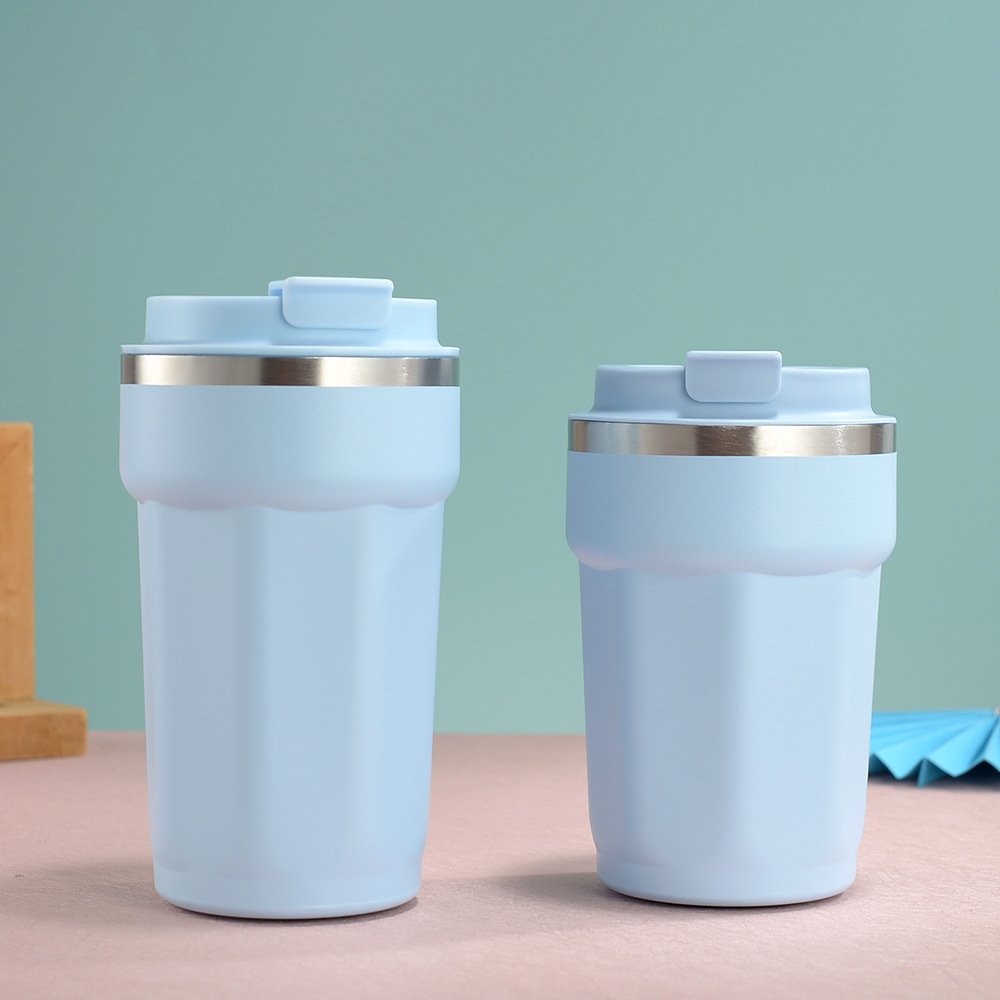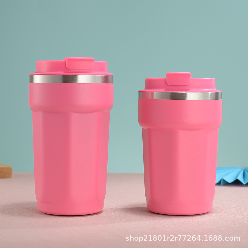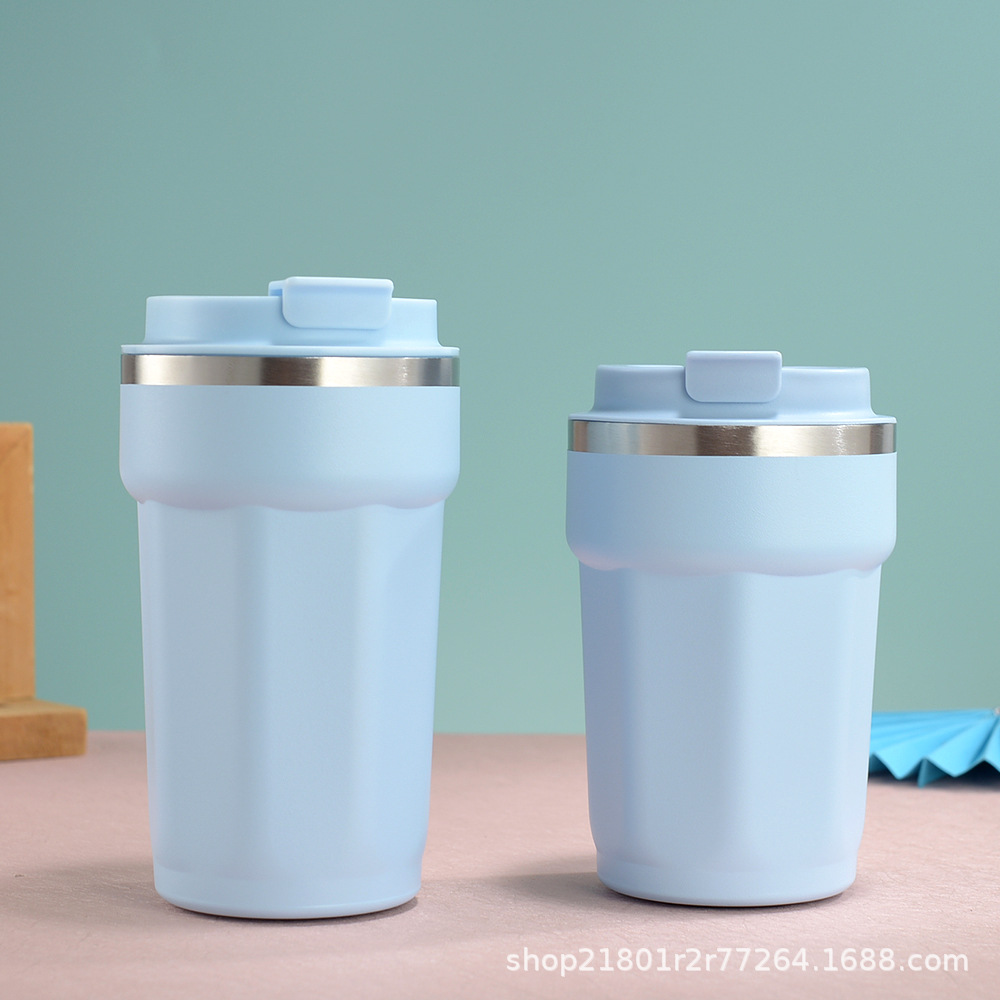 국경 새로운 304 스테인레스 스틸 보온병 컵 패션 플립 타입 휴대용 컵 간단한 팔각형 커피 컵스토어 가기