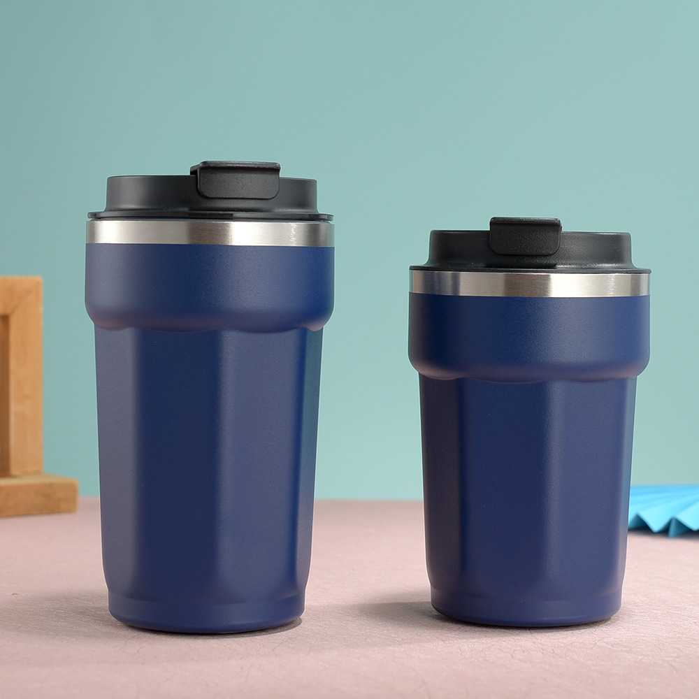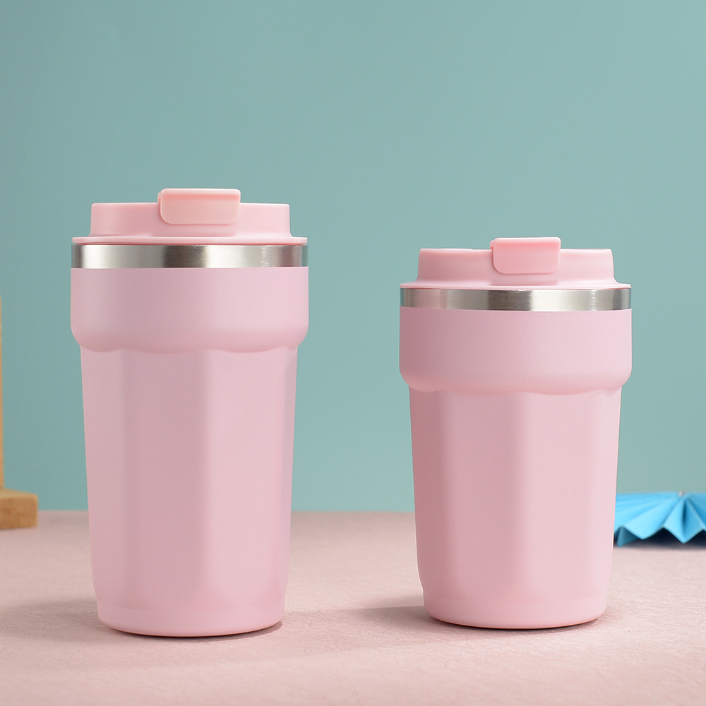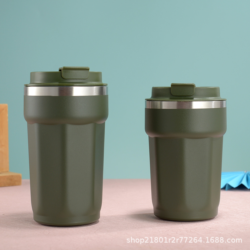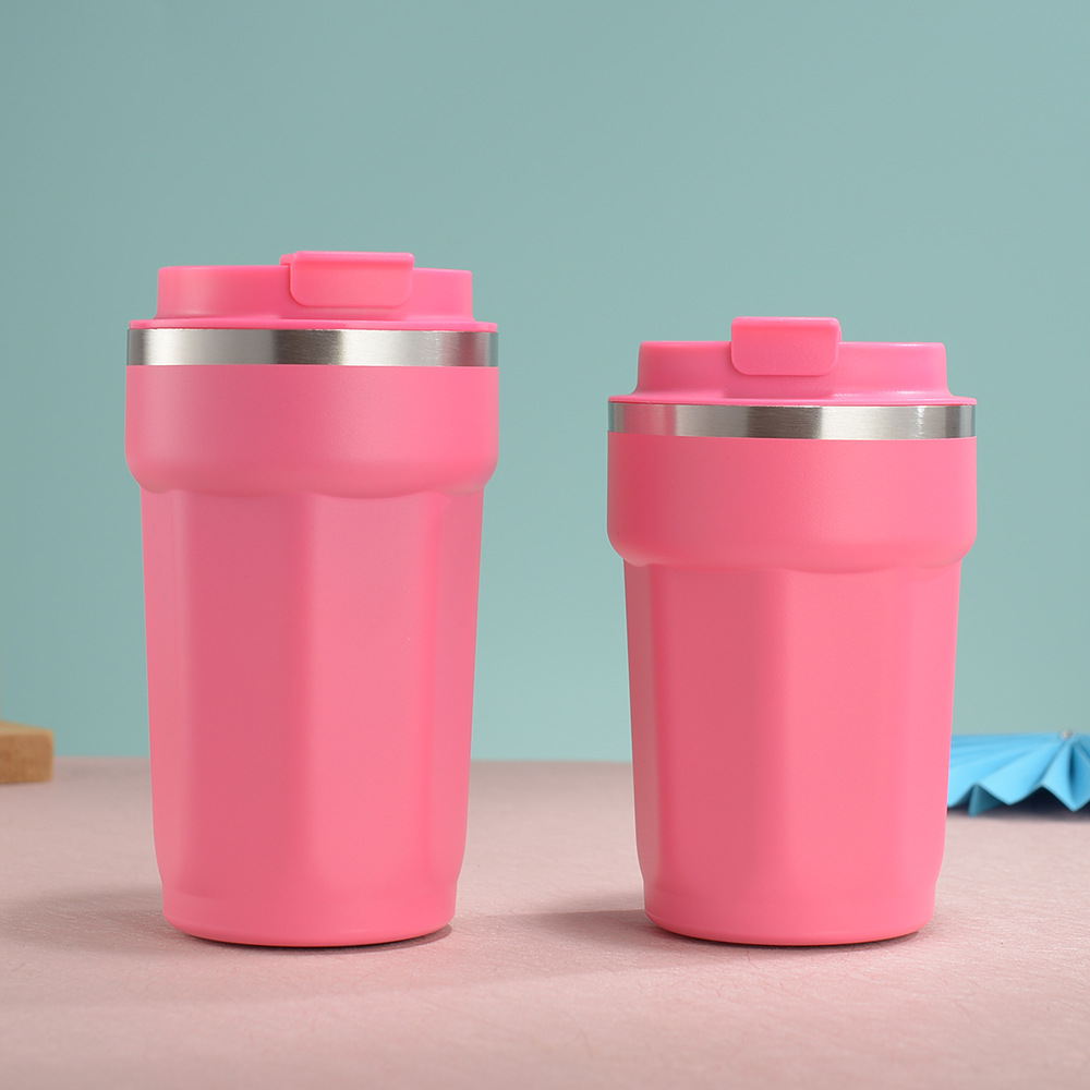 국경 새로운 304 스테인레스 스틸 보온병 컵 패션 플립 타입 휴대용 컵 간단한 팔각형 커피 컵스토어 가기