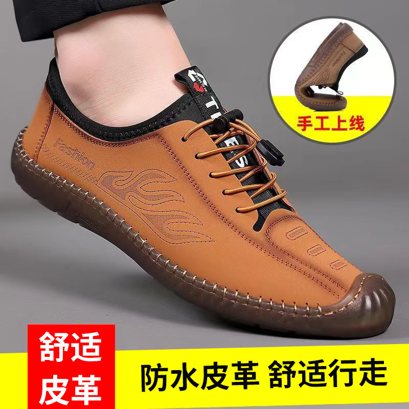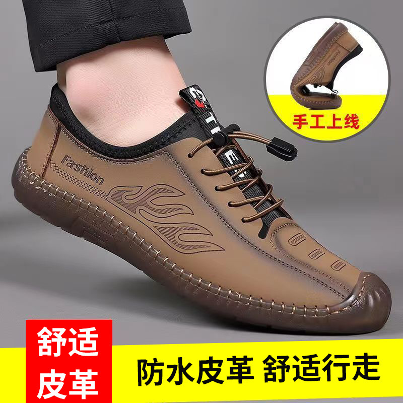 새로운 통기성 남성 가죽 신발 빈 콩 신발 슬립 온 패션 캐주얼 남성 신발 소프트 단독 편안한 남성 캐주얼 신발스토어 가기