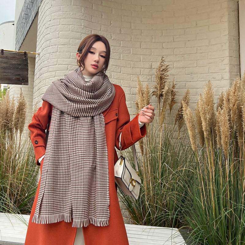 가을과 겨울 새로운 클래식 레트로 하운드 투스 양모 스카프 여성의 하이 엔드 센스 따뜻한 에어컨 목도리 스카프스토어 가기