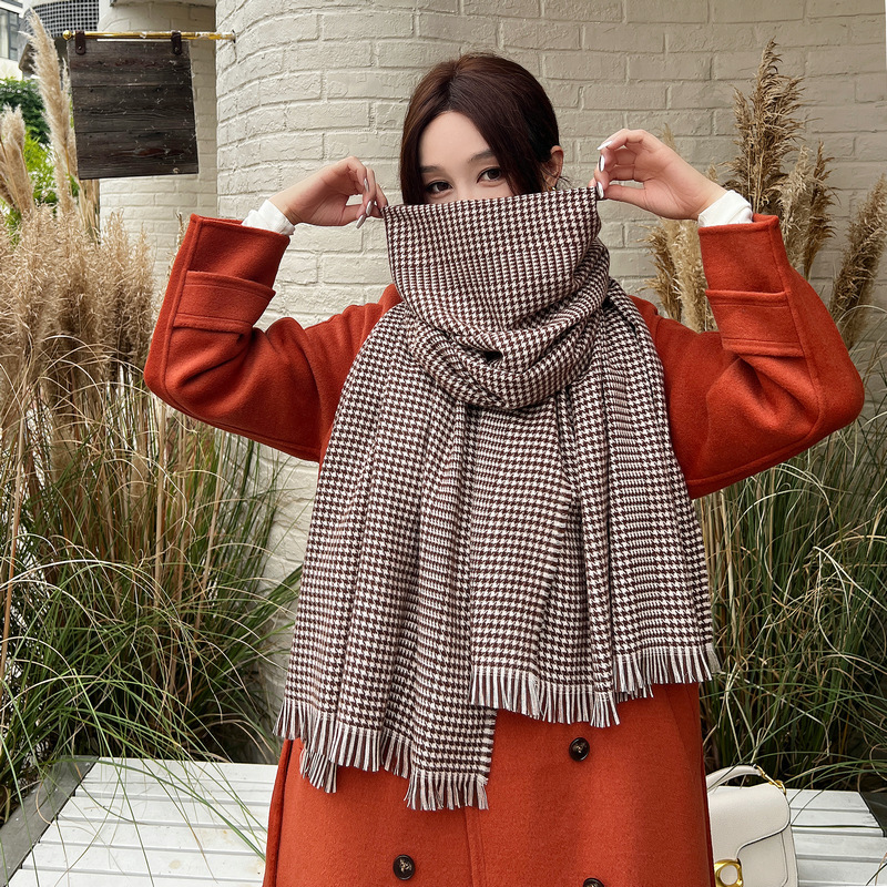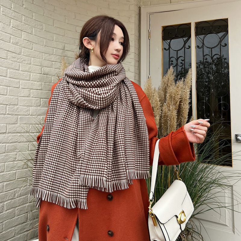 가을과 겨울 새로운 클래식 레트로 하운드 투스 양모 스카프 여성의 하이 엔드 센스 따뜻한 에어컨 목도리 스카프