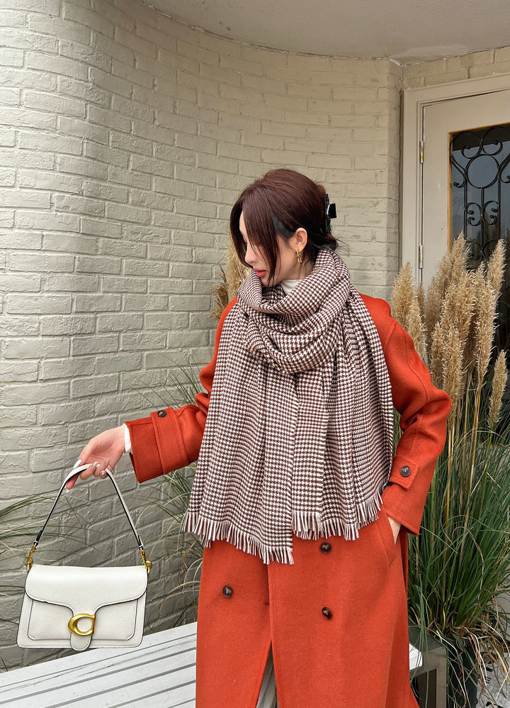 经典复古千鸟格流苏含羊毛围巾女秋冬新款高级感保暖空调披肩围脖