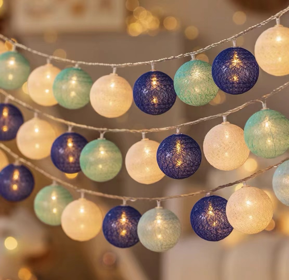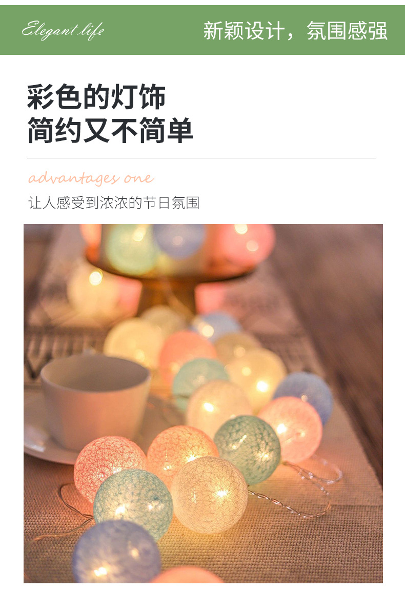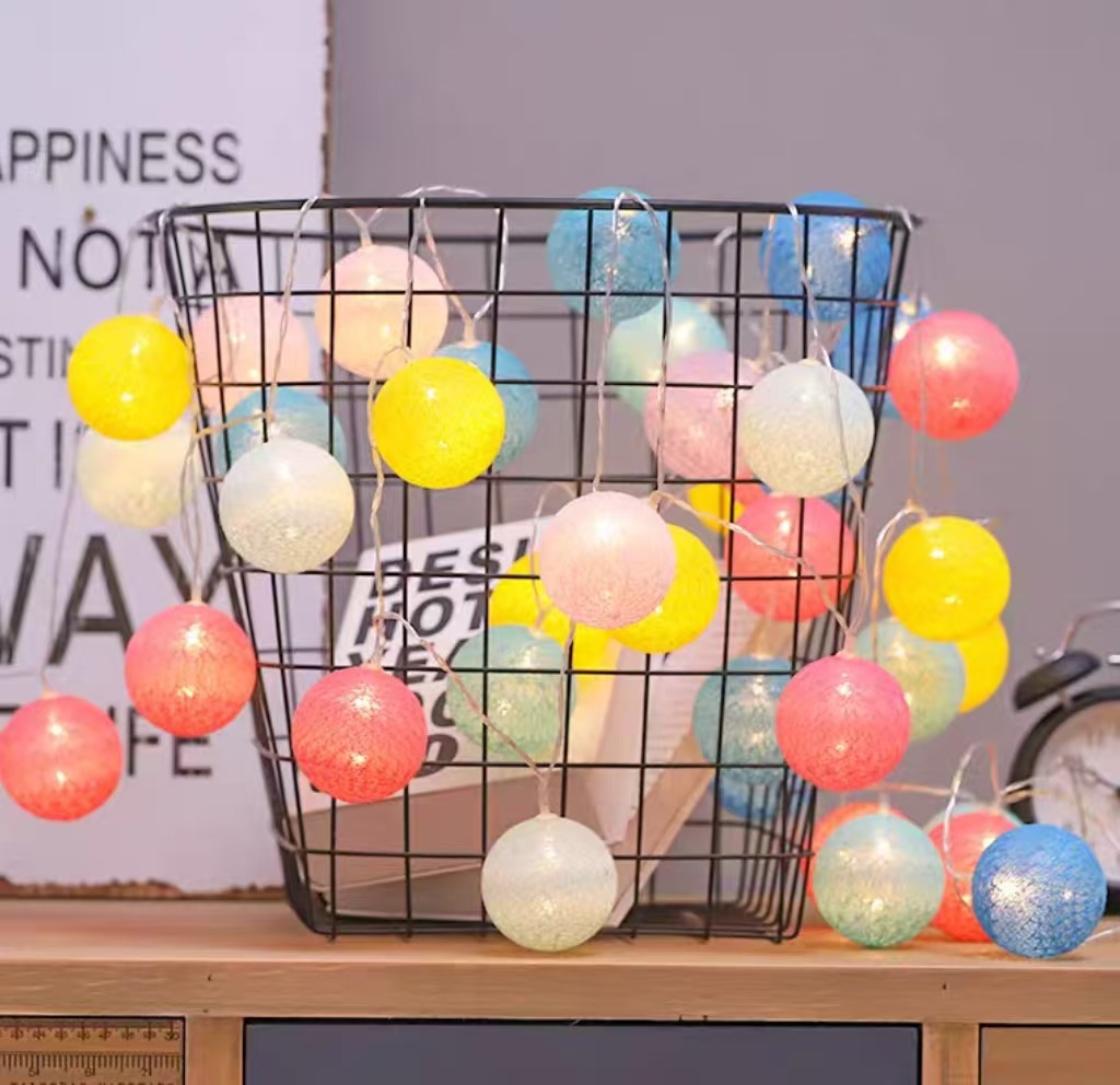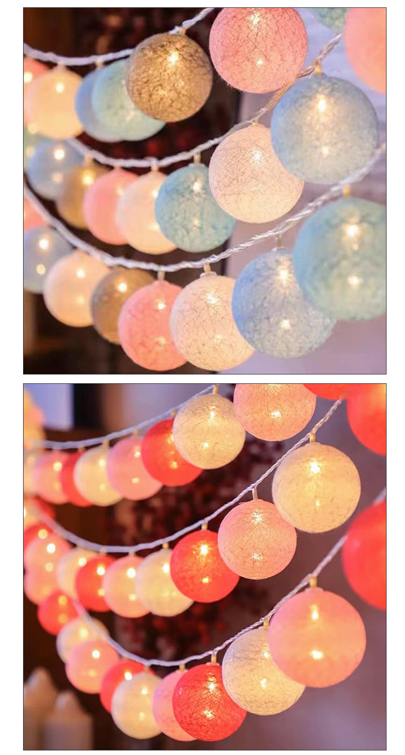 코튼 볼 라이트 스트링 led 소녀 하트 룸 레이아웃 마카롱 보보 볼 라이트 스트링 캠핑 조명