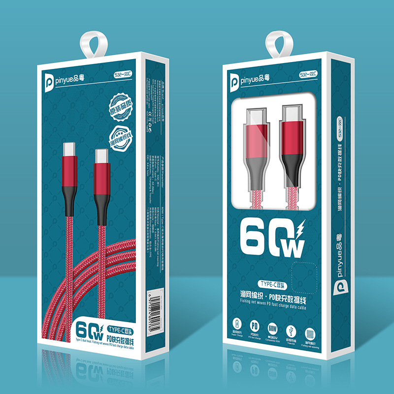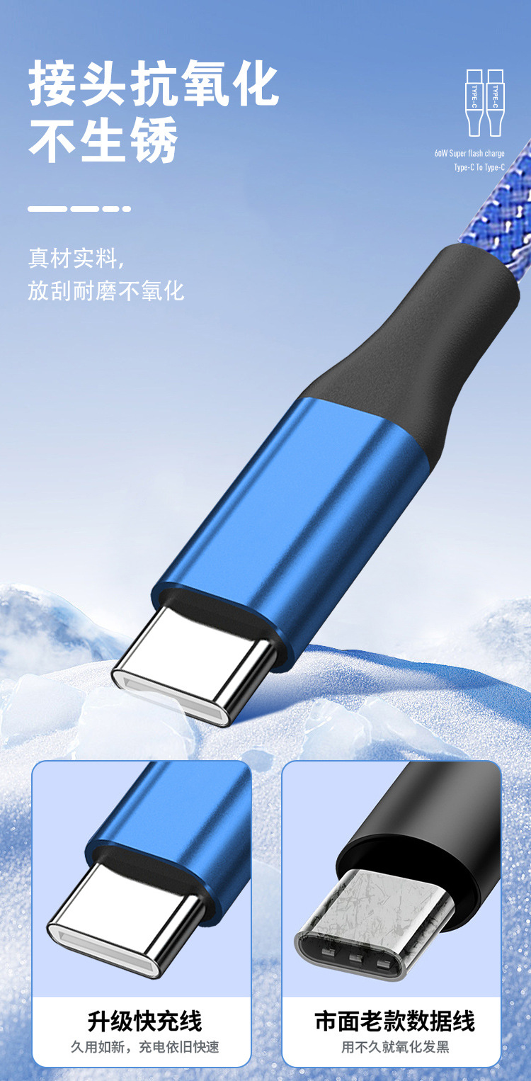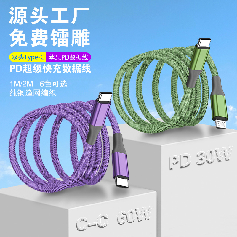 Apple Huawei TYPE-C 단일 헤드 확장 충전 케이블에 적합한 60W 고속 충전 PD Fishnet Weaving CtoC 데이터 케이블