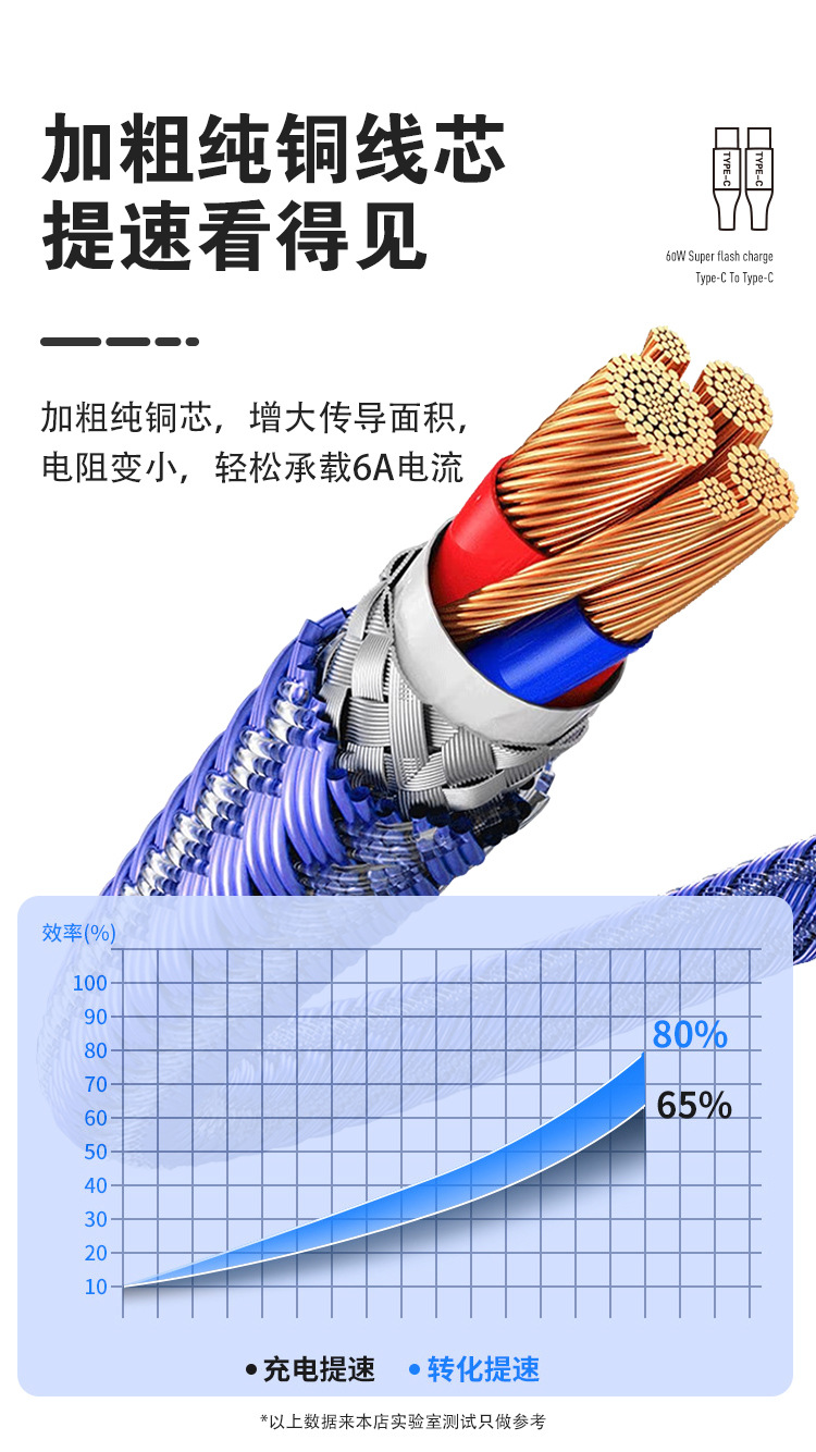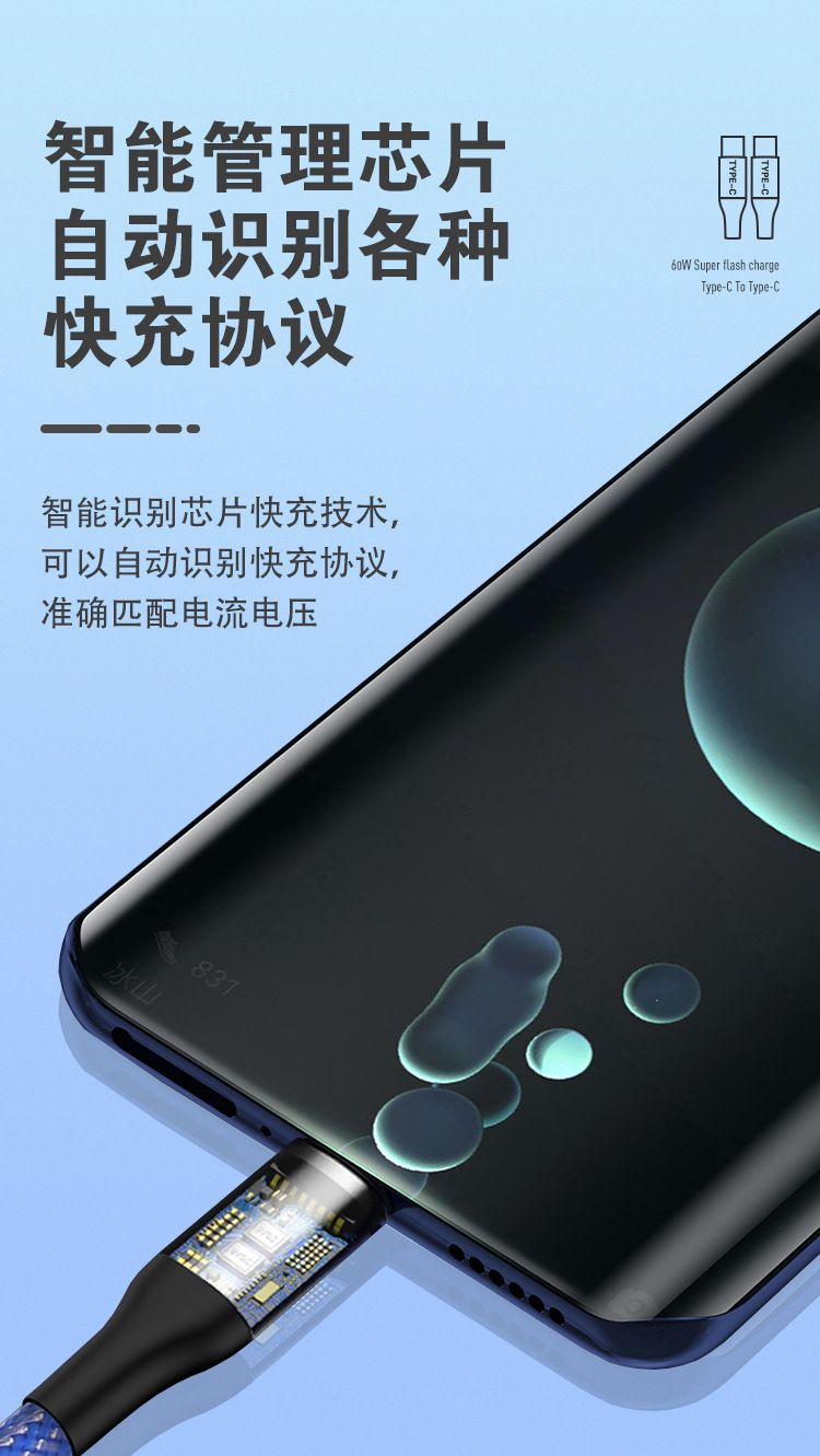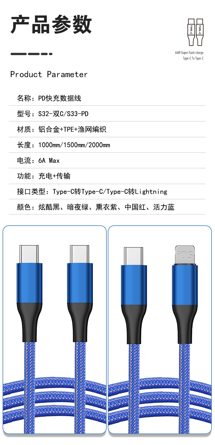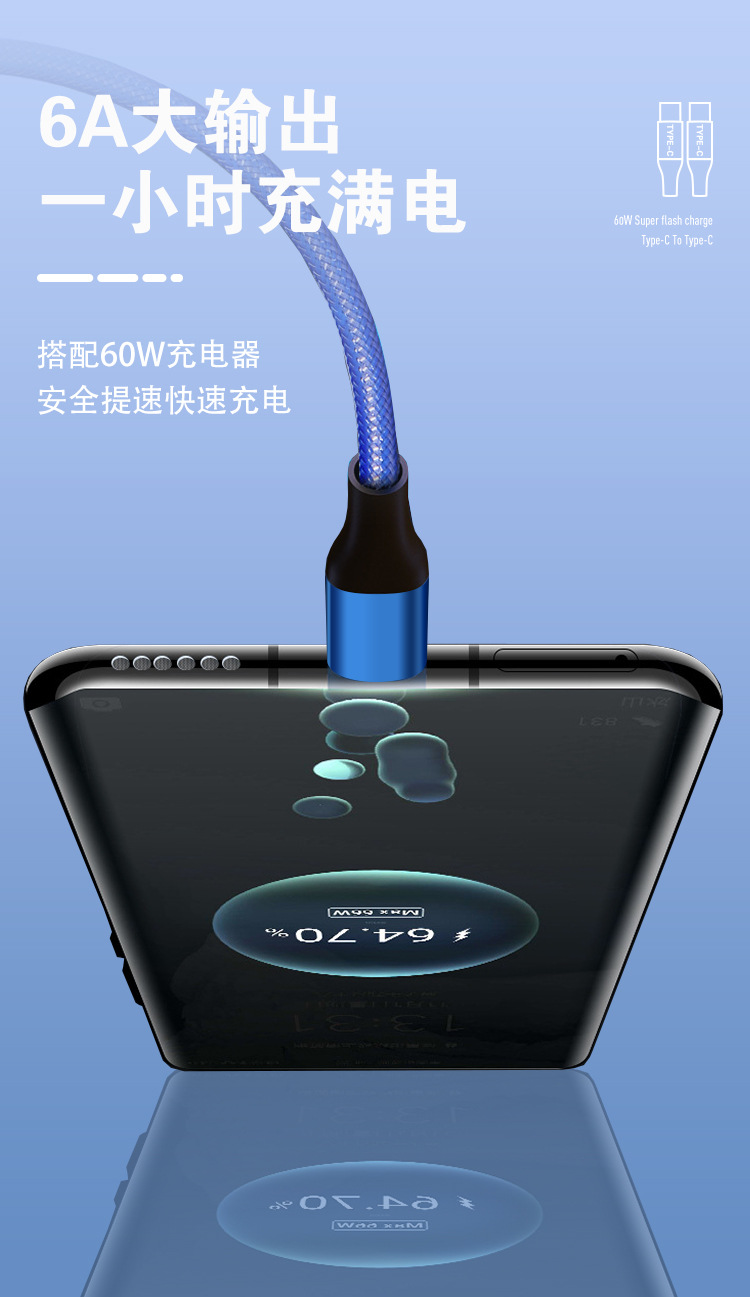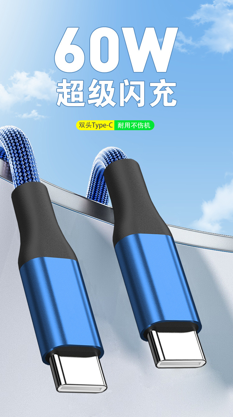 Apple Huawei TYPE-C 단일 헤드 확장 충전 케이블에 적합한 60W 고속 충전 PD Fishnet Weaving CtoC 데이터 케이블스토어 가기