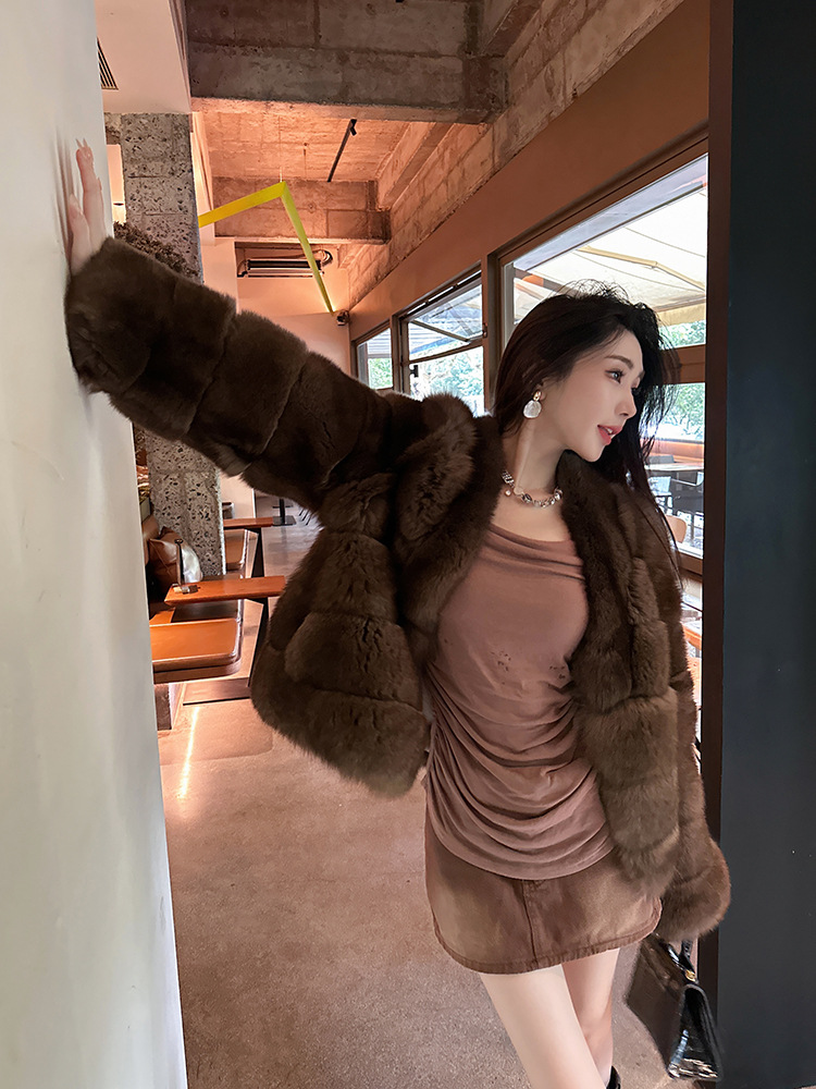 작은 보라색 "녹색 모피 세이블 가짜 폭스 모피 코트 젊은 여성의 중동 고대 전체 모피 코트스토어 가기