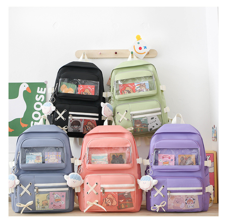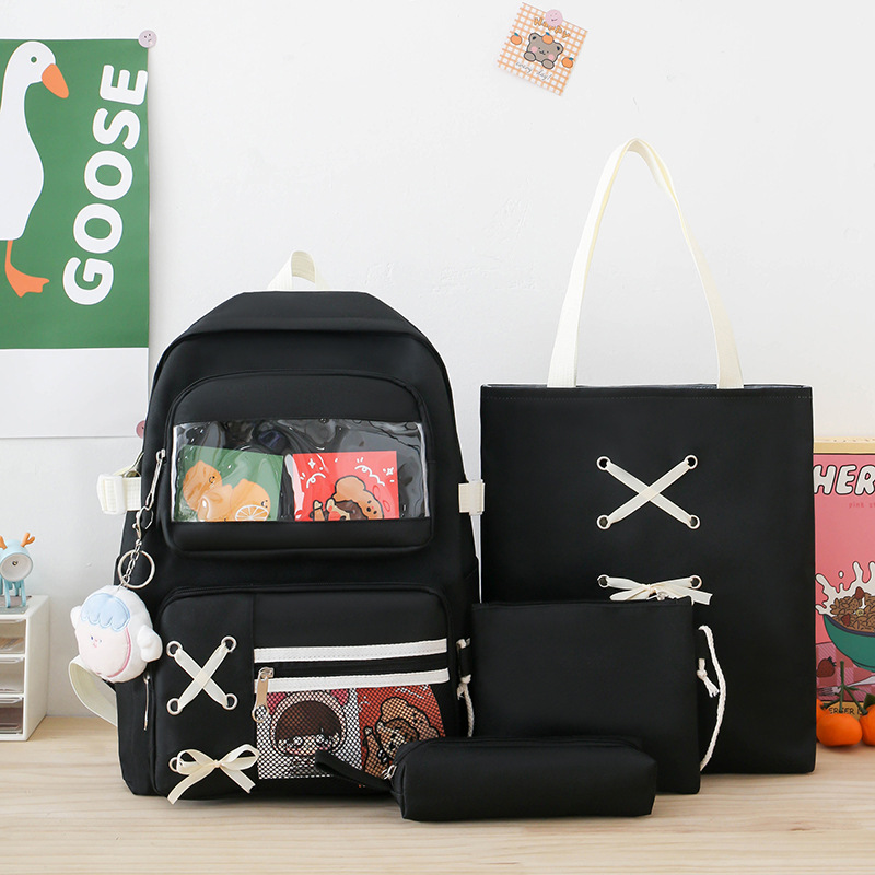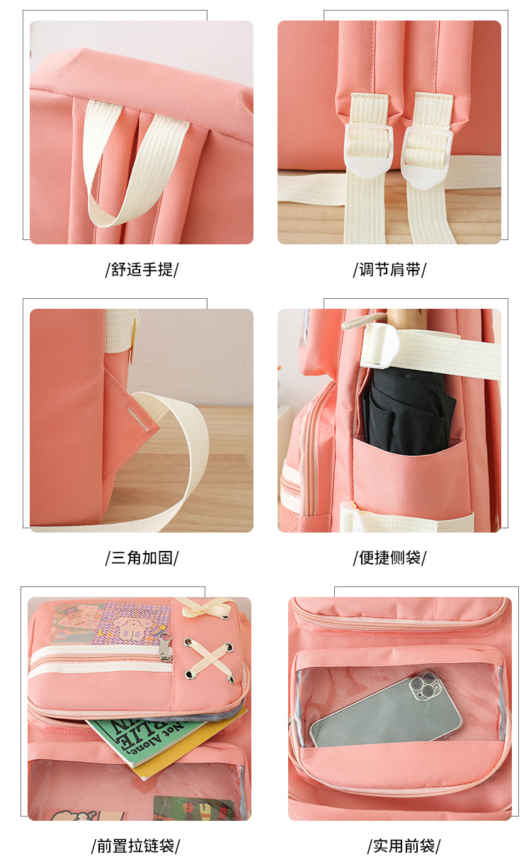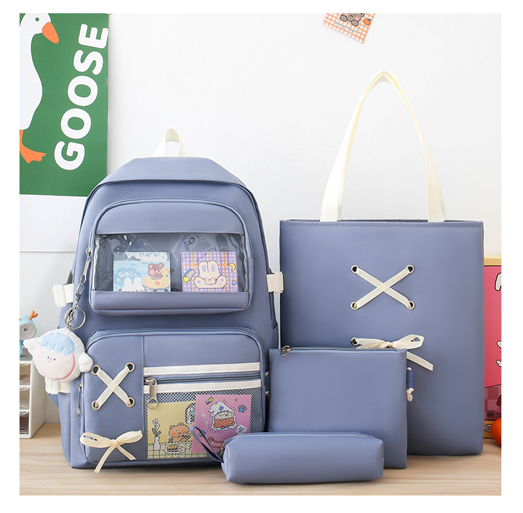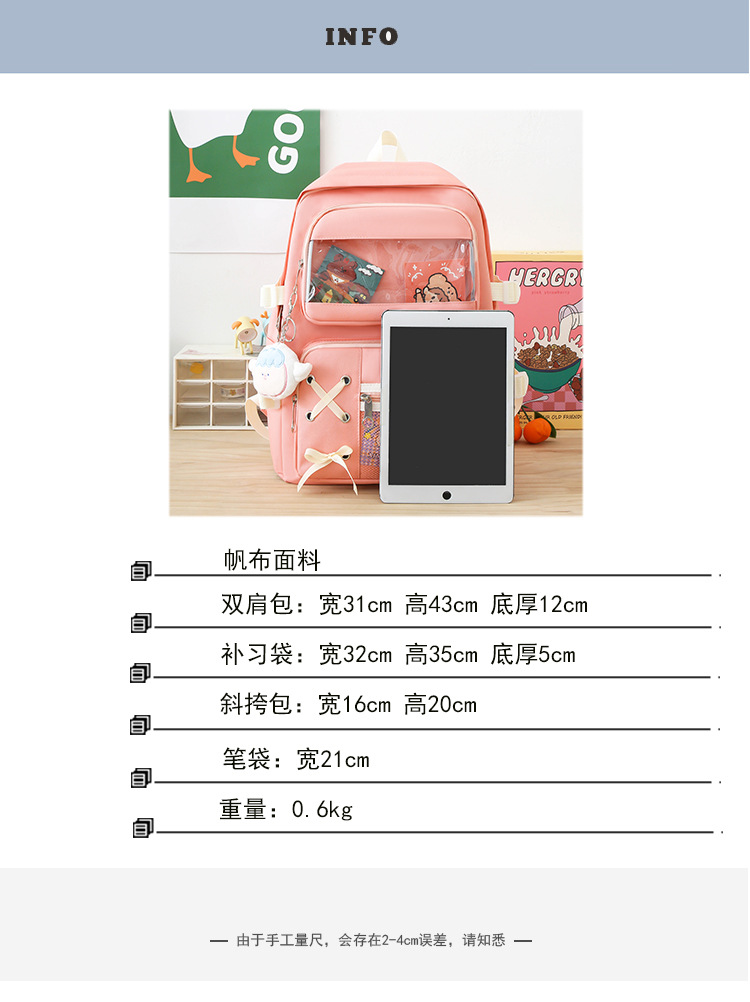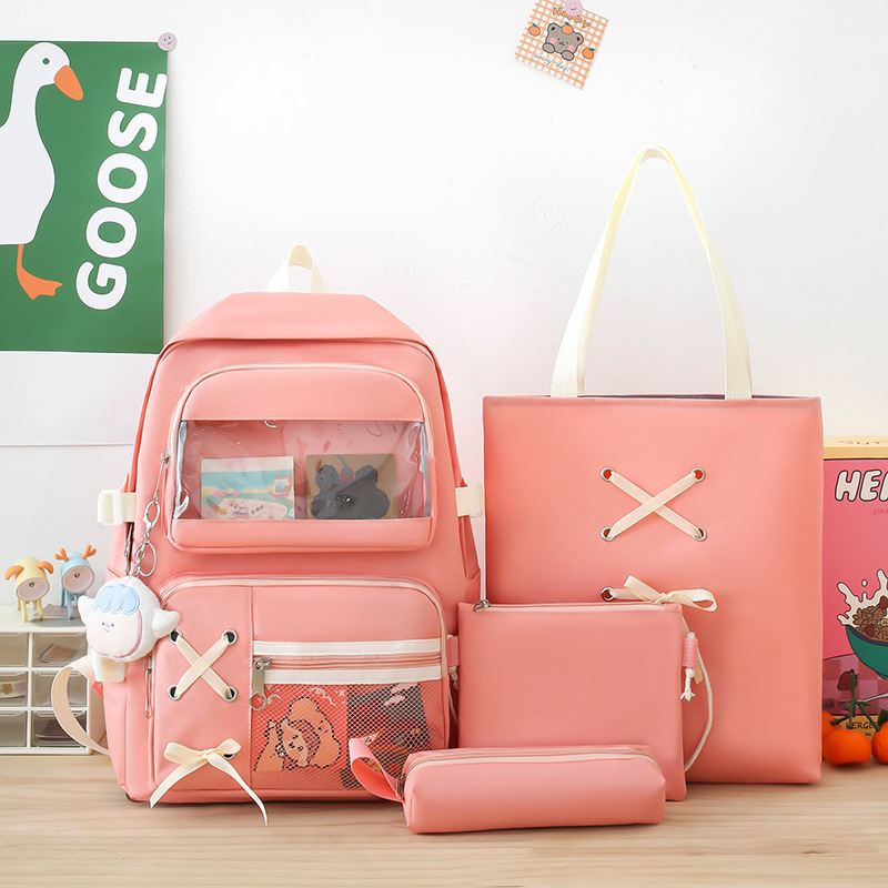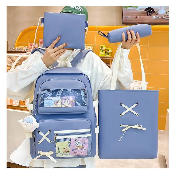새로운 학생 가방 멀티 피스 세트 한국 스타일 배낭 작은 신선한 학생 가방 대용량 캠퍼스 배낭 가방 여성