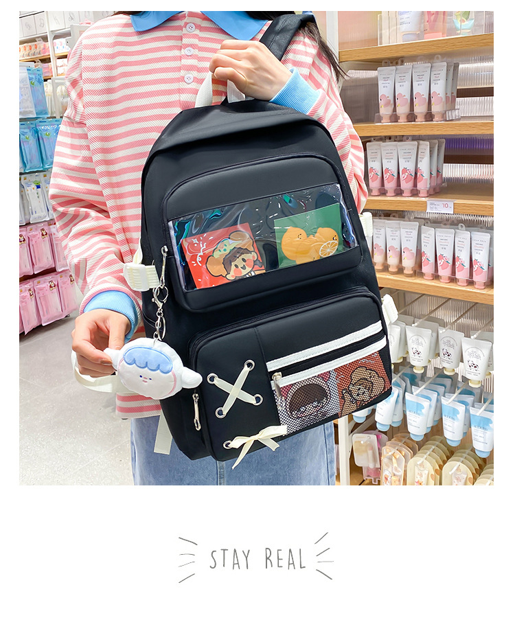 새로운 학생 가방 멀티 피스 세트 한국 스타일 배낭 작은 신선한 학생 가방 대용량 캠퍼스 배낭 가방 여성스토어 가기