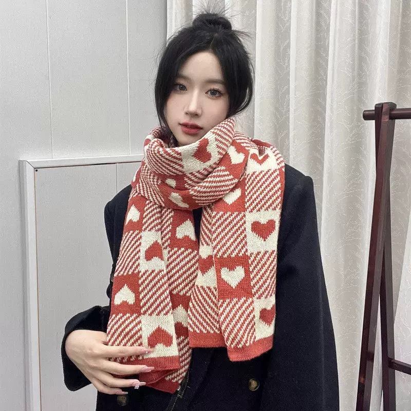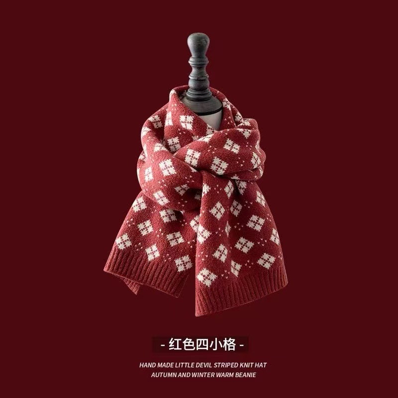 홀리데이 레드 니트 크리스마스 스카프 한국식 캐시미어 엘크 스카프 따뜻한 겨울복 커플의 크리스마스 목도리