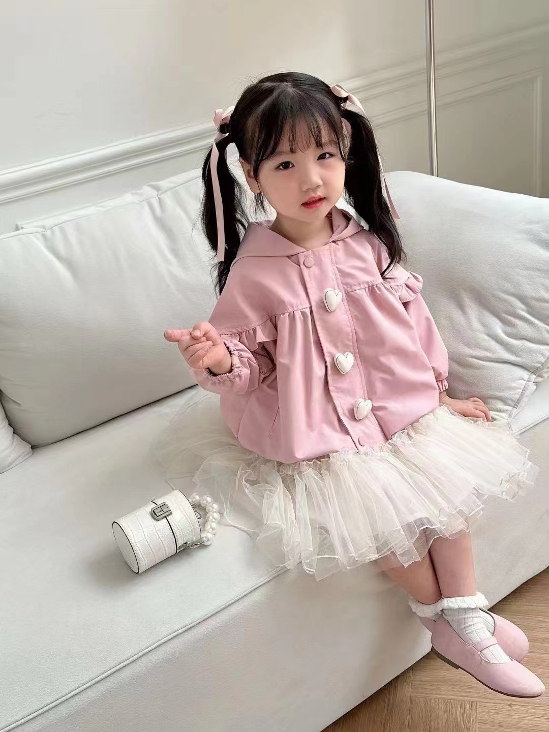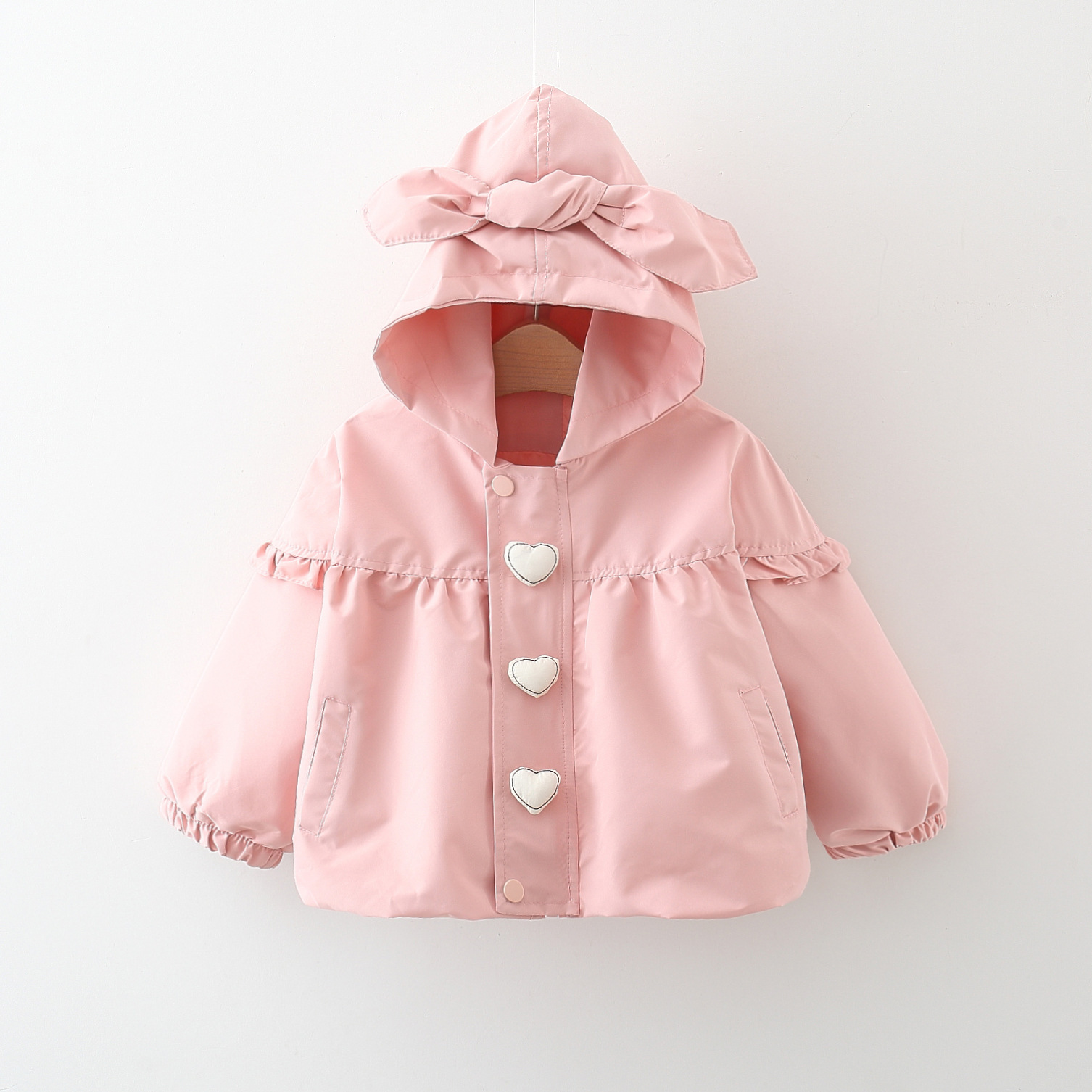 24 새로운 소녀의 봄과 가을 코트 어린이 후드 탑 어린이 인터넷-유명한 윈드 브레이커 서양식 러브 재킷스토어 가기