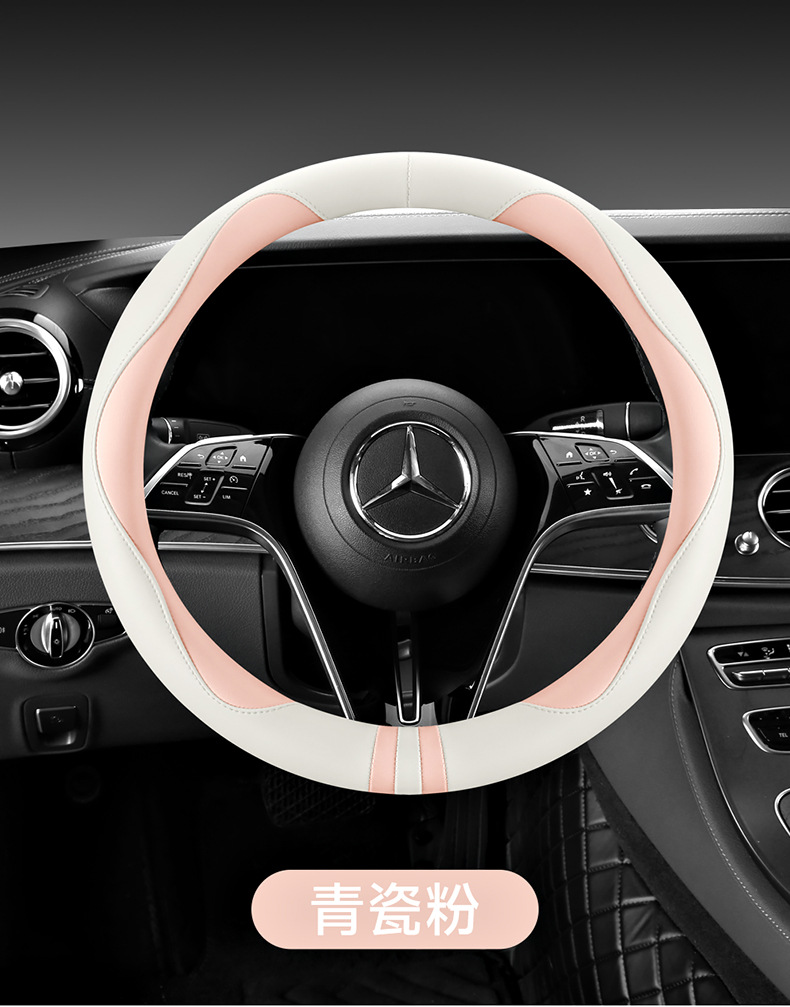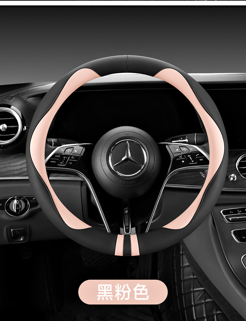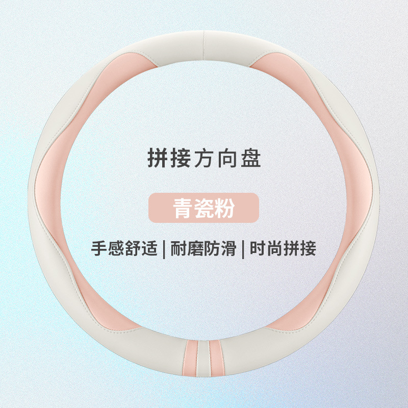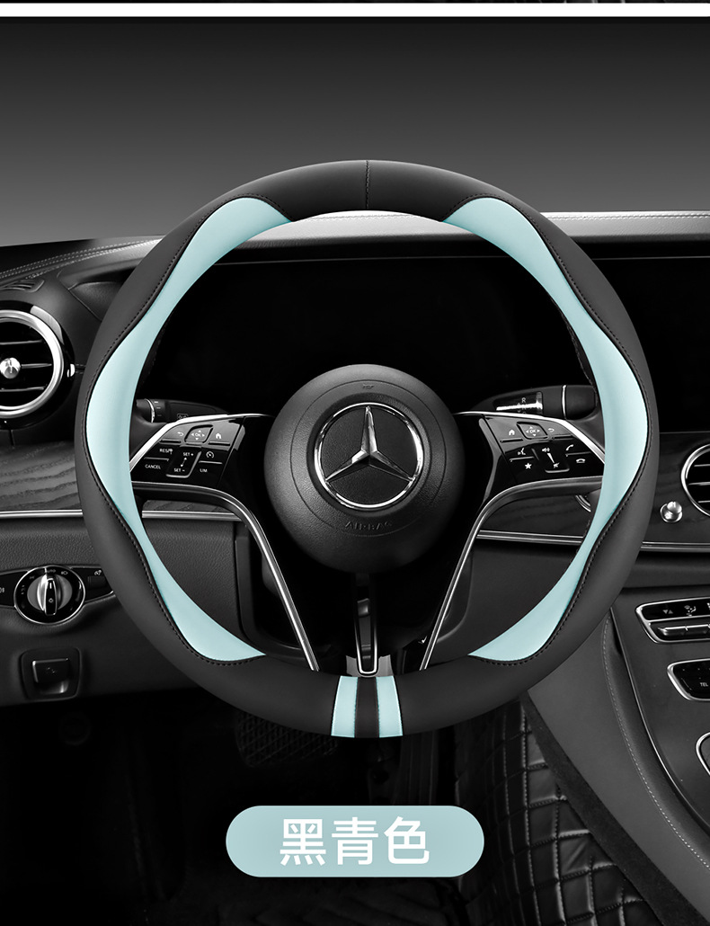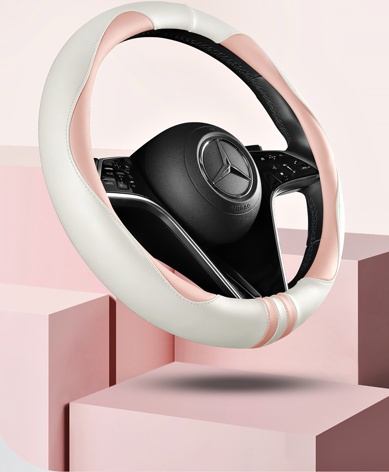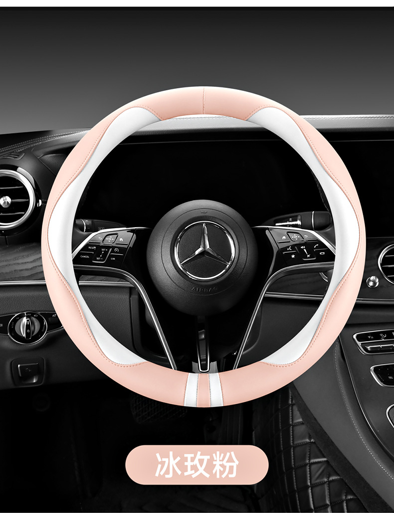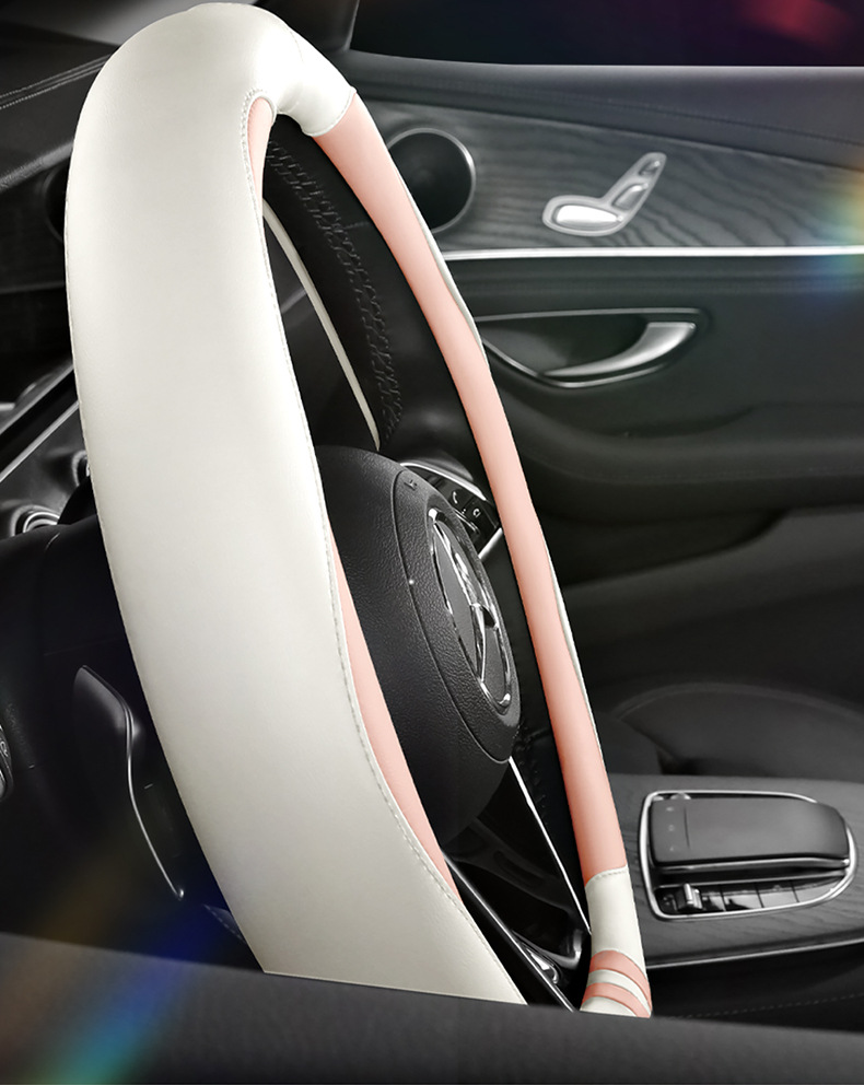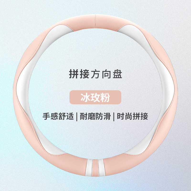 모든 계절을 청소하기 쉬운 자동차 스티어링 휠 커버 비 슬립 핸들 커버 가죽 여성 유니버설 라운드 D 자형 스티어링 휠 커버