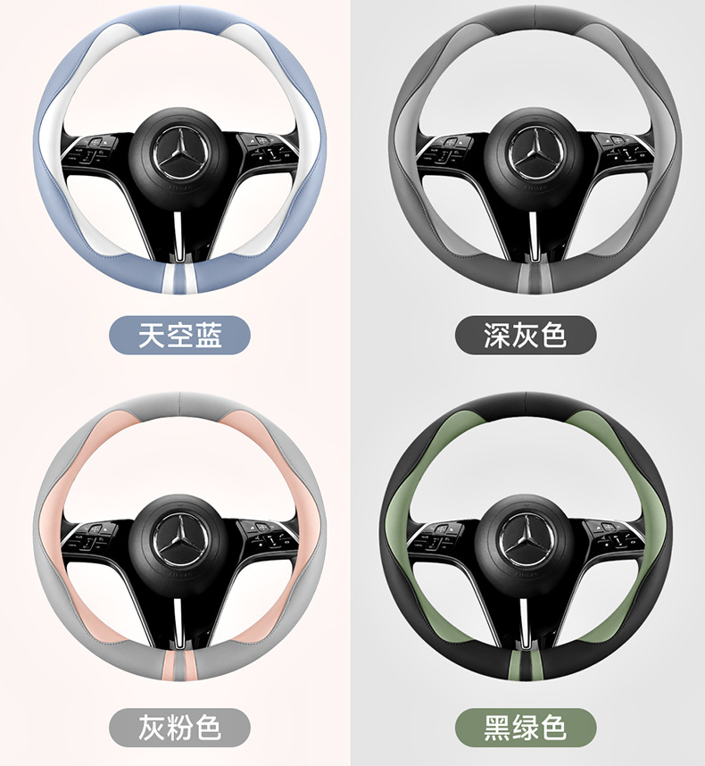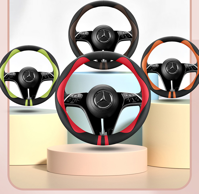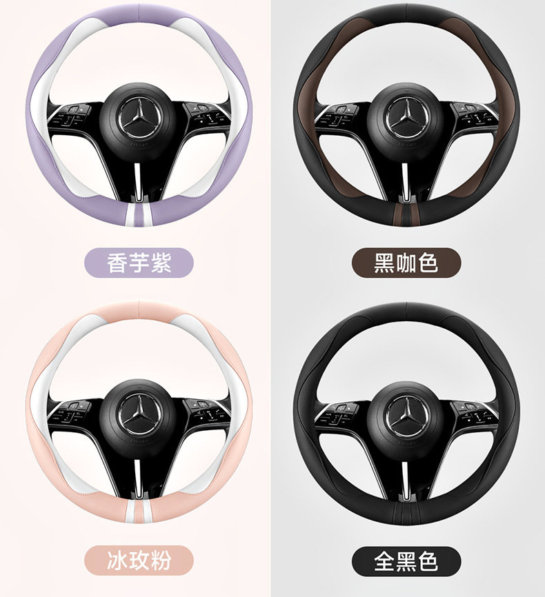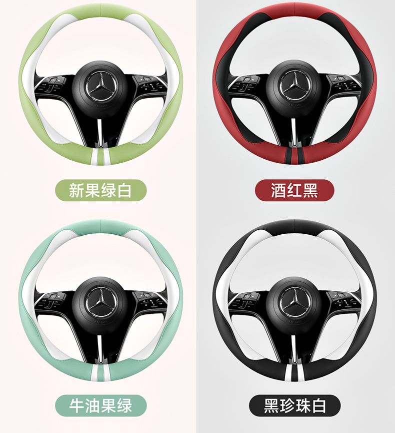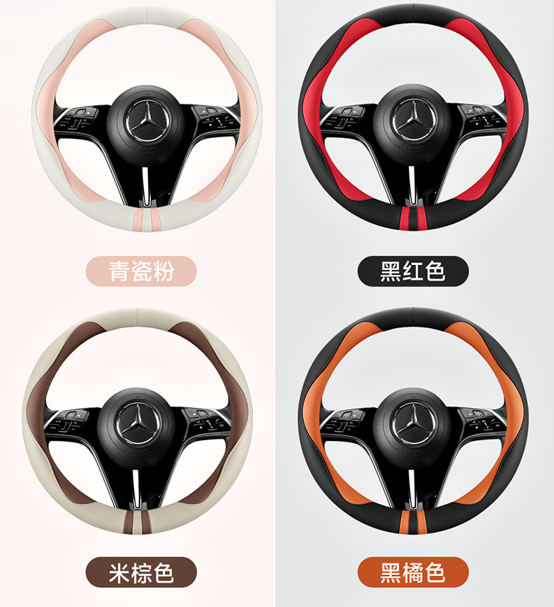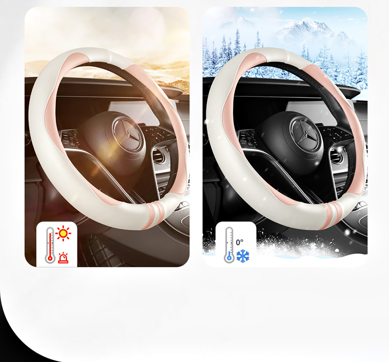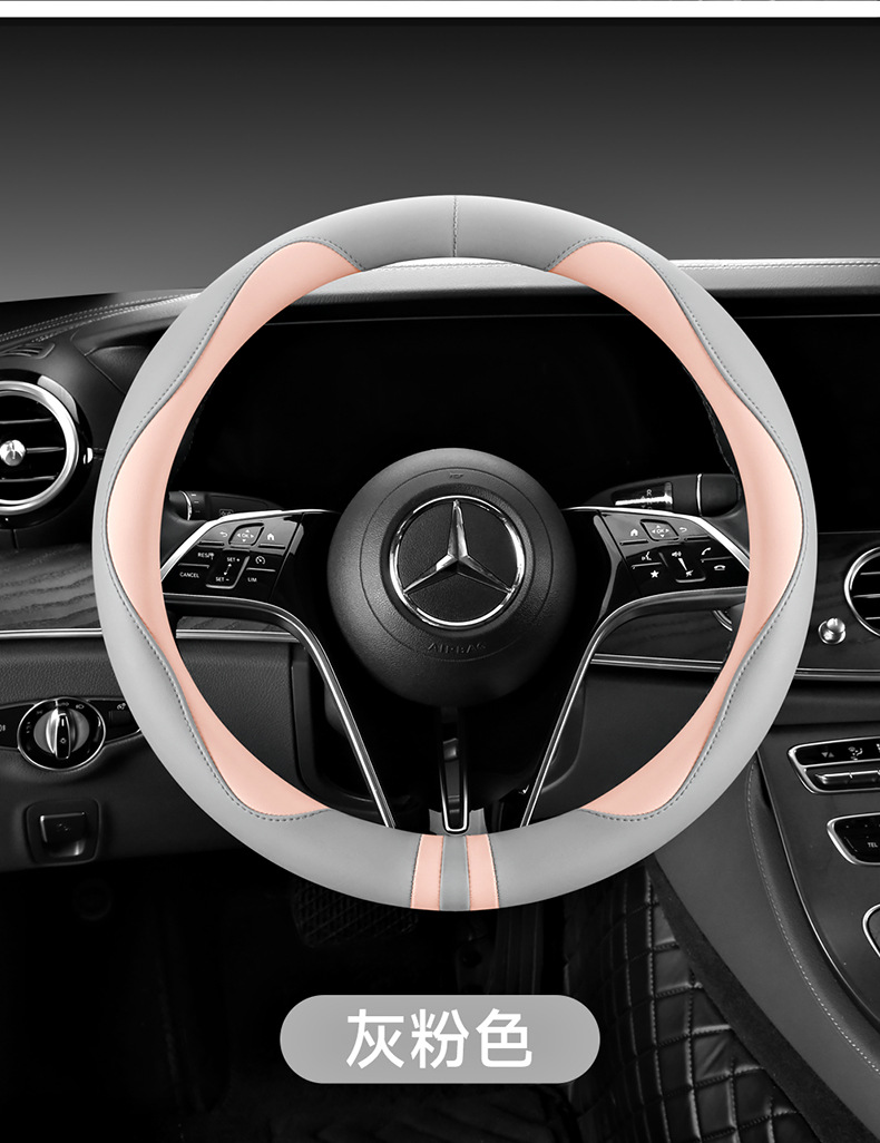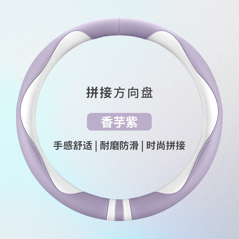 모든 계절을 청소하기 쉬운 자동차 스티어링 휠 커버 비 슬립 핸들 커버 가죽 여성 유니버설 라운드 D 자형 스티어링 휠 커버