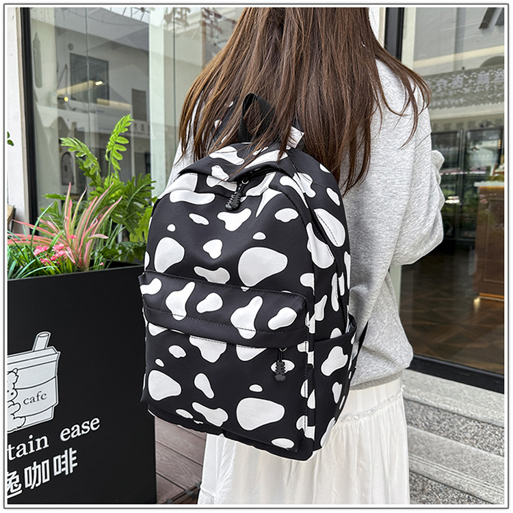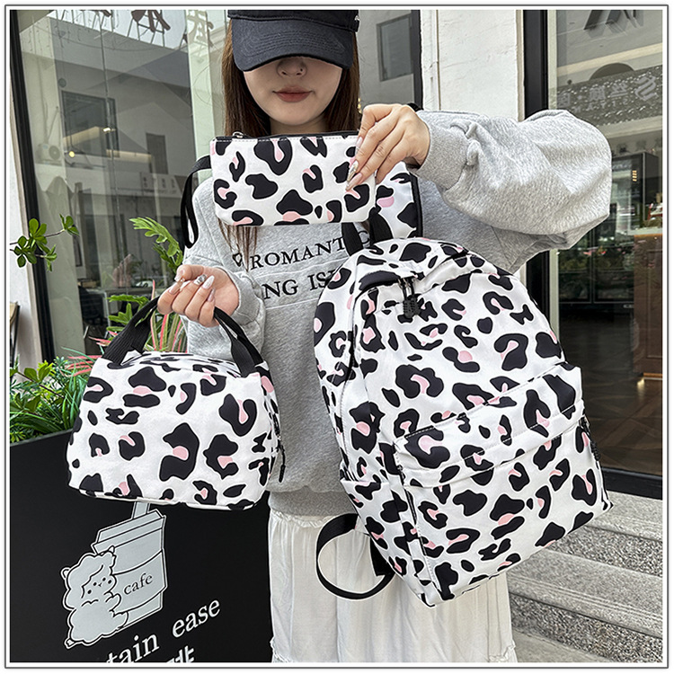 대용량 배낭 젖소 패턴 열 보존 가방 유행 소녀의 한국식 3 피스 세트 대학생 학교 가방 여행 배낭스토어 가기