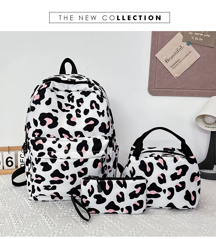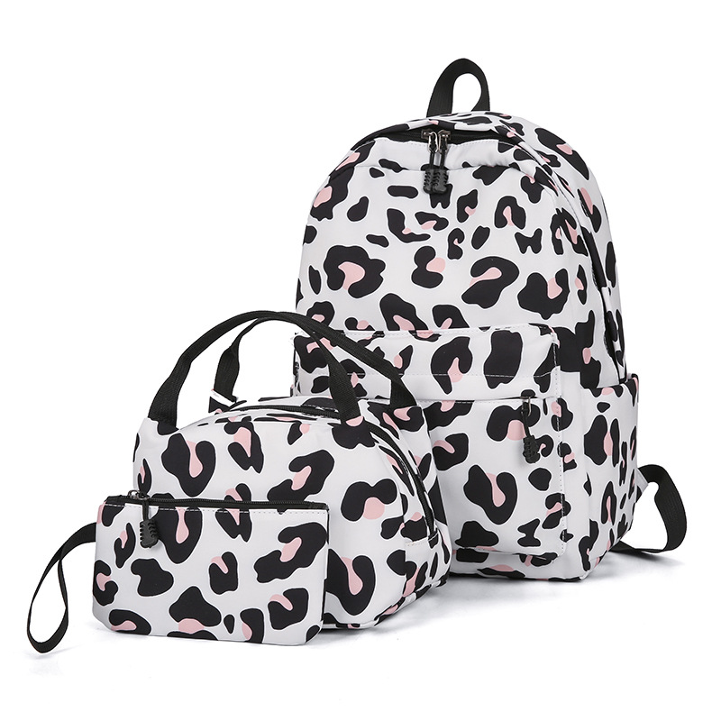 대용량 배낭 젖소 패턴 열 보존 가방 유행 소녀의 한국식 3 피스 세트 대학생 학교 가방 여행 배낭