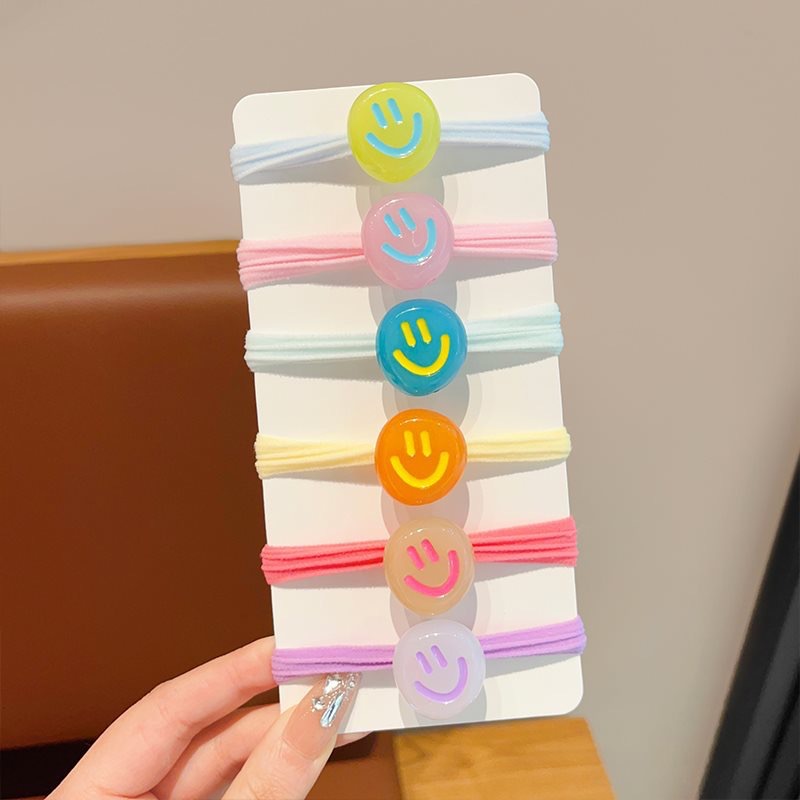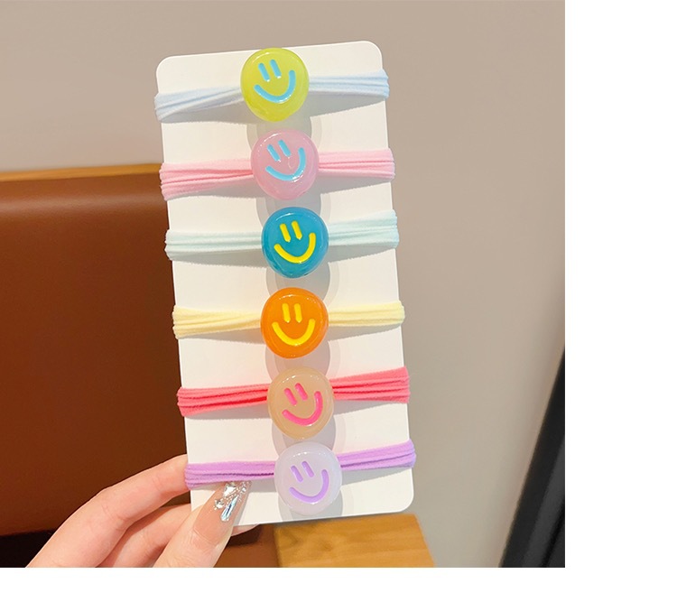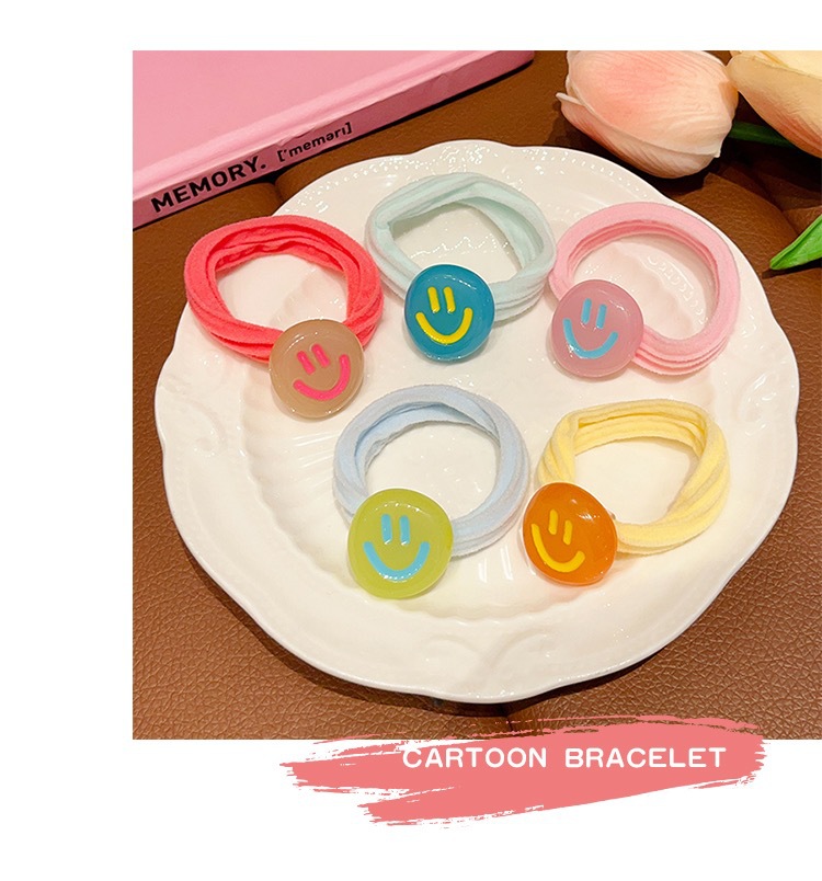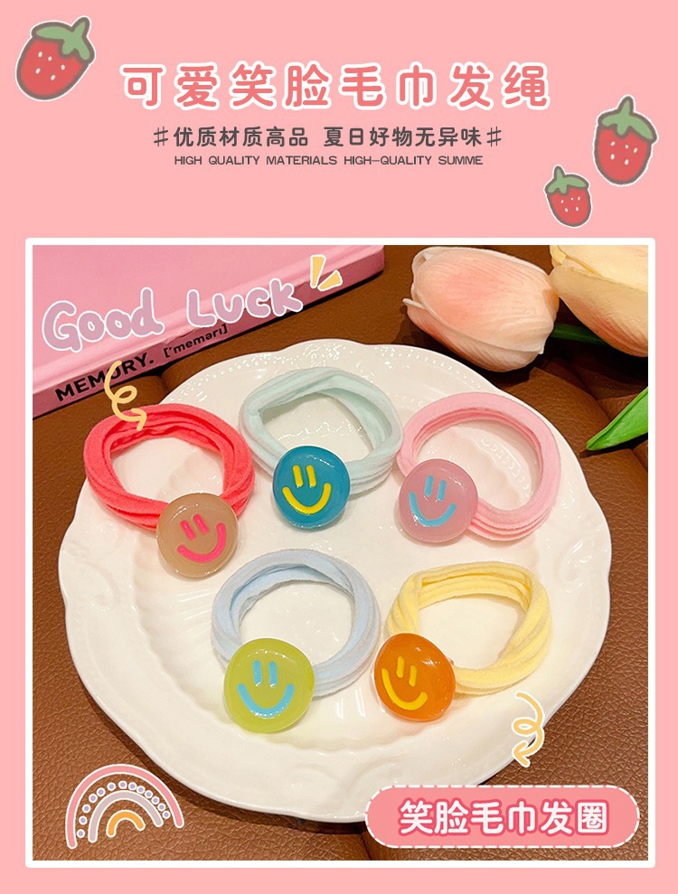 달콤한 미소 얼굴 수건 반지는 머리를 다치게하지 않습니다 높은 탄성 헤어 로프 헤어 반지 헤어 스트랩 소녀 캔디 헤어 로프 헤어 액세서리스토어 가기