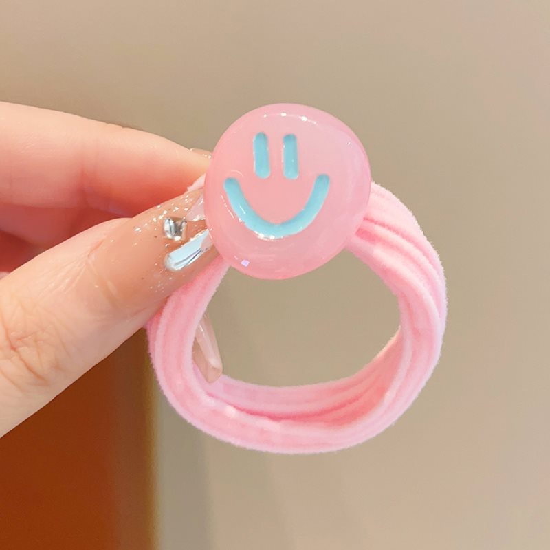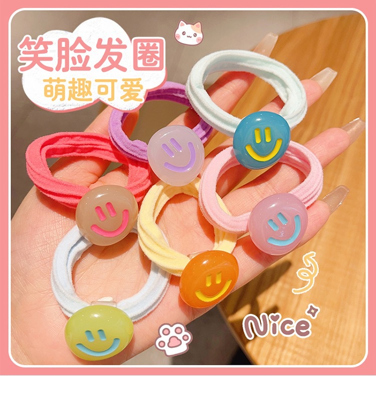 달콤한 미소 얼굴 수건 반지는 머리를 다치게하지 않습니다 높은 탄성 헤어 로프 헤어 반지 헤어 스트랩 소녀 캔디 헤어 로프 헤어 액세서리