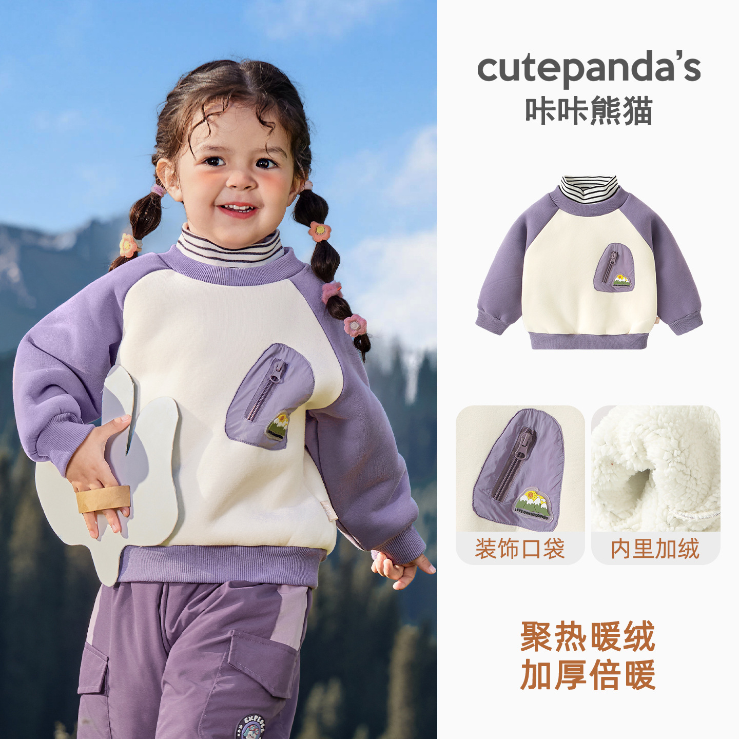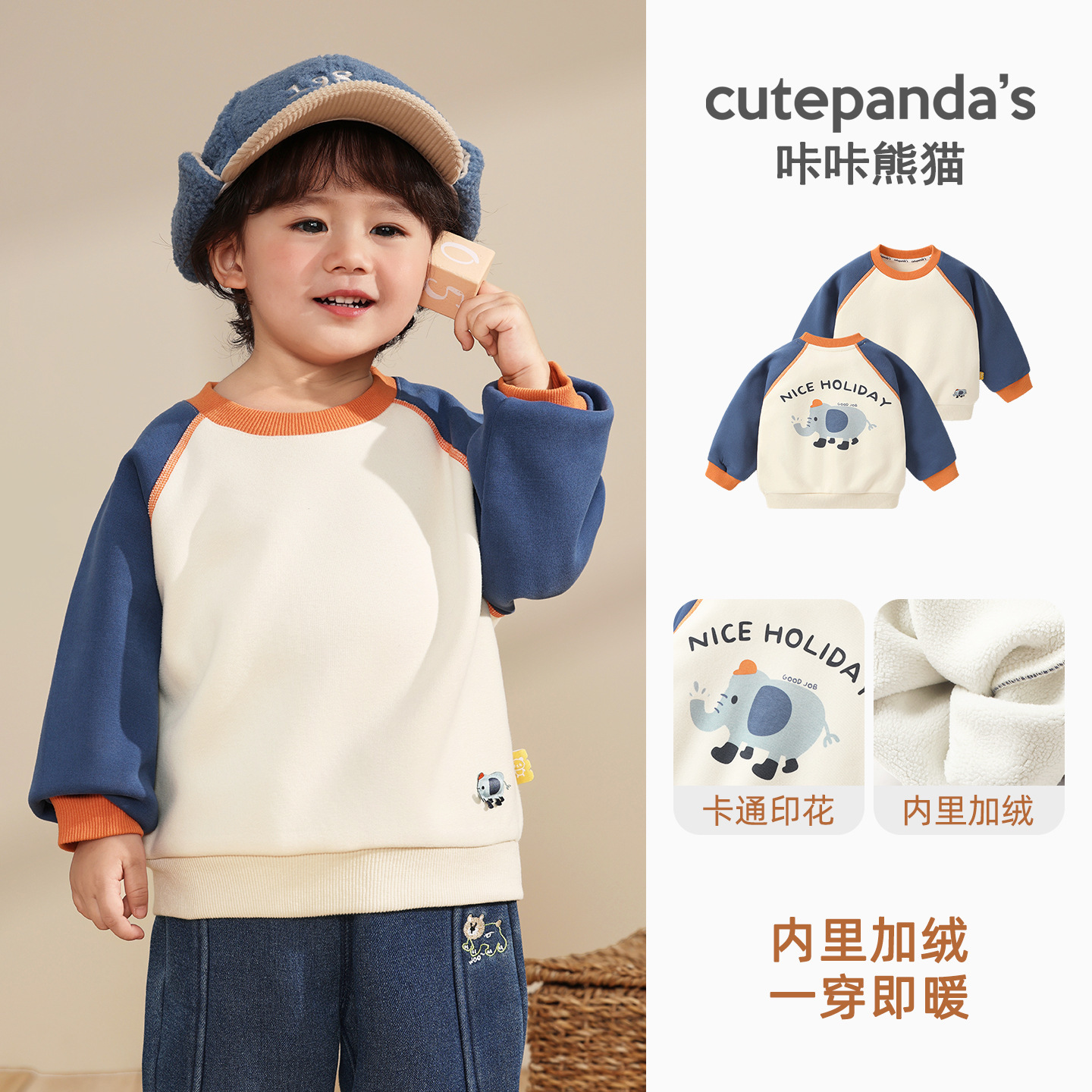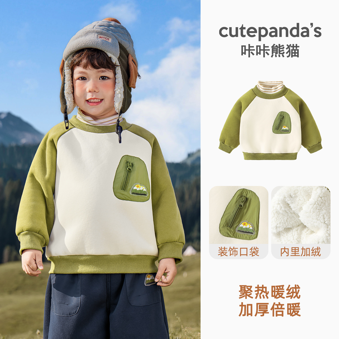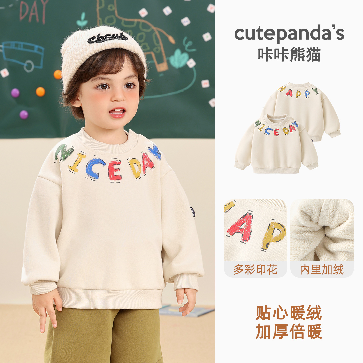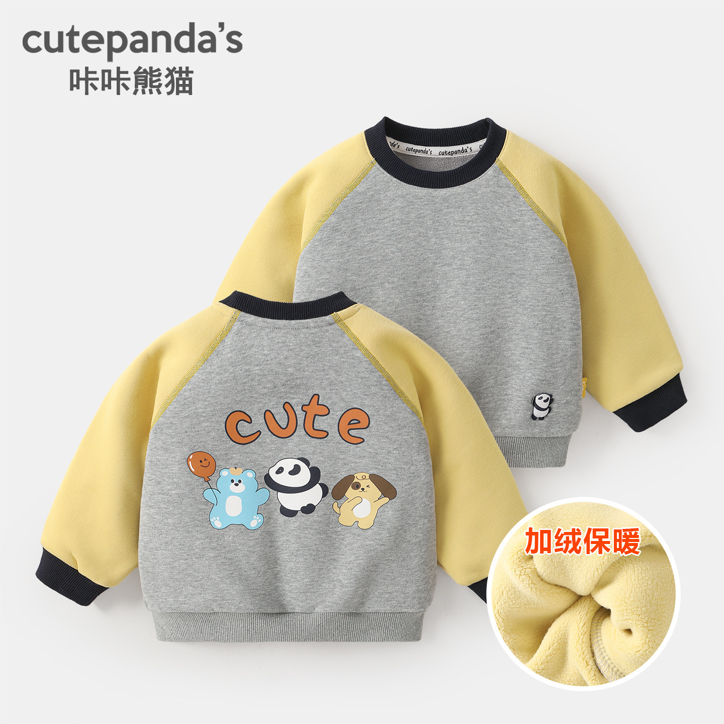 카카 팬더 아기 옷 어린이 캐주얼 라운드 넥 기모 스웨트 셔츠 겨울 옷 가을과 겨울 소년 아기 따뜻한 탑