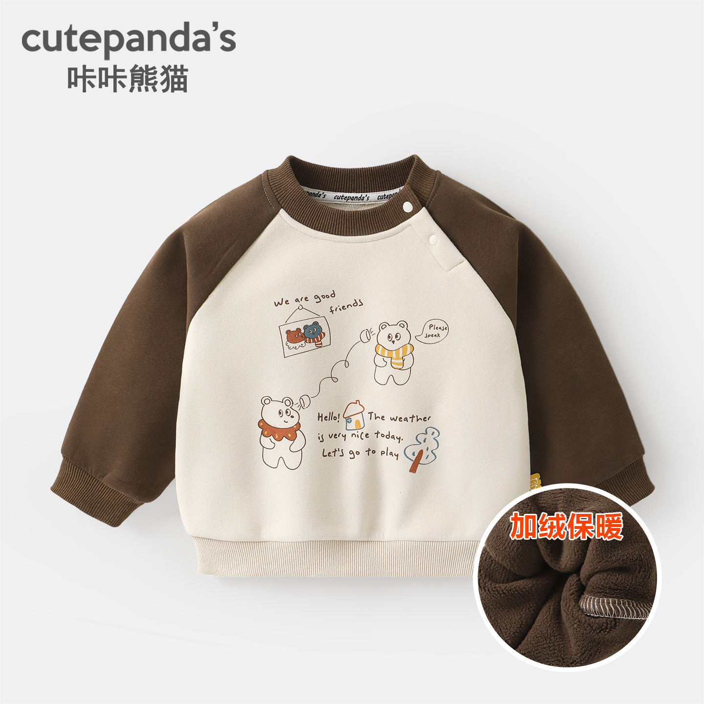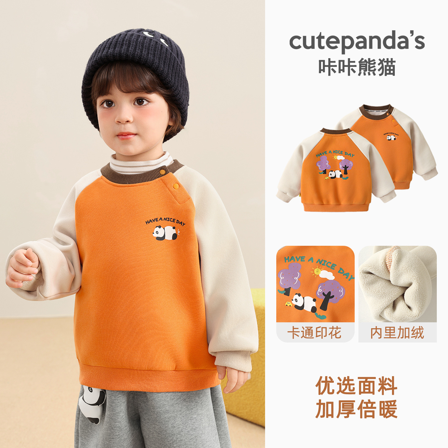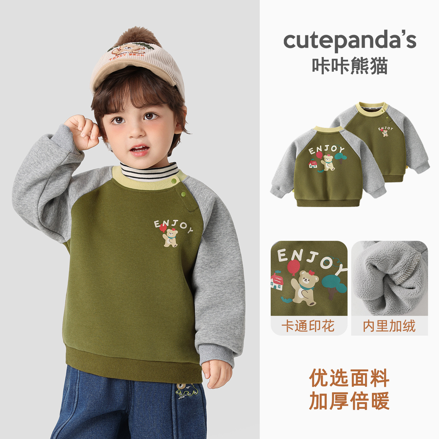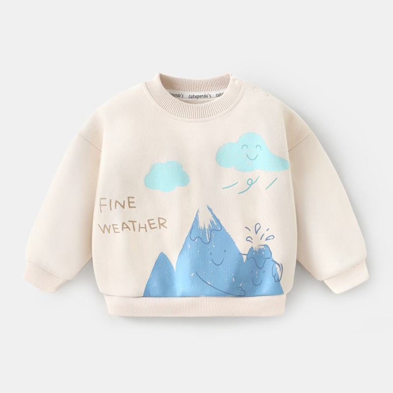 카카 팬더 아기 옷 어린이 캐주얼 라운드 넥 기모 스웨트 셔츠 겨울 옷 가을과 겨울 소년 아기 따뜻한 탑스토어 가기