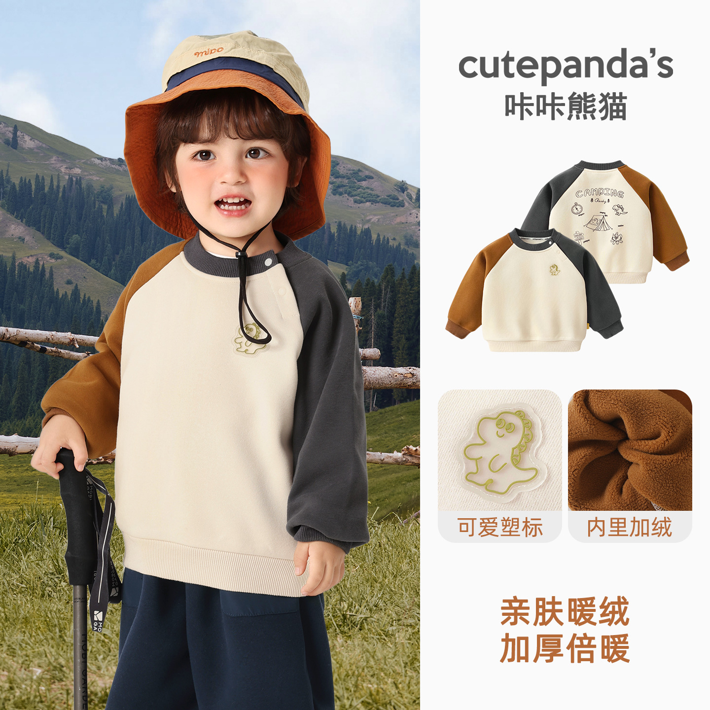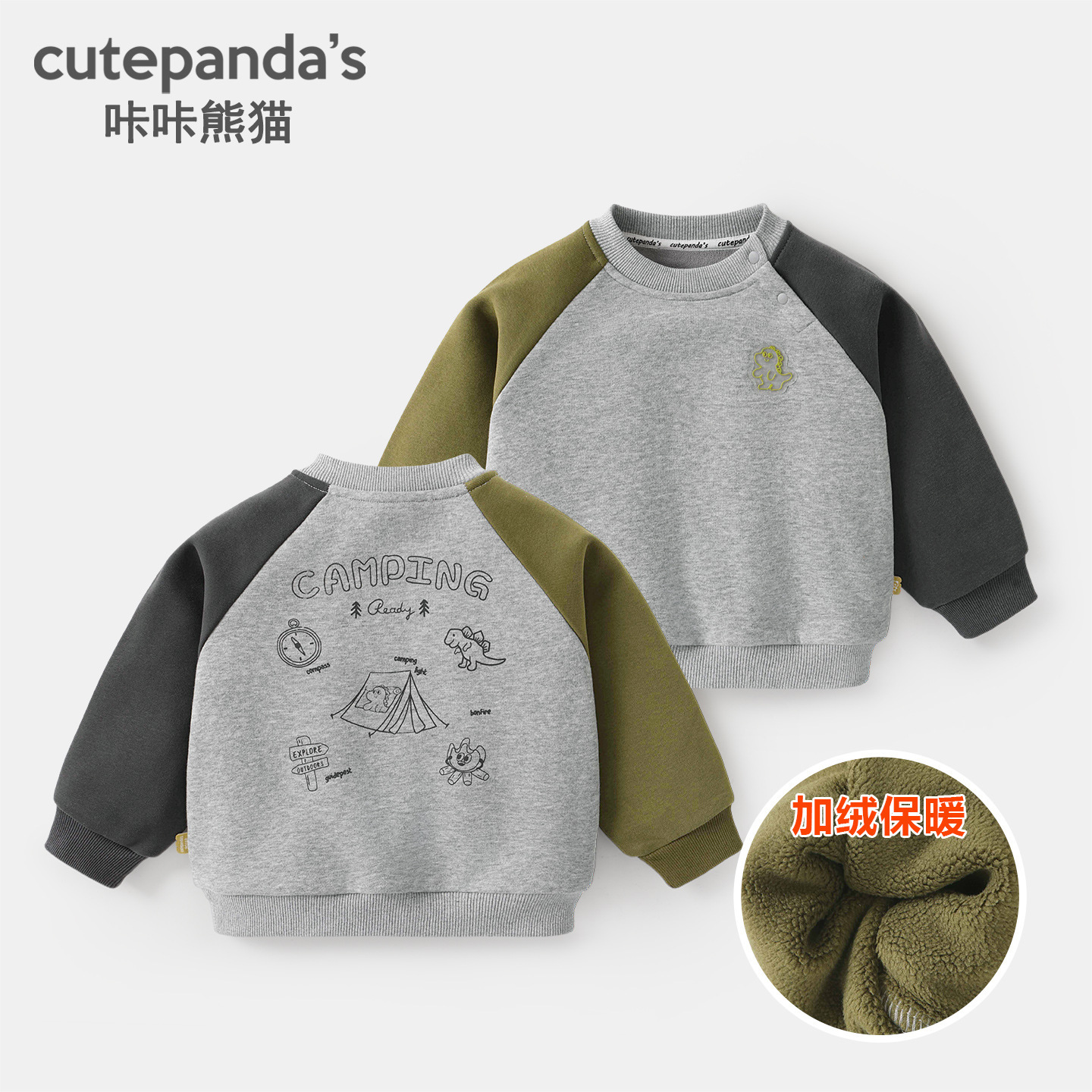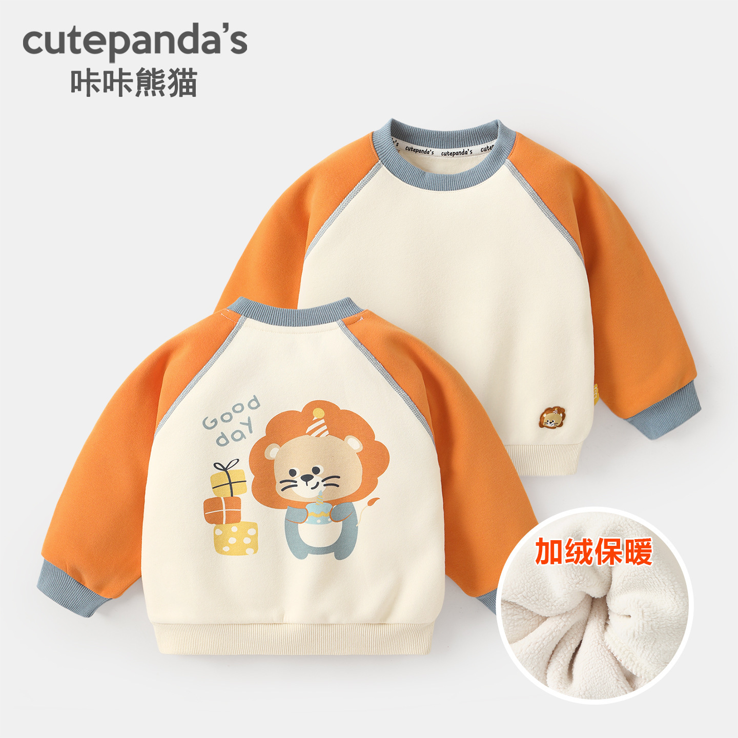 카카 팬더 아기 옷 어린이 캐주얼 라운드 넥 기모 스웨트 셔츠 겨울 옷 가을과 겨울 소년 아기 따뜻한 탑스토어 가기