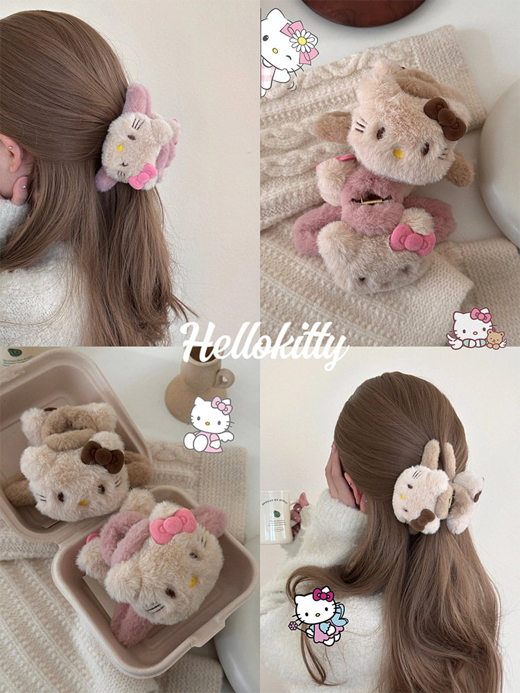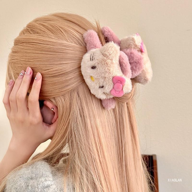 2024 새로운 귀여운 봉제 양면 kt 고양이 고양이 캐치 클립 큰 머리 상어 머리핀 여성 달콤한 만화 헤어 액세서리스토어 가기