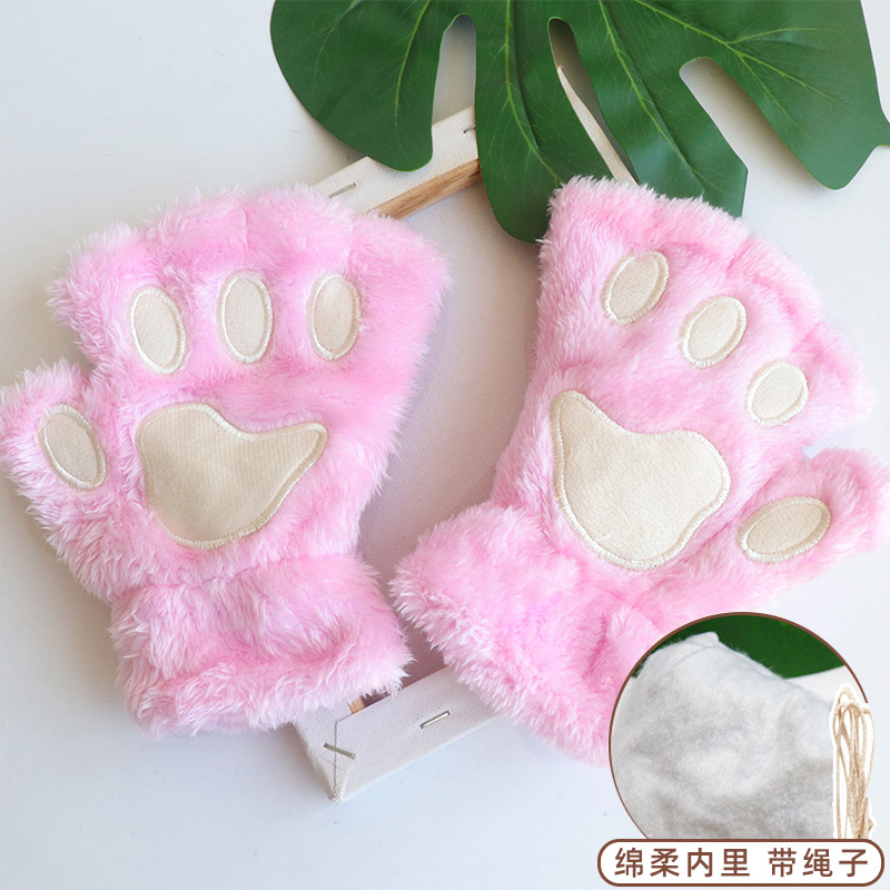 귀여운 고양이의 발톱 장갑 여성의 가을과 겨울 따뜻한 방한 봉제 반 손가락 장갑 두꺼운 기모 학생 필기 손가락 누출