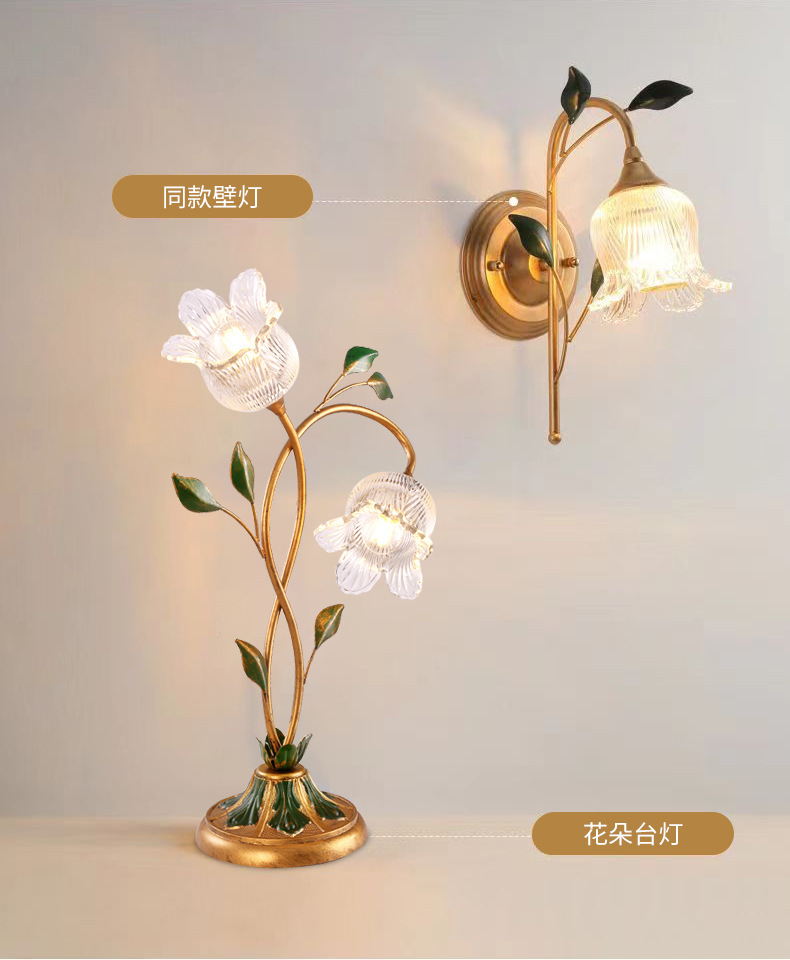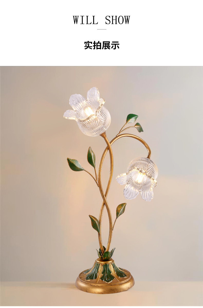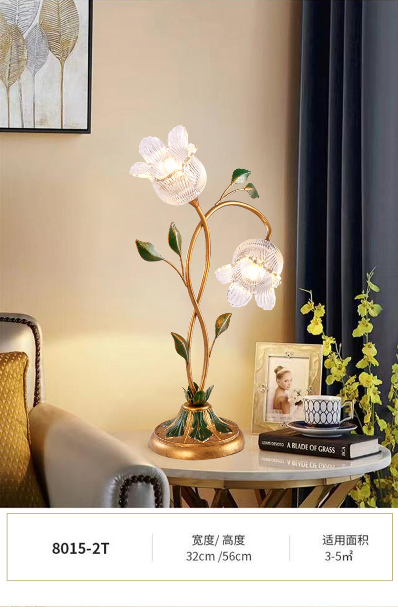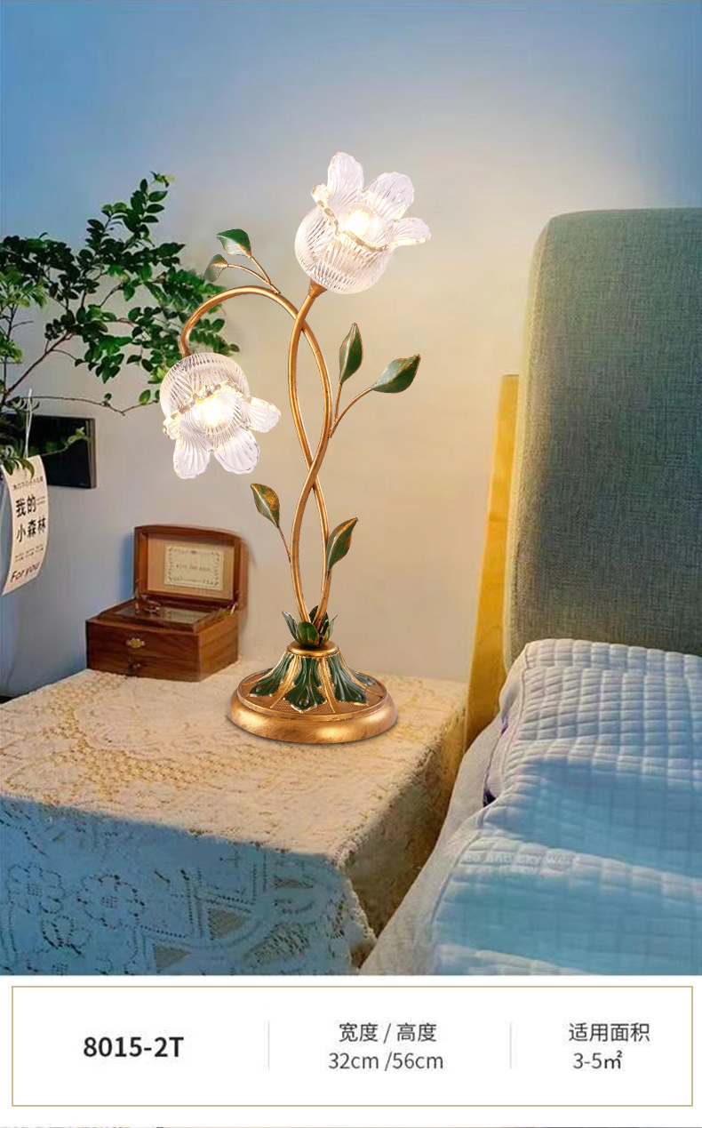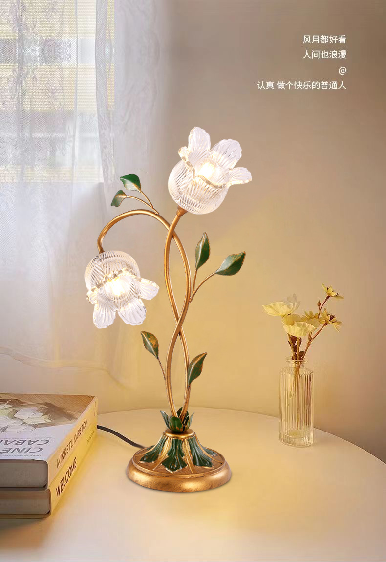 미국 목가적 인 창조적 인 꽃 장식 테이블 램프 현대 간단한 예술 침실 어린이 방 침실 테이블 램프