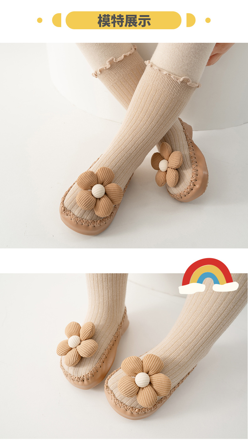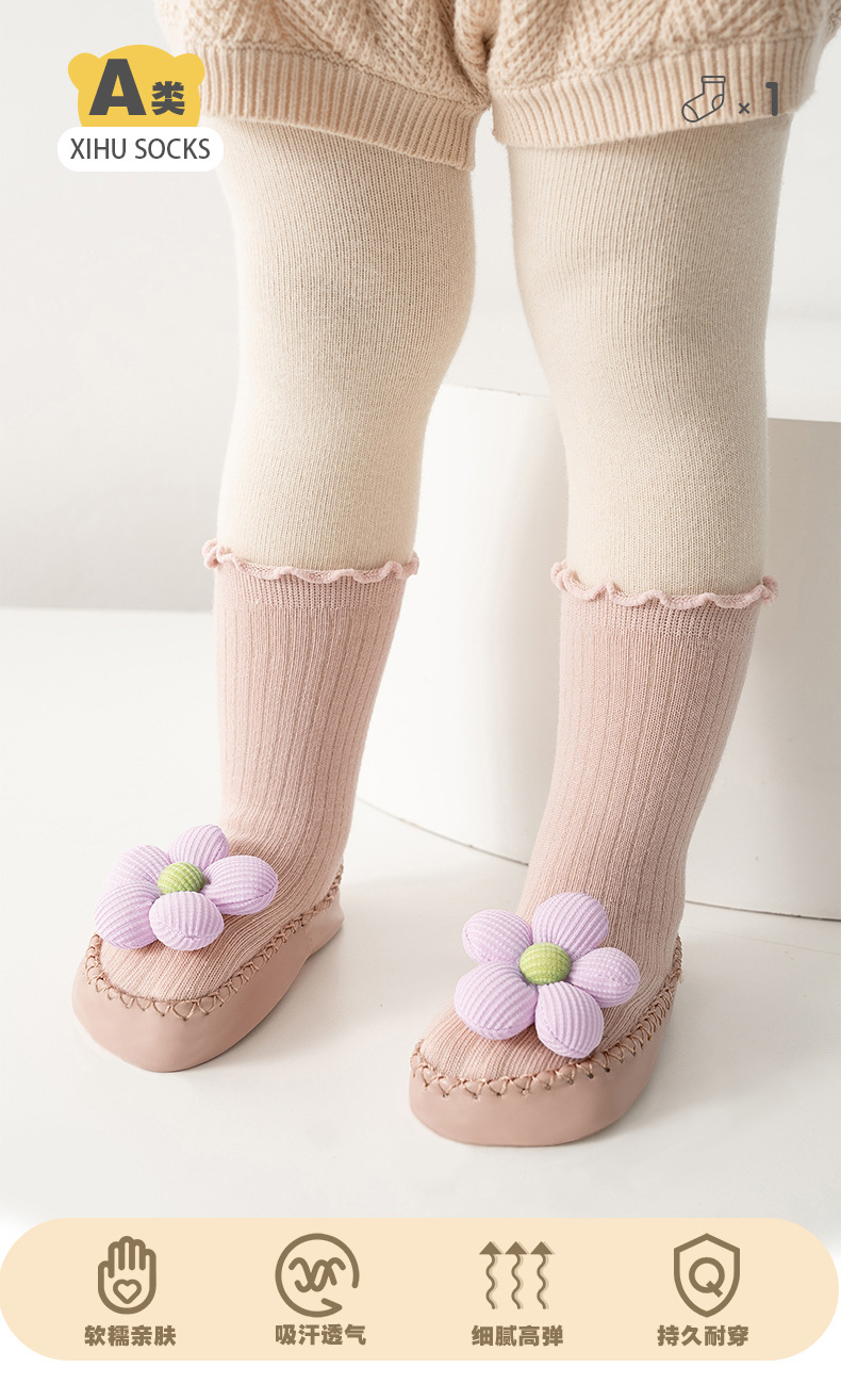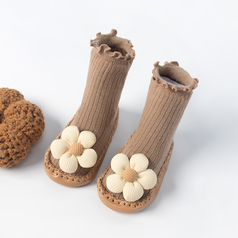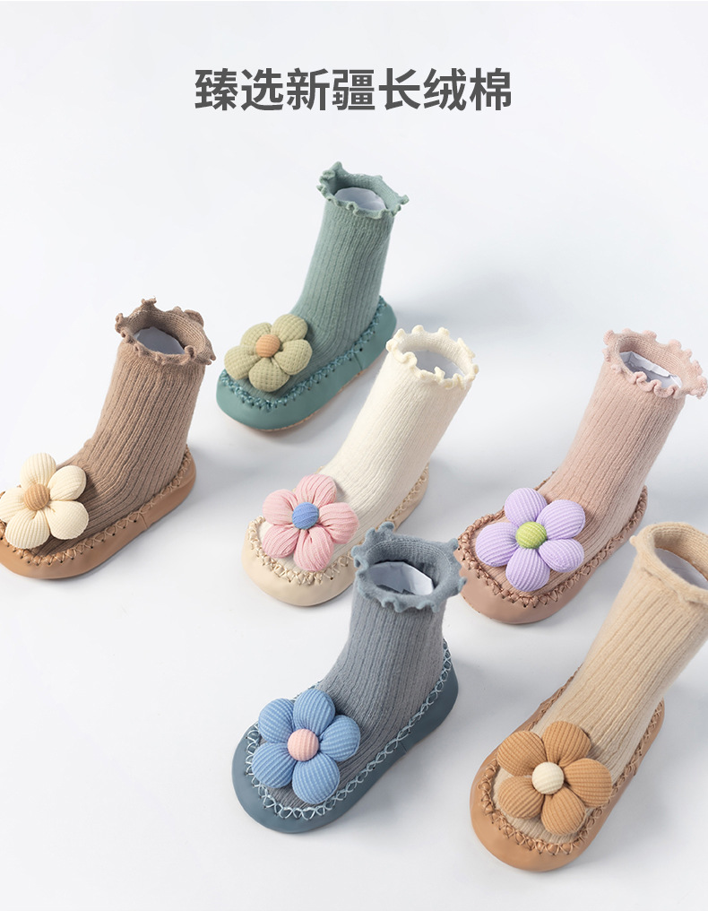 봄, 가을 아기 걸음마 신발 및 양말, 한국 스타일의 귀여운 하이탑 두꺼운 보온 바닥 양말, 미끄럼 방지 남녀 아기 바닥 신발스토어 가기