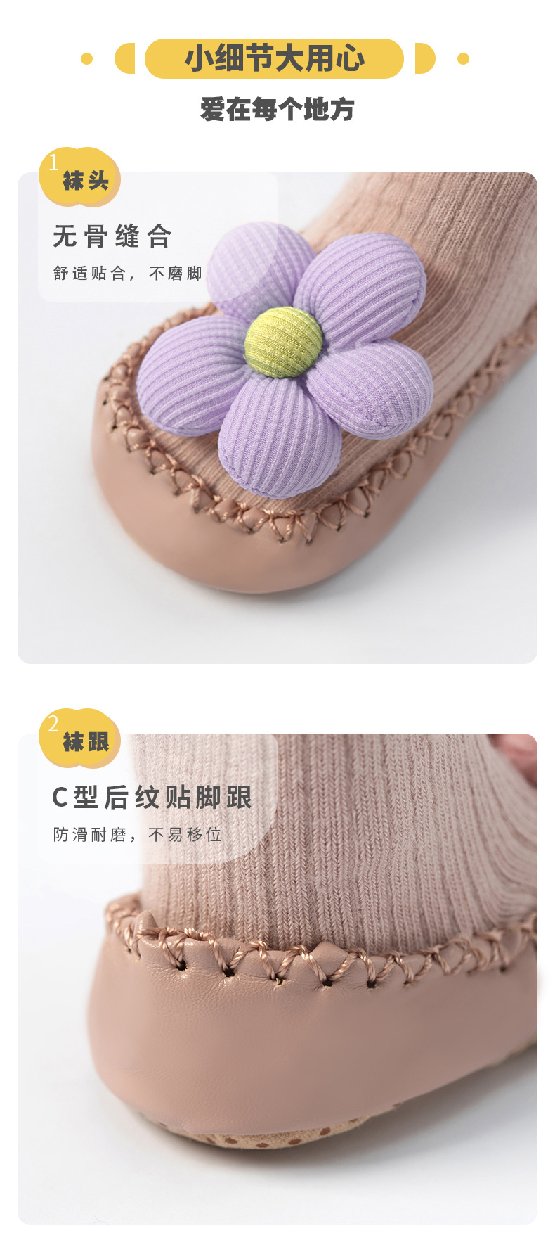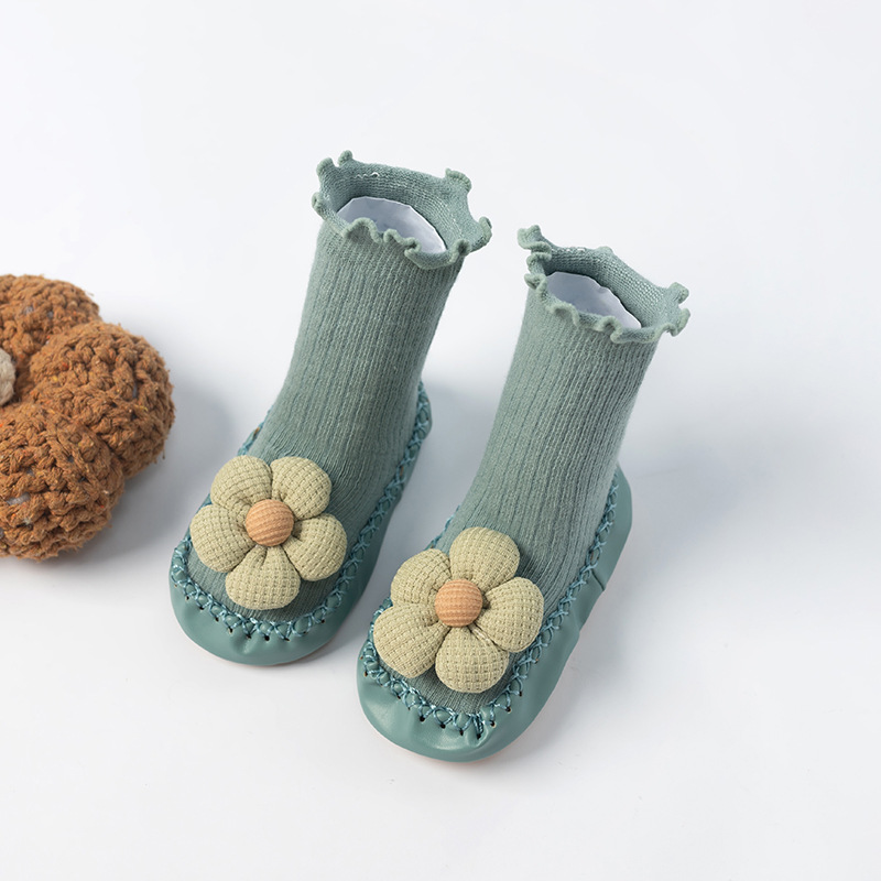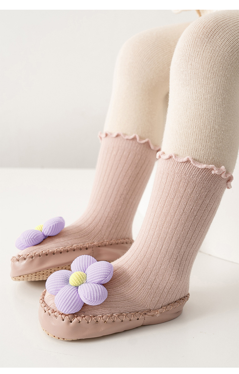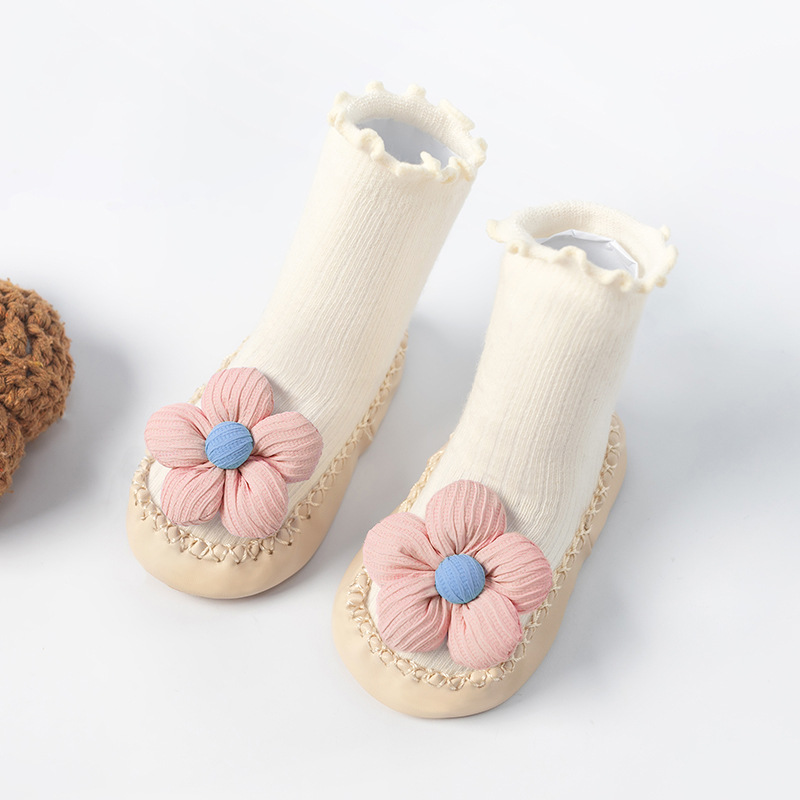 봄, 가을 아기 걸음마 신발 및 양말, 한국 스타일의 귀여운 하이탑 두꺼운 보온 바닥 양말, 미끄럼 방지 남녀 아기 바닥 신발스토어 가기
