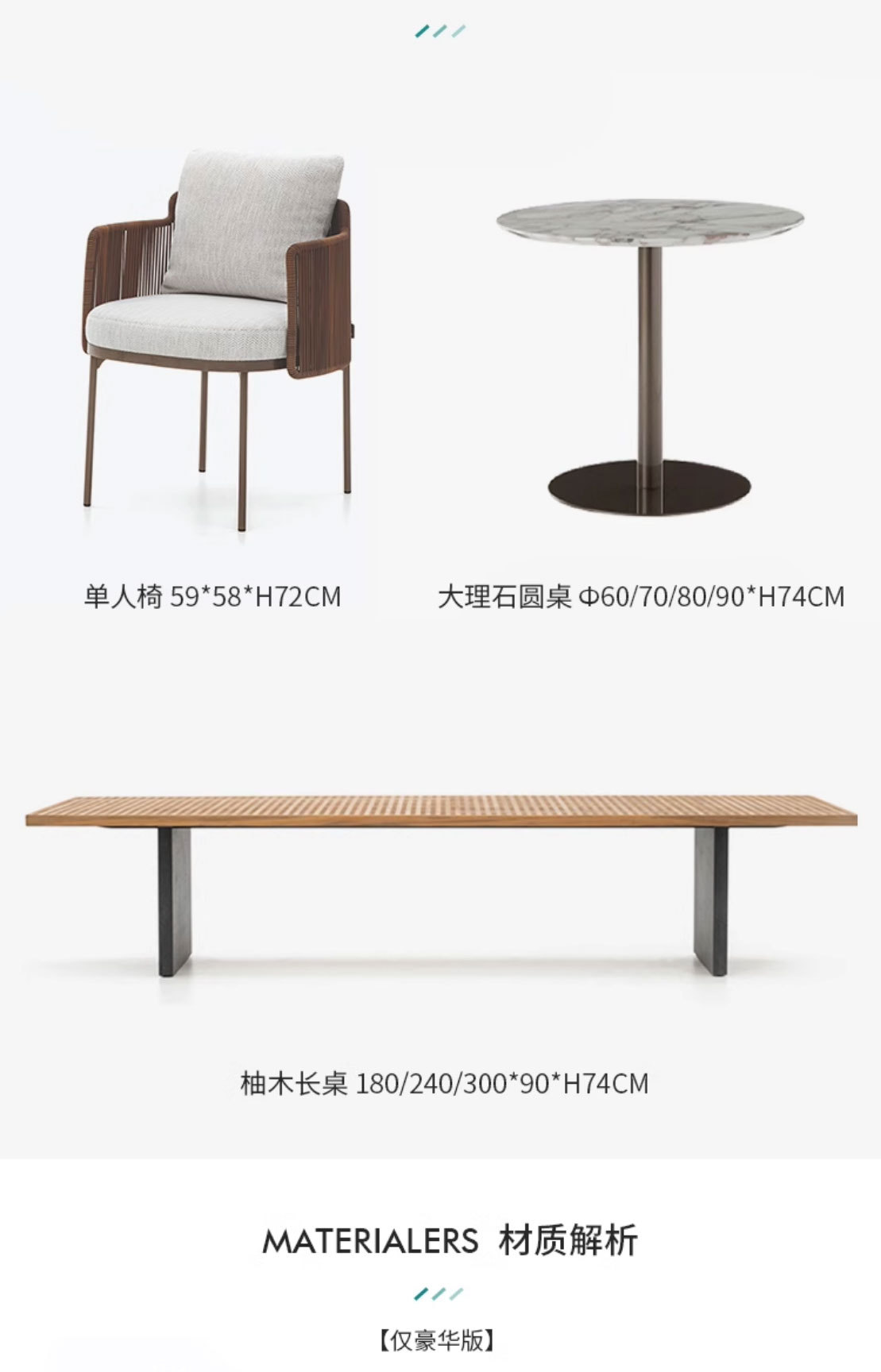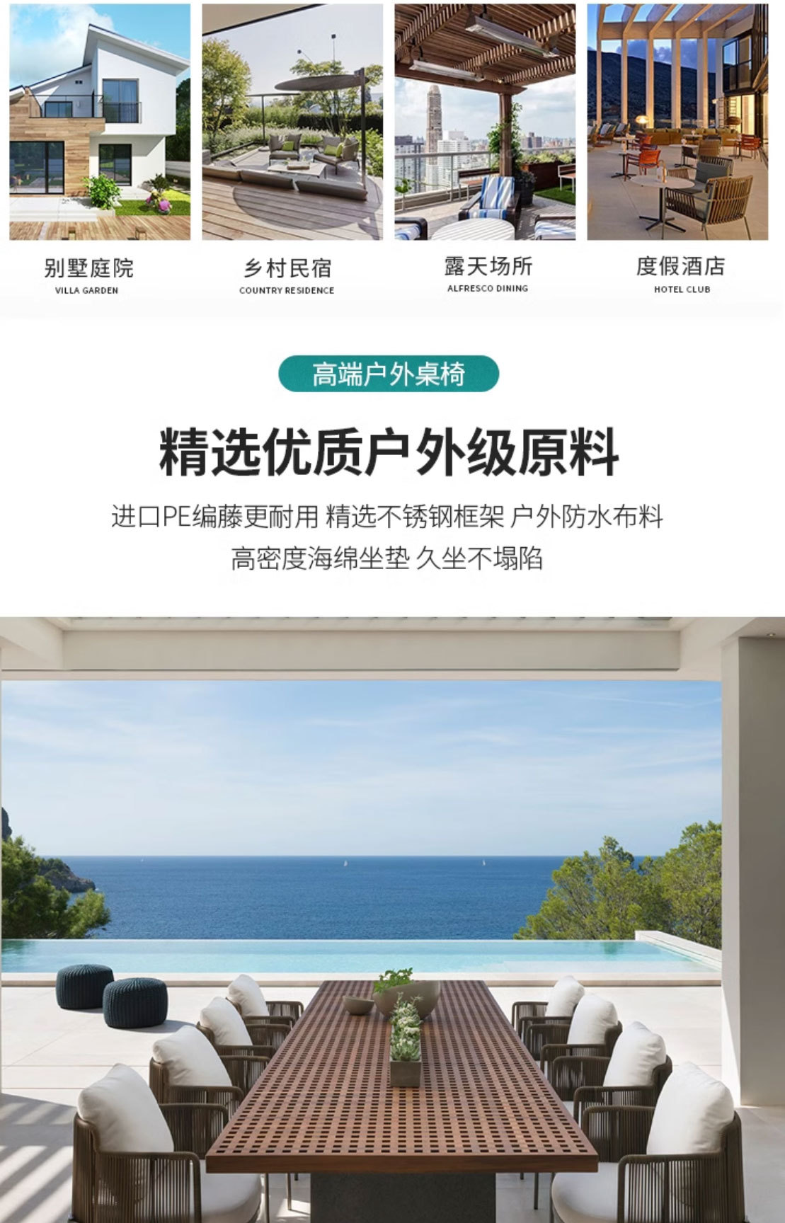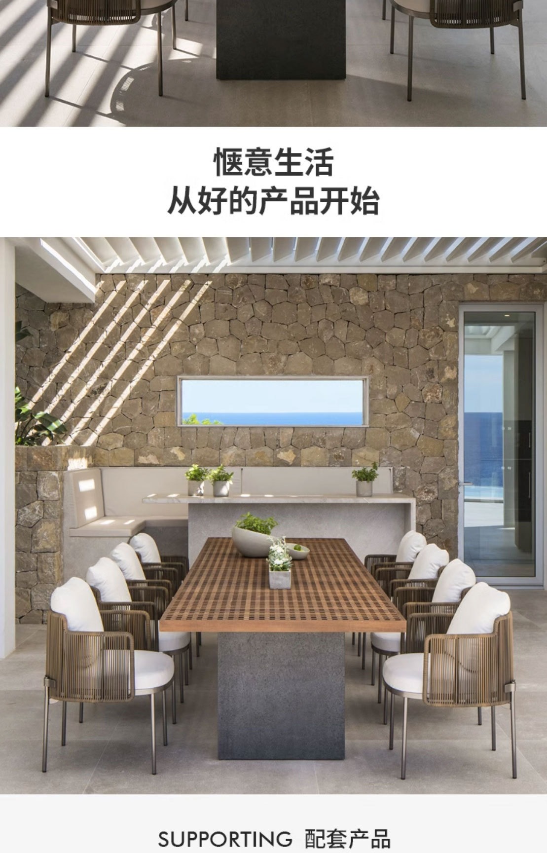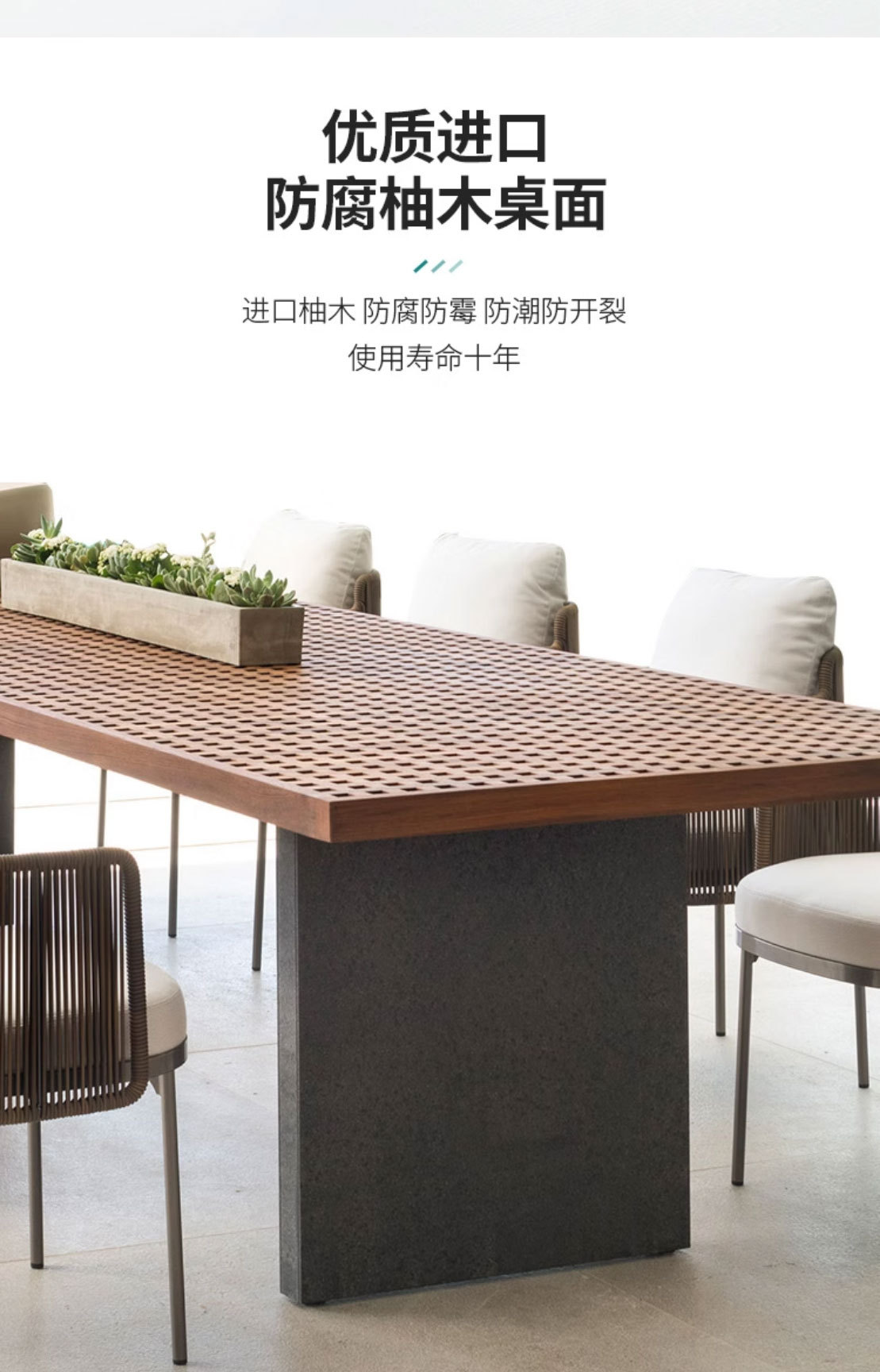 티크 야외 테이블과 의자 코트야드 등나무 의자 호텔 테라스 등나무 의자 빌라 정원 야외 레저 솔리드 우드 다이닝 테이블 및 의자