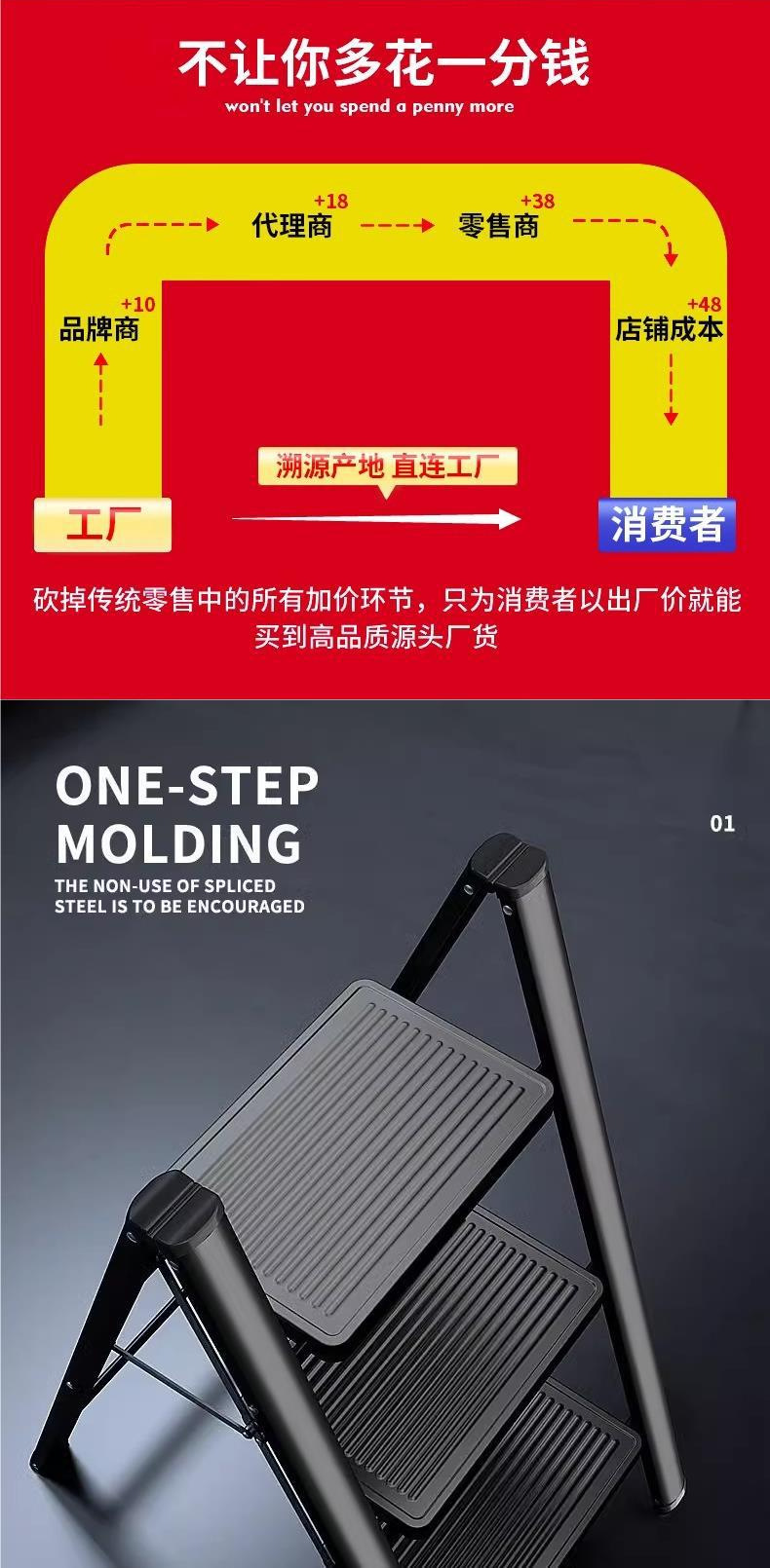 • [2024 두꺼워진 업그레이드 모델] 모던 레드 2단 사다리